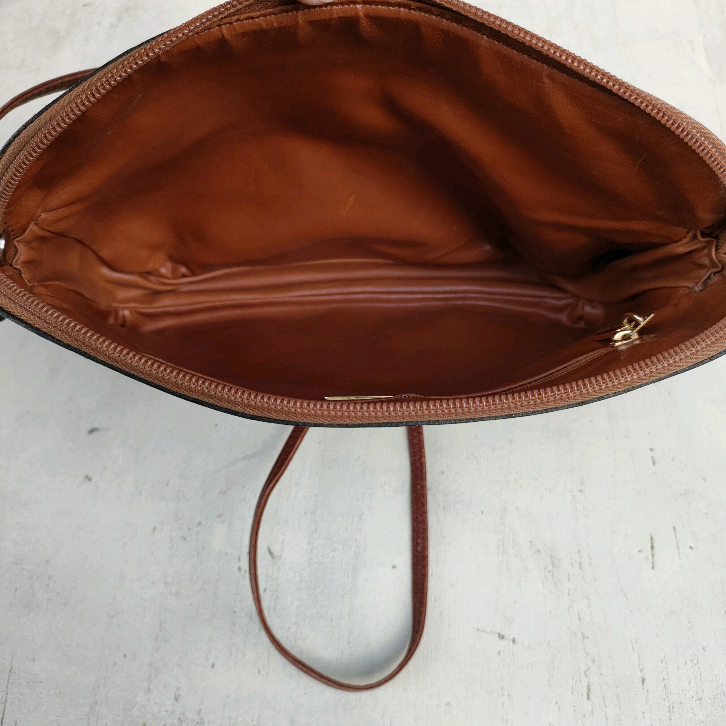 バリーBALLY/ヴィンテージ/ビンテージ/古着/PVC × レザー/Bエンボス/ショルダーバッグ/黒茶/QC21KS3/