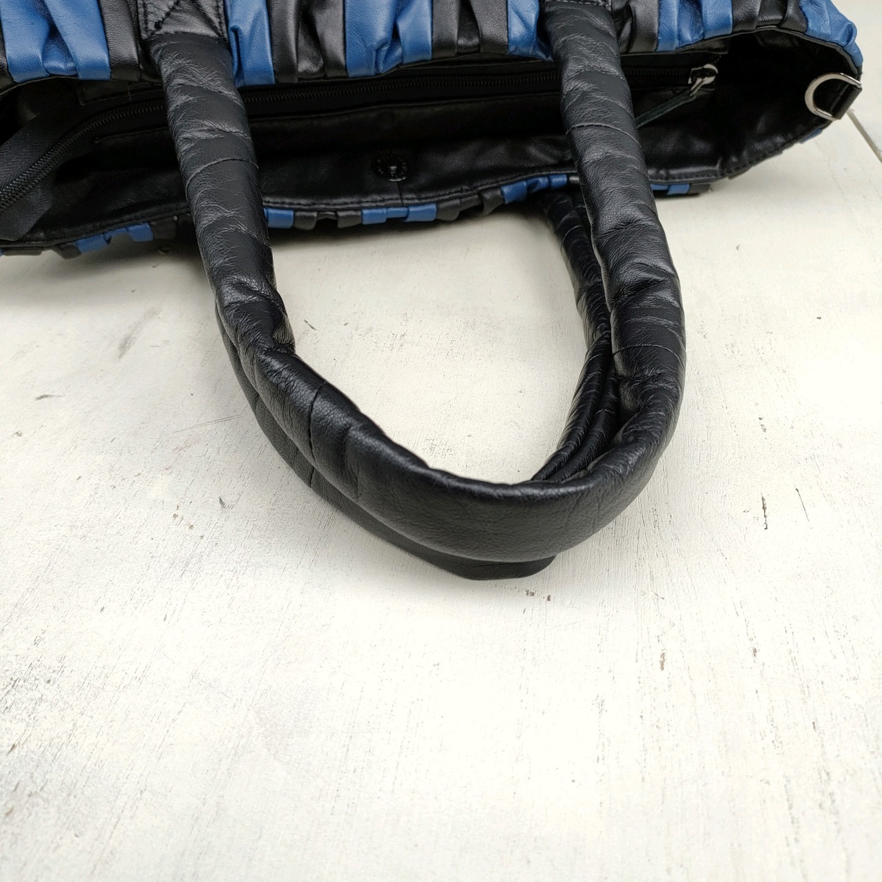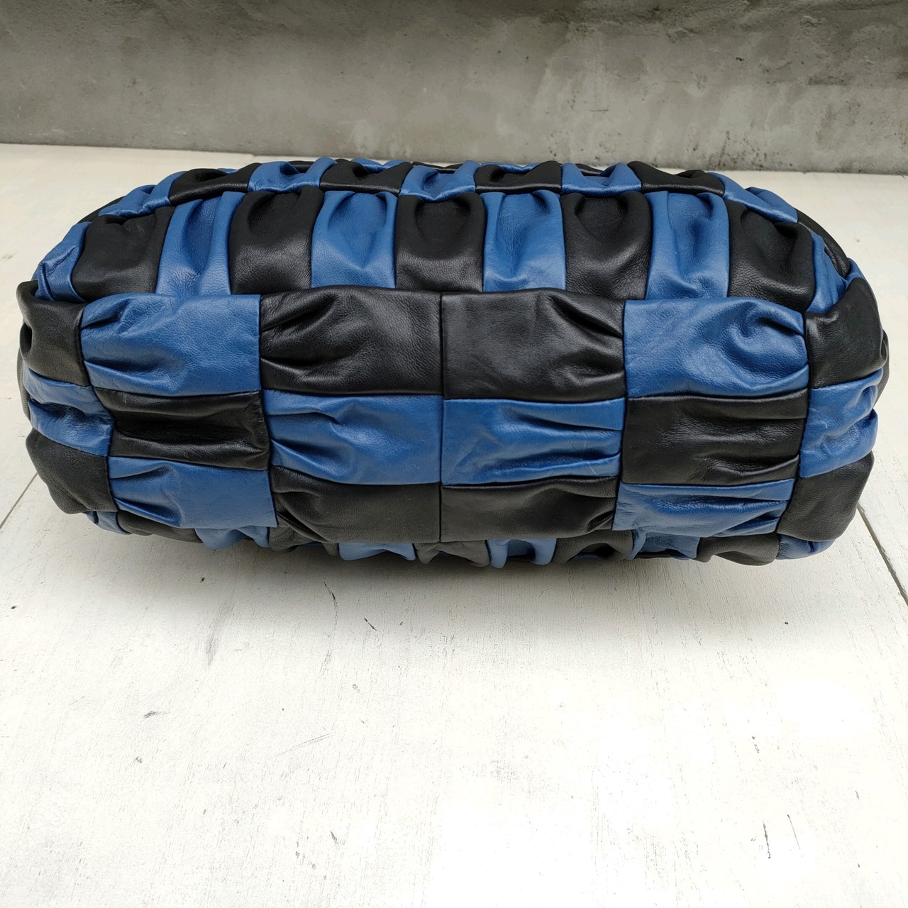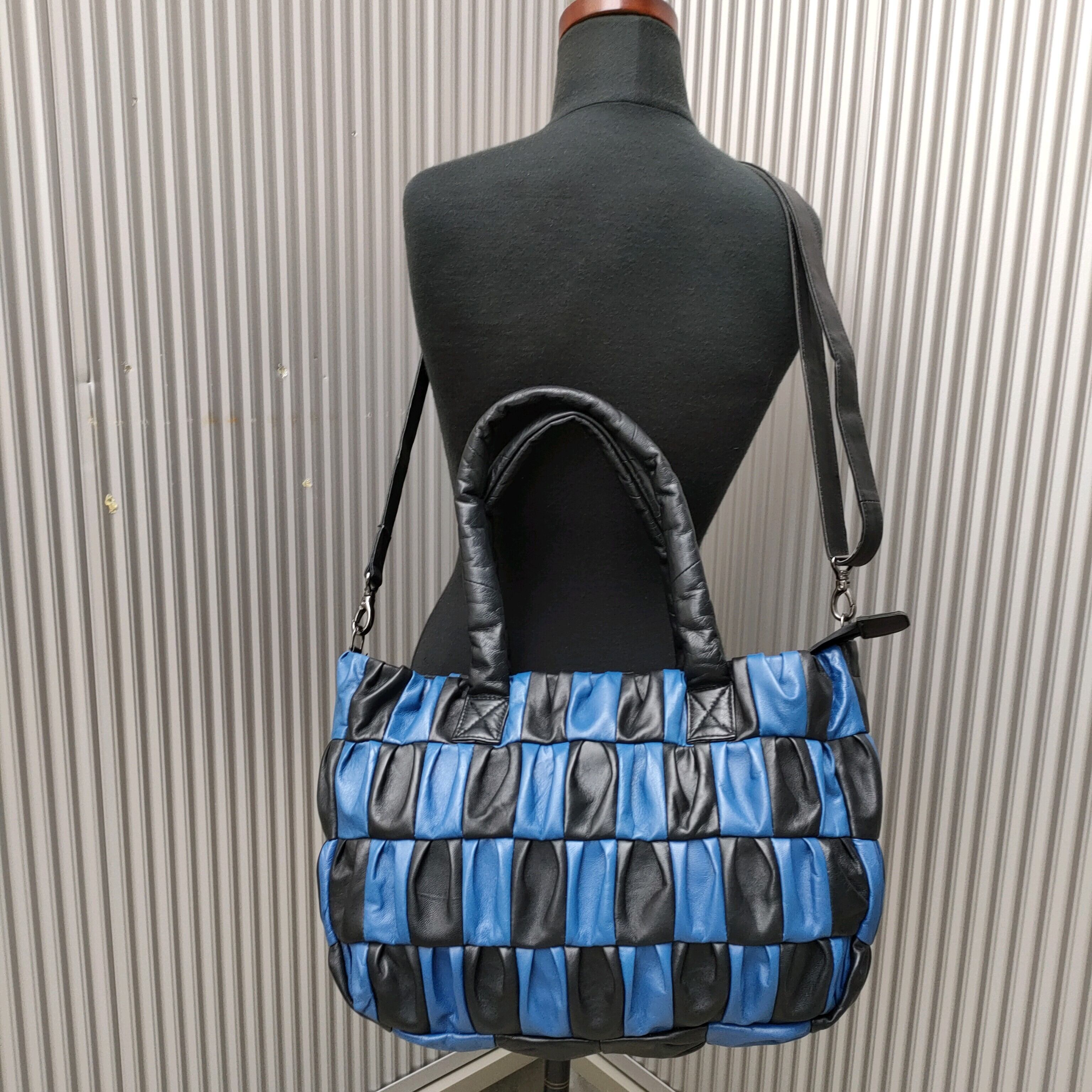 【2way】新品/ROMEDENO/デッドストック/ギャザー/ラムレザー/パッチワーク/ショルダーバッグ/トートバッグ/黒青/QC26KB1/