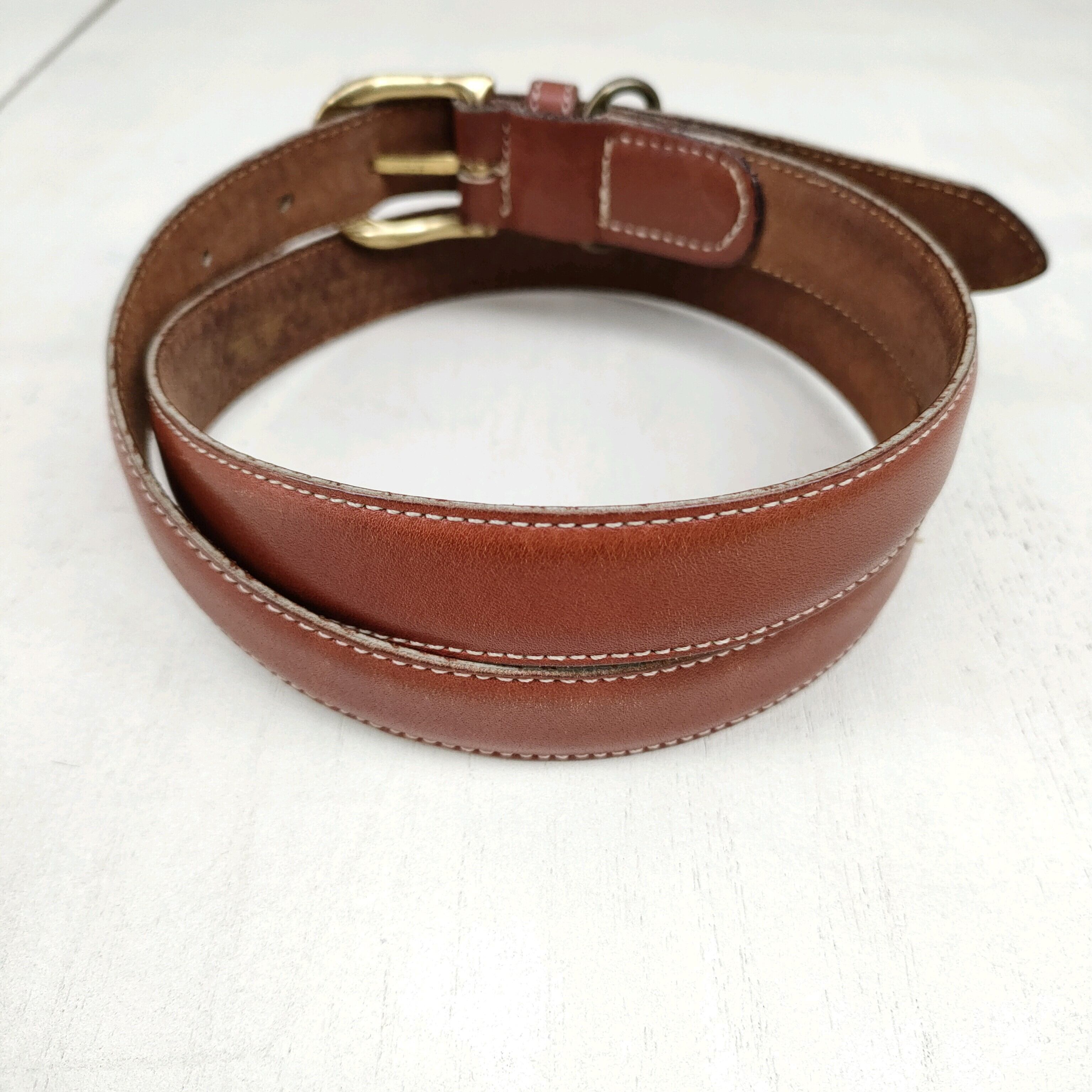 【USA製/80s/90s】ドッカーズDOCKERS/リーバイスLEVIS/ビンテージ/ヴィンテージ/アメリカ古着/レザー×真鍮/ベルト/32/茶/QD08FBO/