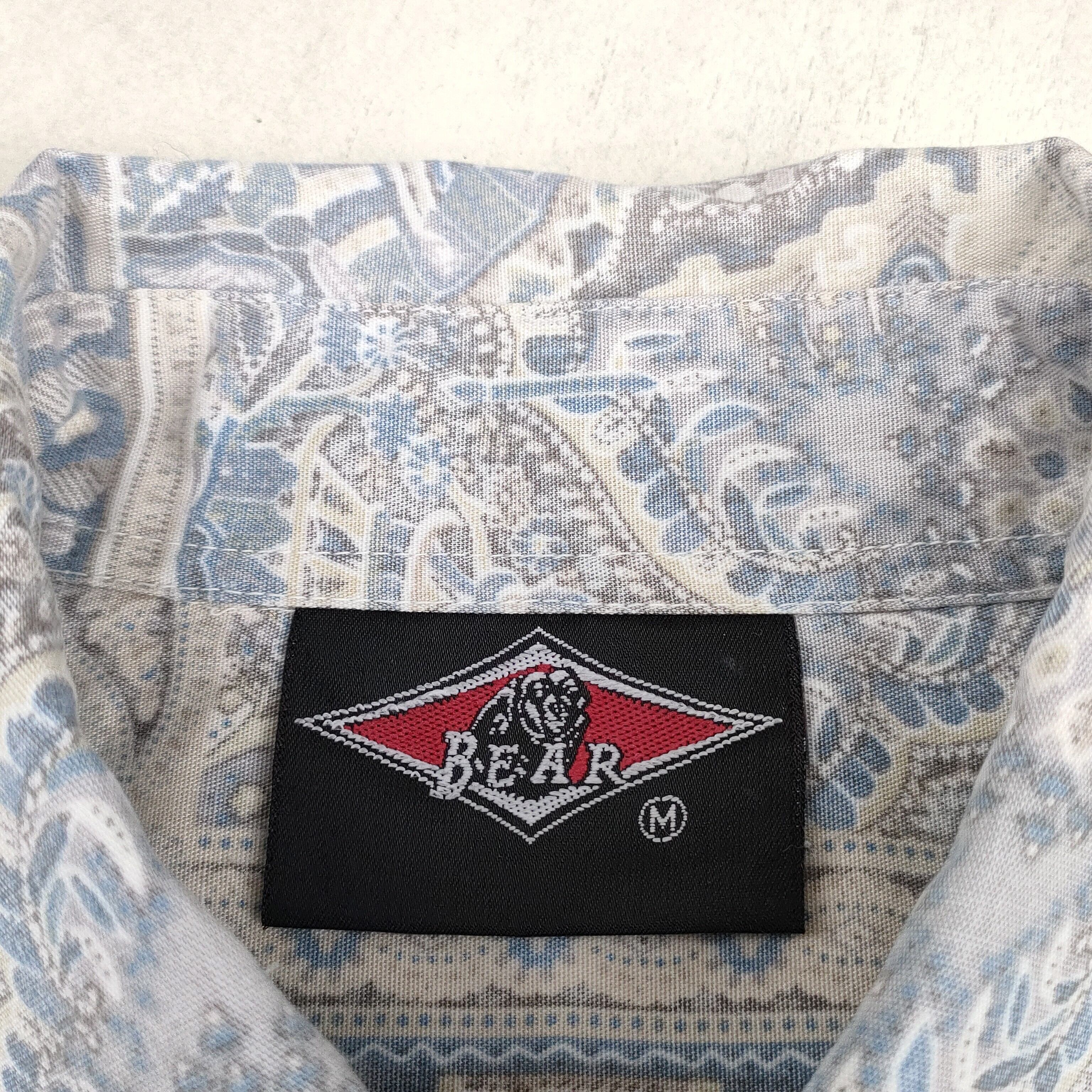 ○【90s】美品/ベアーBear/ベア/ビンテージ/ヴィンテージ/古着/ビッグサイズ/ビッグシルエット/半袖/総柄/ペイズリー柄/シャツ/M/Q0501KK6/