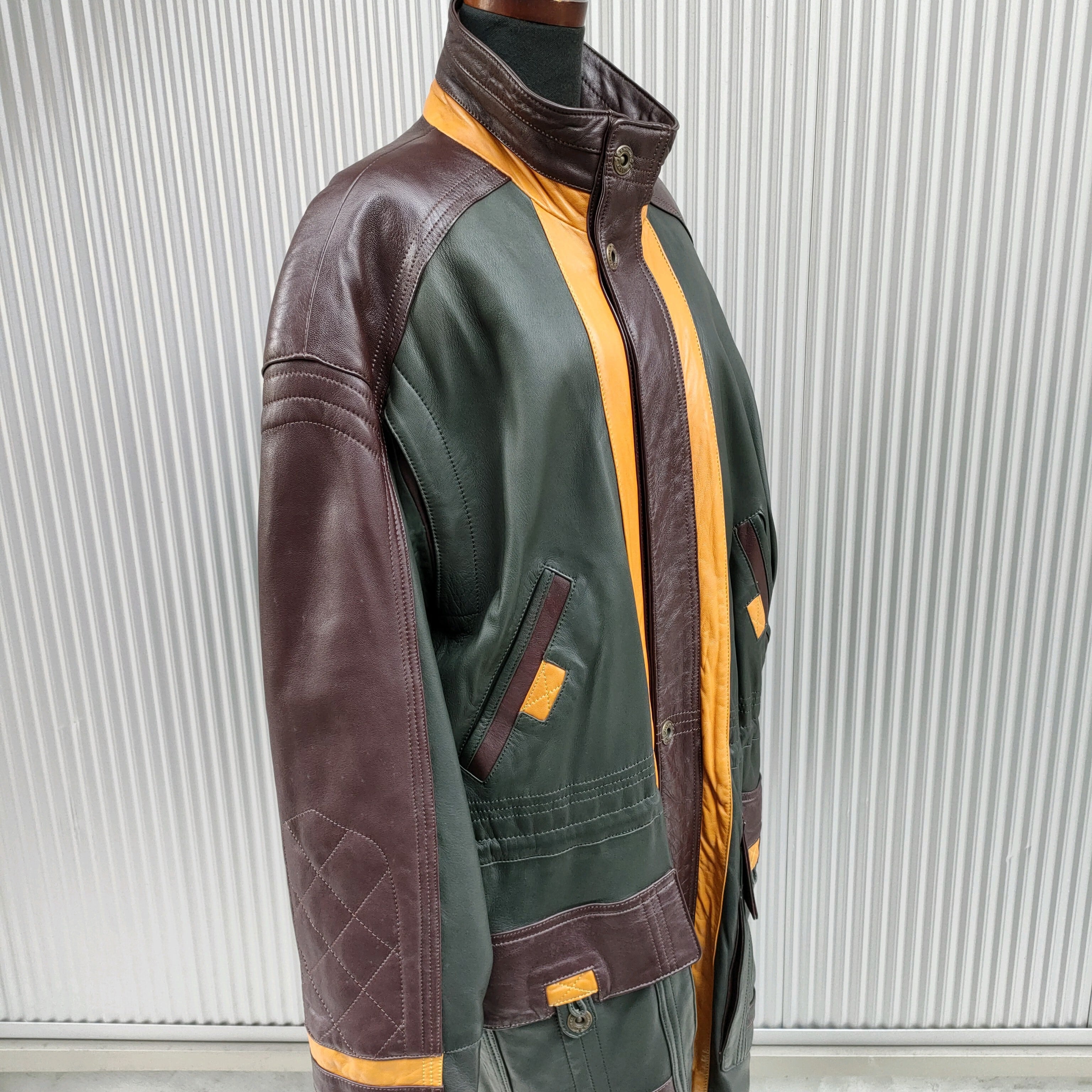 ○【国内正規品】ムンペルMUNPER/ビンテージ/ヴィンテージ/ヨーロッパ古着/ビッグシルエット/オーバーサイズ/クレイジーカラー/羊革/ラムレザー/中綿/コート/48/マルチカラー/Q05260003/