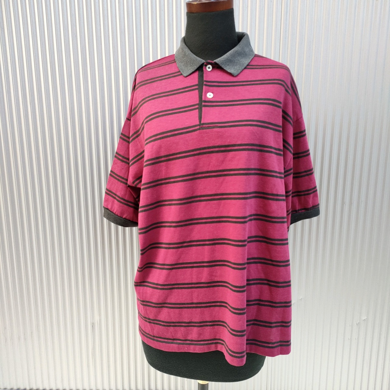 ○【USA製/80s/90s】wentworth/ビンテージ/ヴィンテージ/アメリカ古着/ボーダー/ポロシャツ/XL/赤/Q07271/