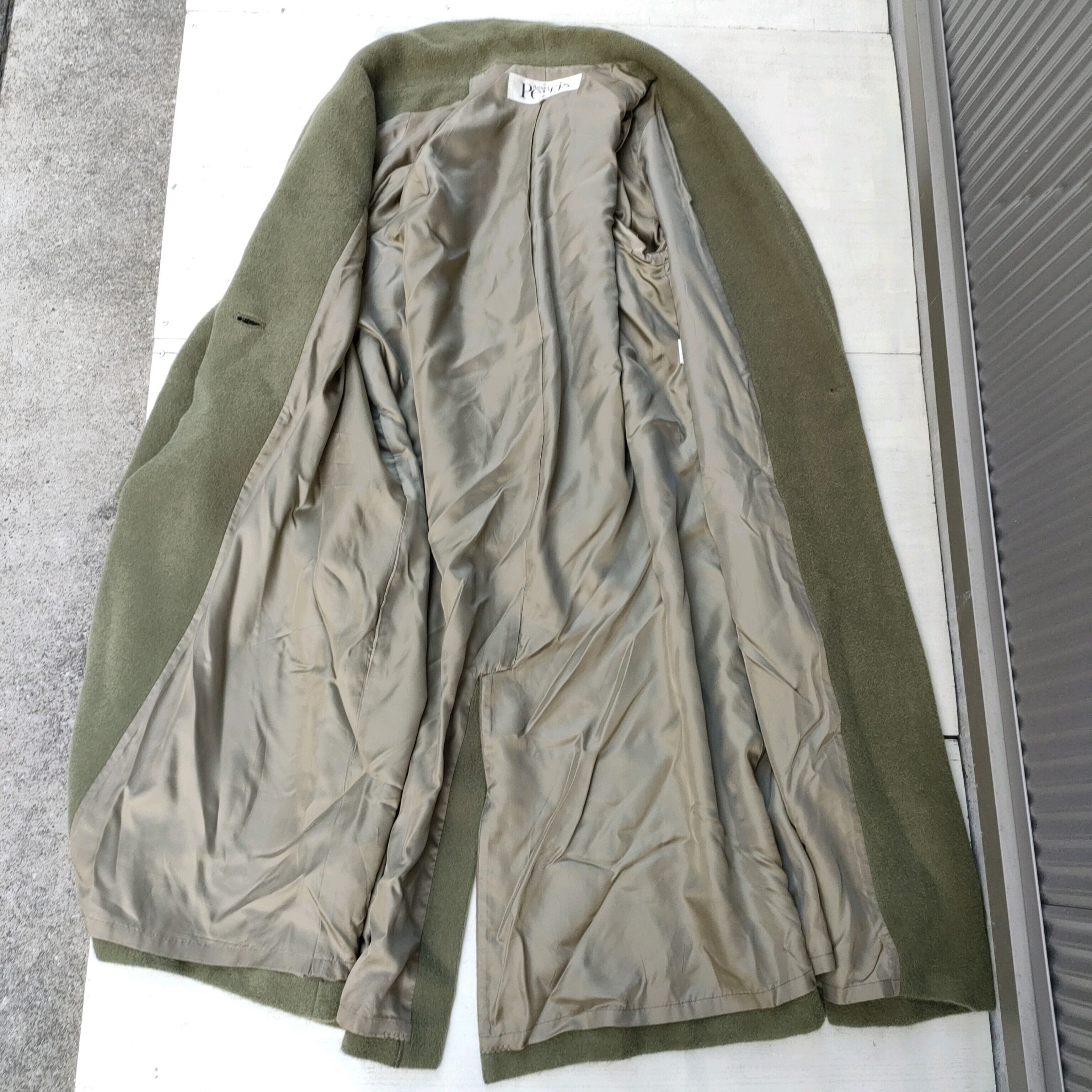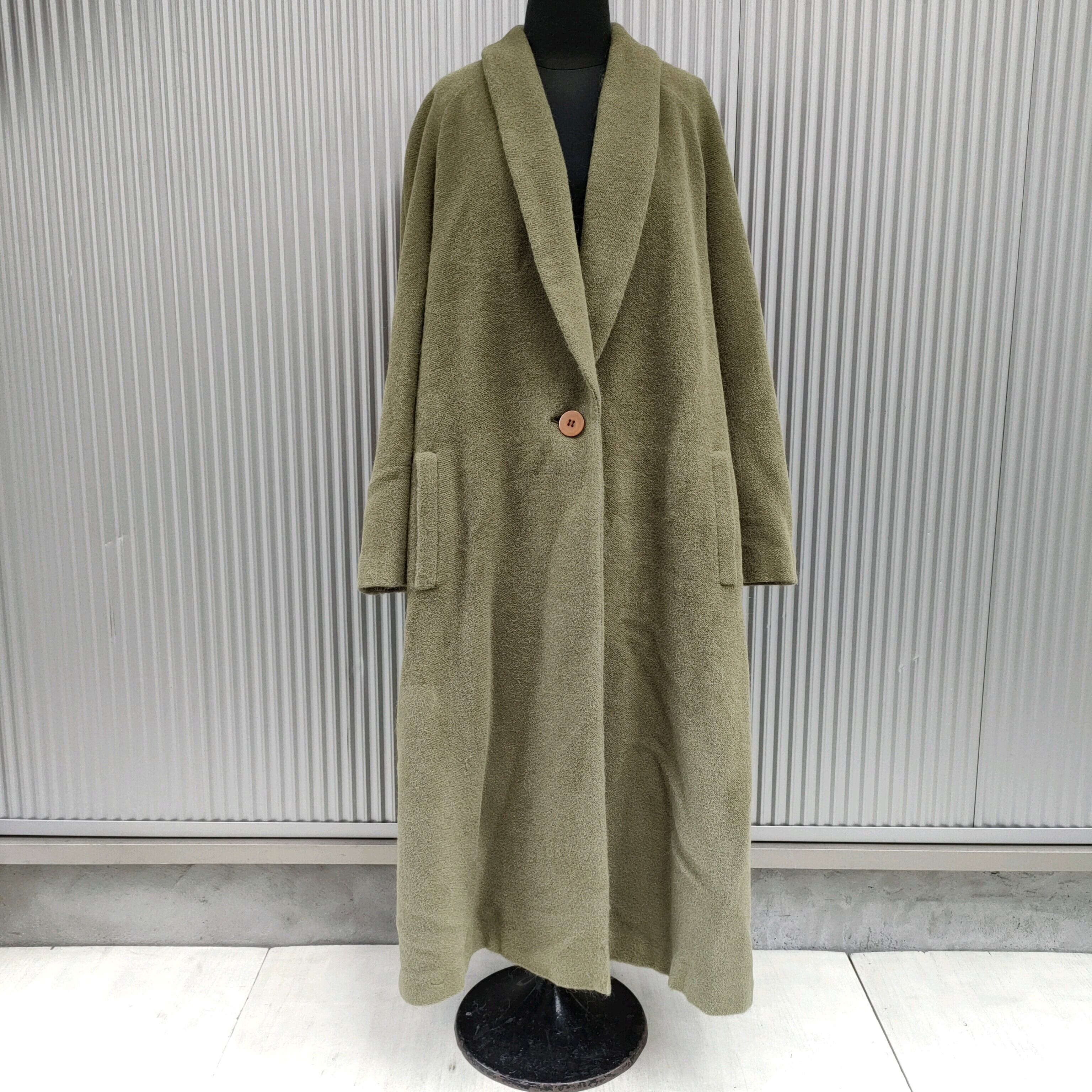 ○【アルパカ50%】ベルナールペリスBernard Perris/ビンテージ/ヴィンテージ/レトロ/国産古着/ビッグシルエット/オーバーサイズ/上質/ショールカラー/1B/ロング/チェスターコート/40/カーキ/QB2716/