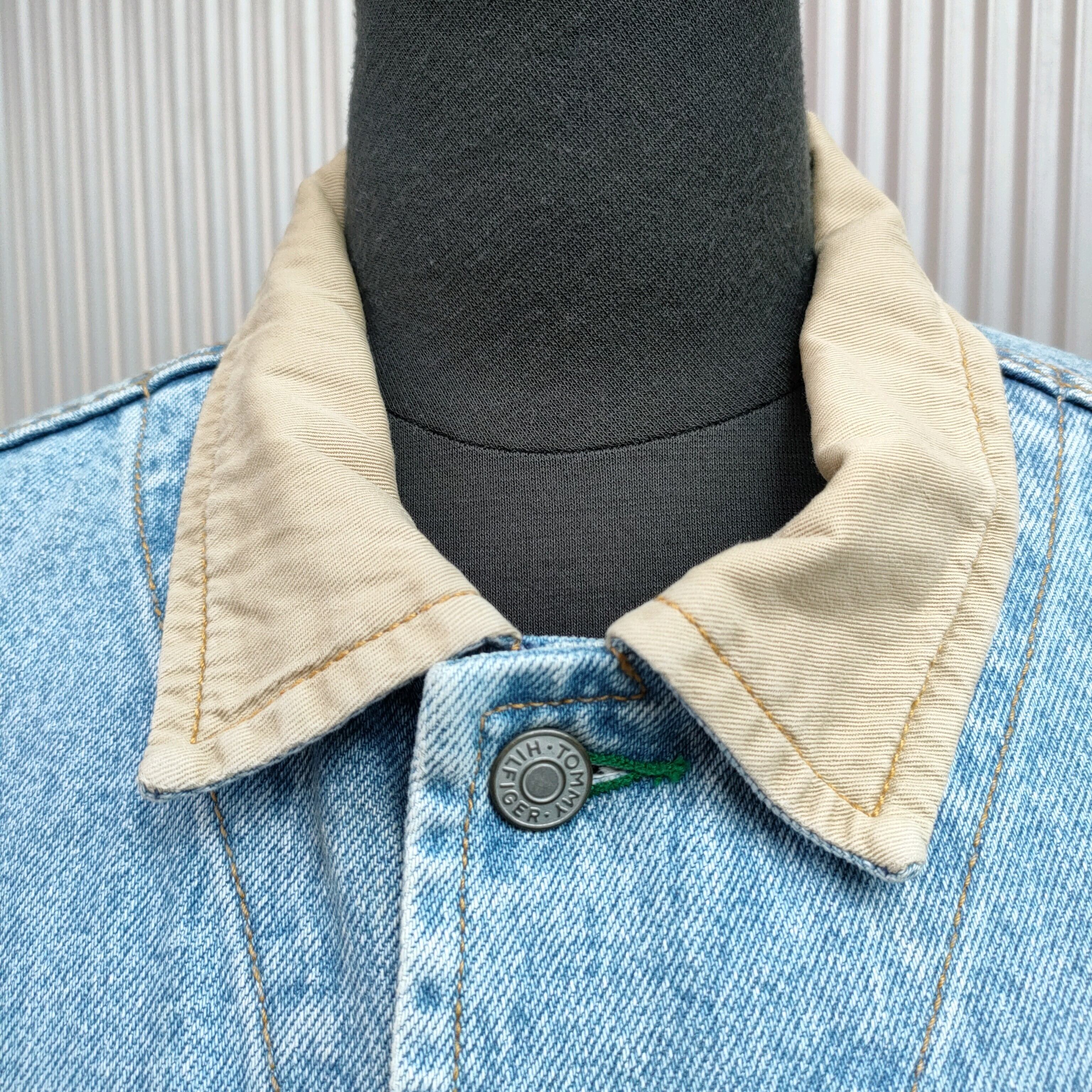 ○【90s】トミーヒルフィガーTOMMY HILFIGER/ビンテージ/ヴィンテージ/古着/オーバーサイズ/ビッグシルエット/エンブレム刺繍/Gジャン/デニムジャケット/トラッカージャケット/M/QJ23KE0002/
