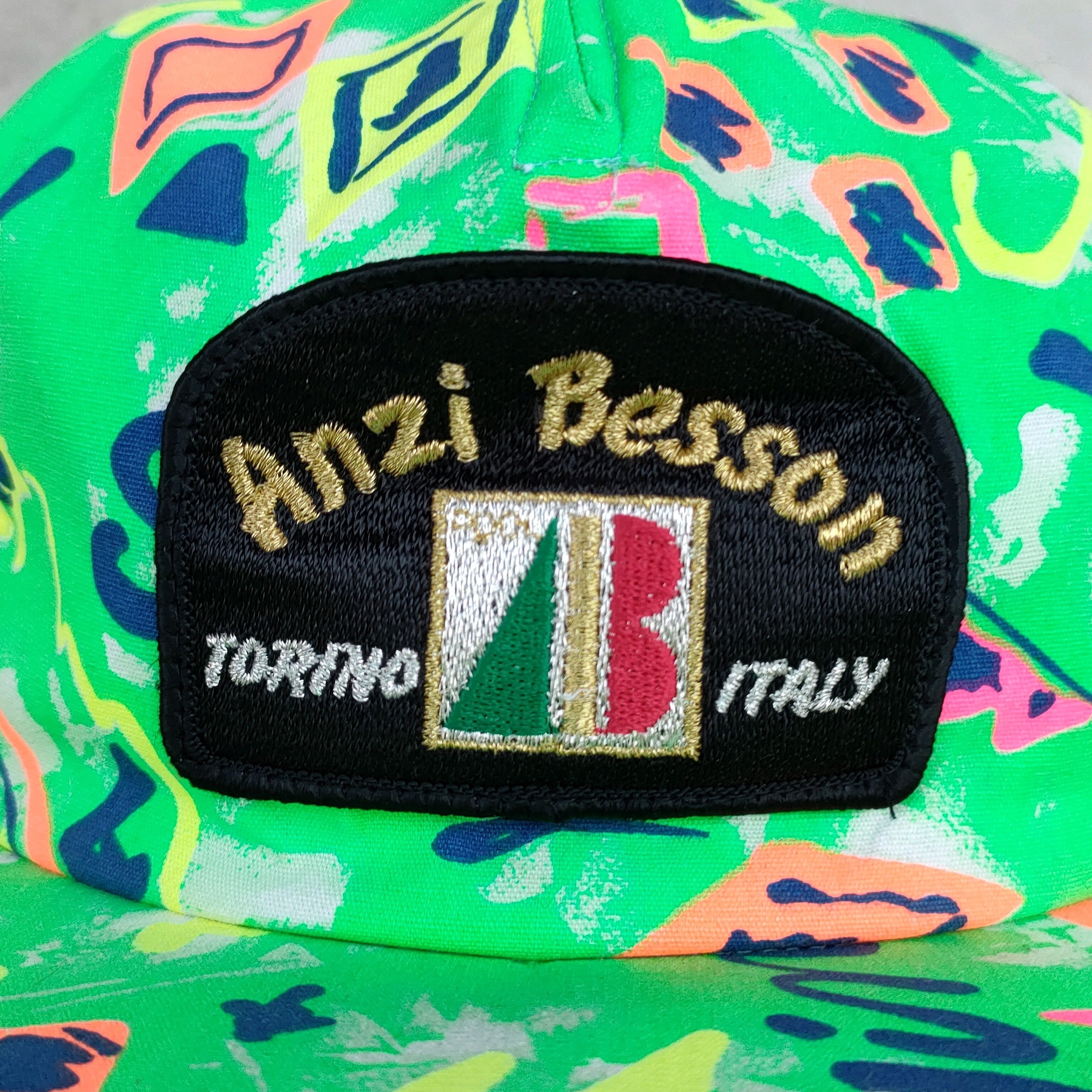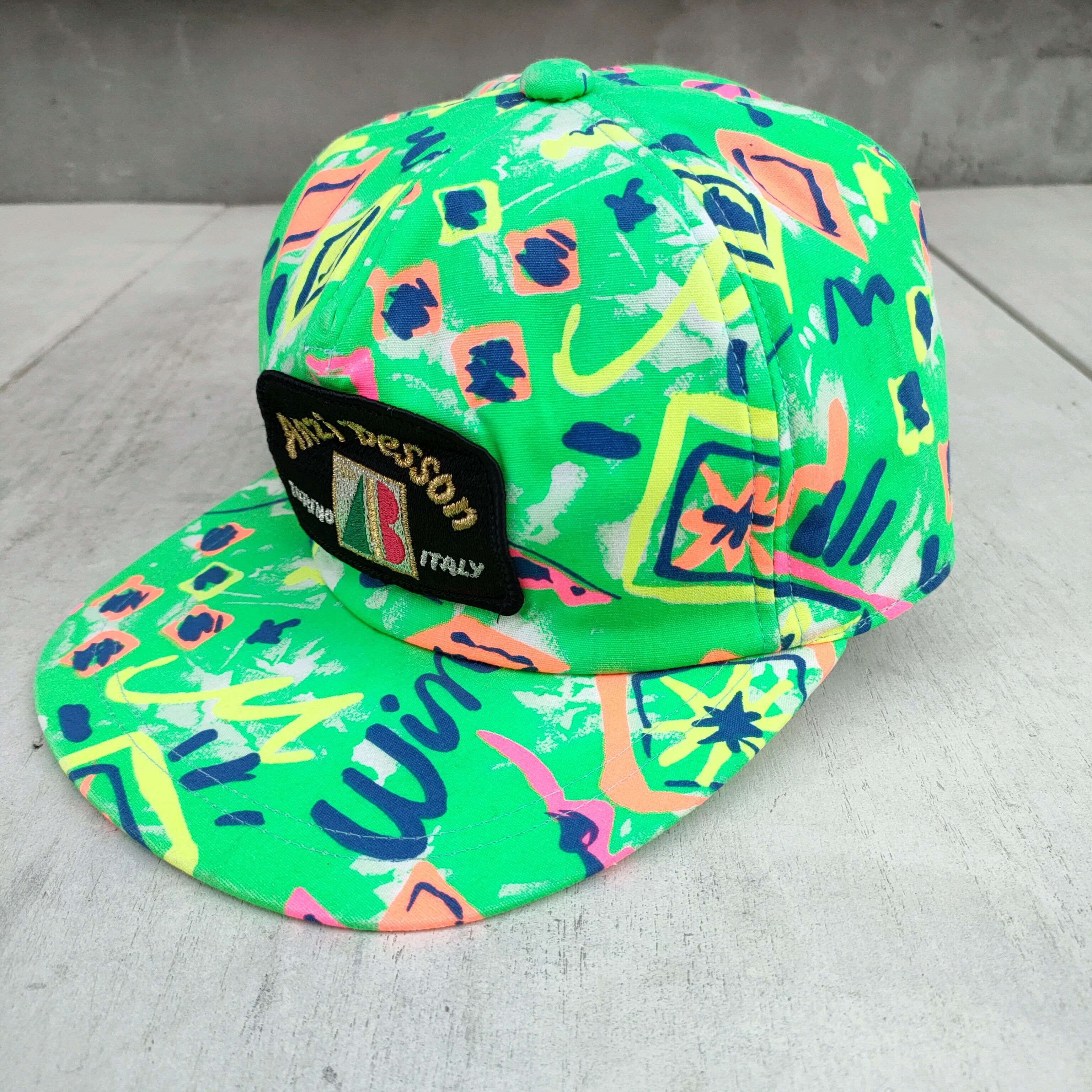 ○【稀少/70s/80s】新品/アンチベッソンAnzi Besson/デッドストック/ビンテージ/ヴィンテージ/総柄/柄物/ネオンカラー/蛍光色/原色/耳当て付/スキー/スノーボード/レーシングキャップ/Q0724KE8/ | 古着屋RAINBOWFIELD Since 2006