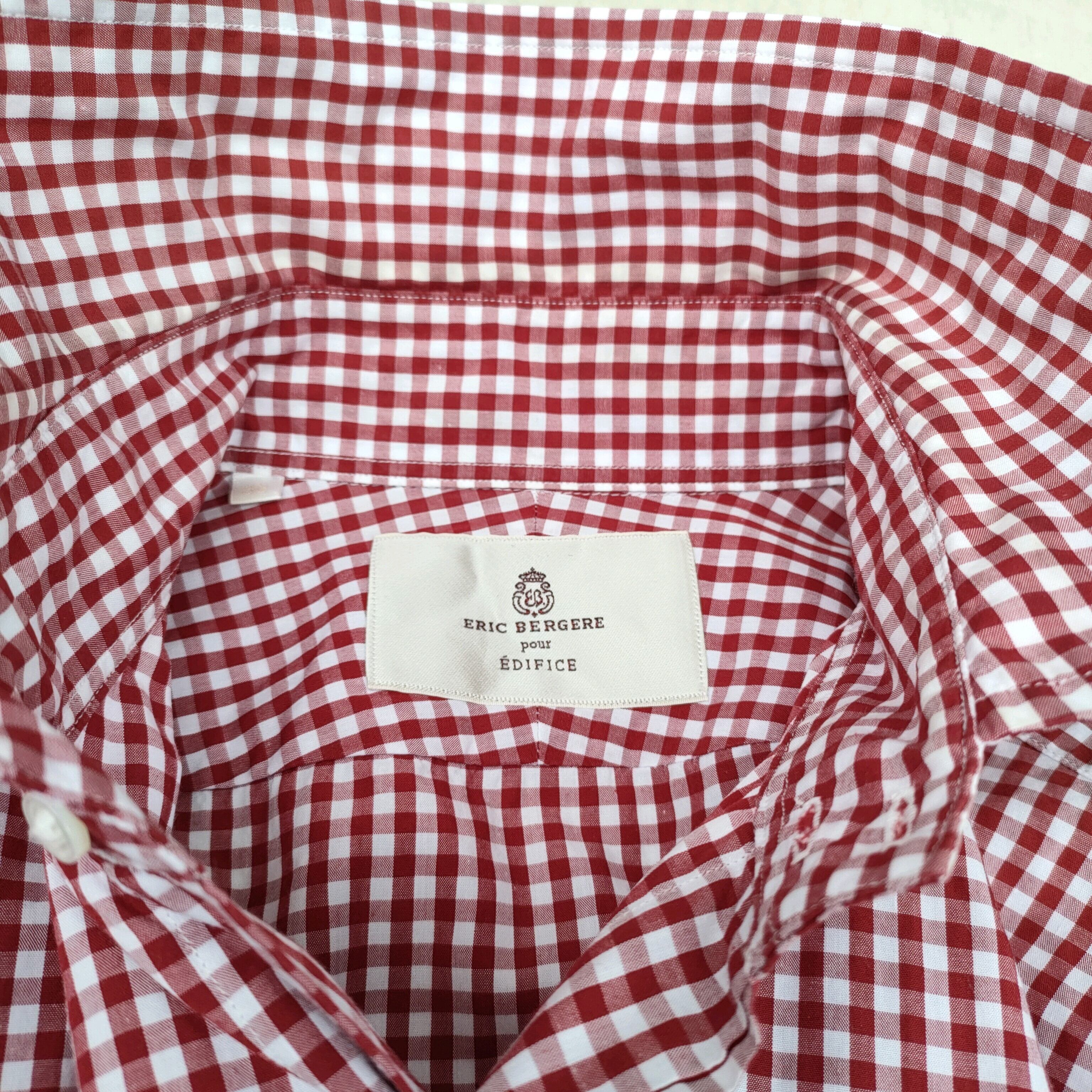 ○【別注】美品/エディフィス × エリックベルジェールEDIFICE pour ERIC BERGERE/柄物/総柄/ギンガムチェック/シャツ/38/赤白/RD2323/0051/