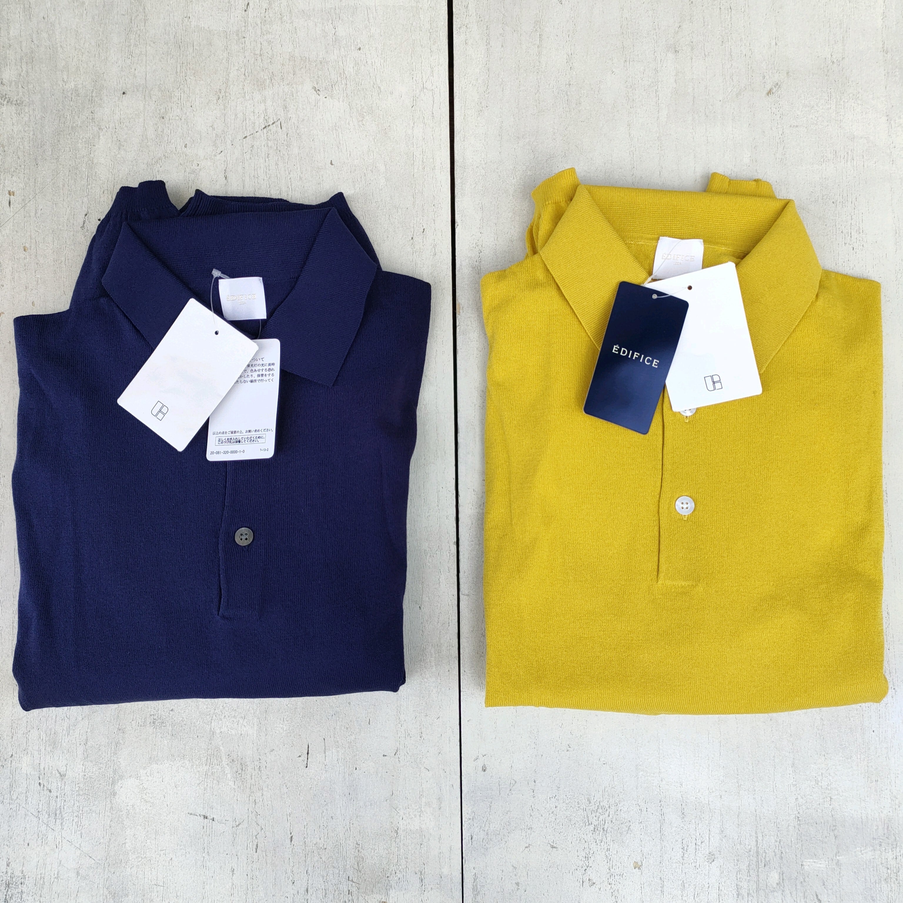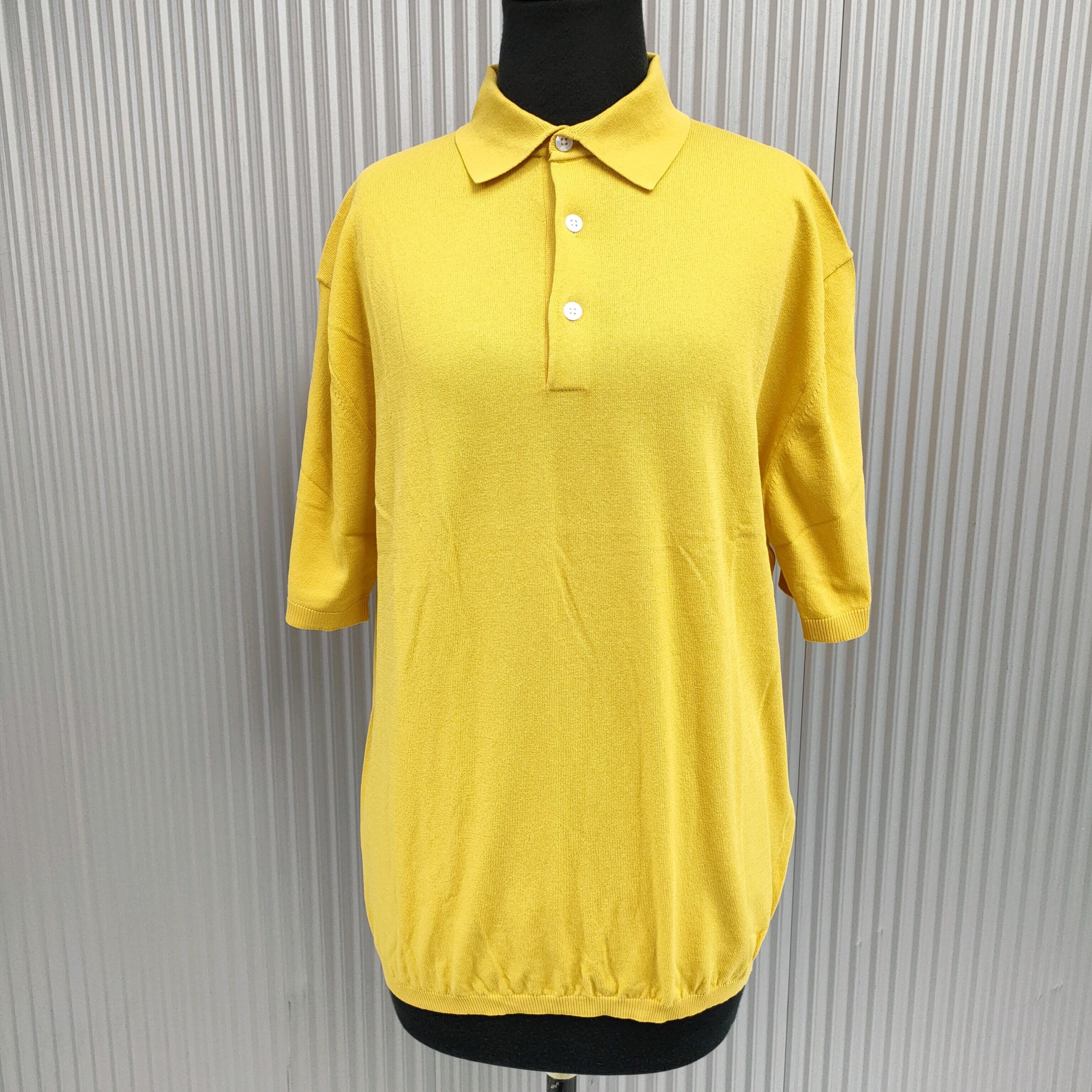 ○新品/エディフィスEDIFICE/デッドストック/1/26 HIBRIT COTTON/無地/半袖ニット/ポロシャツ/44/黄色/ネイビー/定価26400/R05068/0042/
