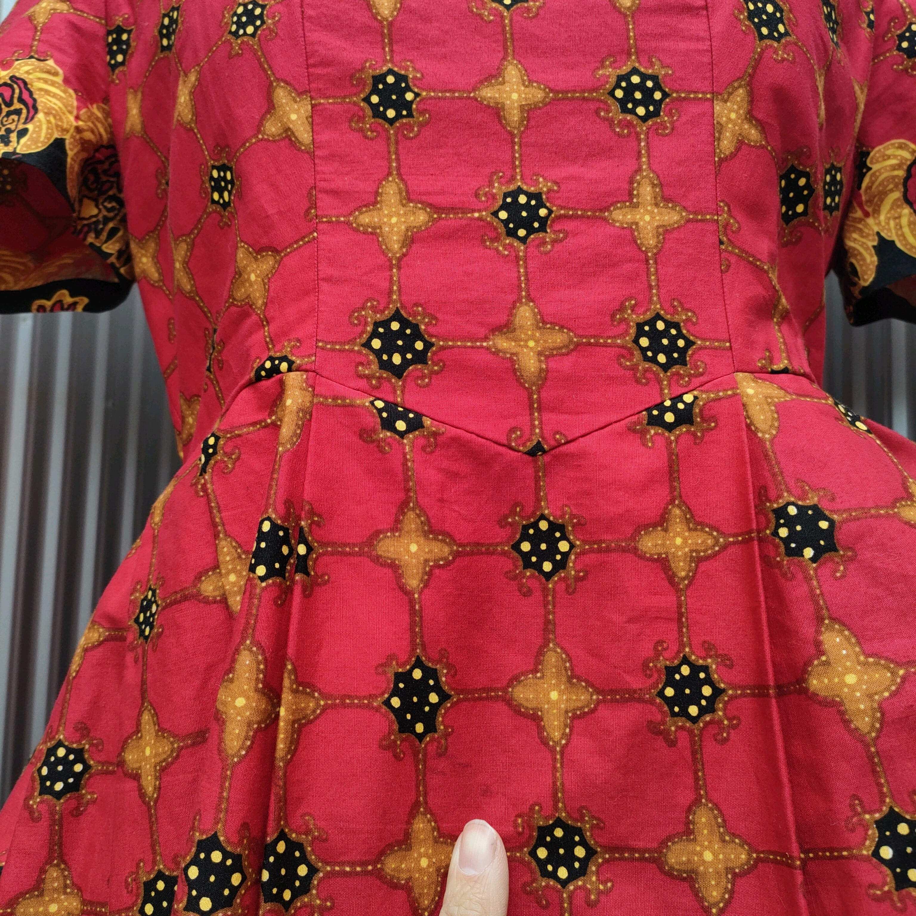 ○美品/used/ビンテージ/ヴィンテージ/レトロ古着/ゴージャス/ヨーロピアン/コットン/ワンピース/赤/R0514KK9/003/