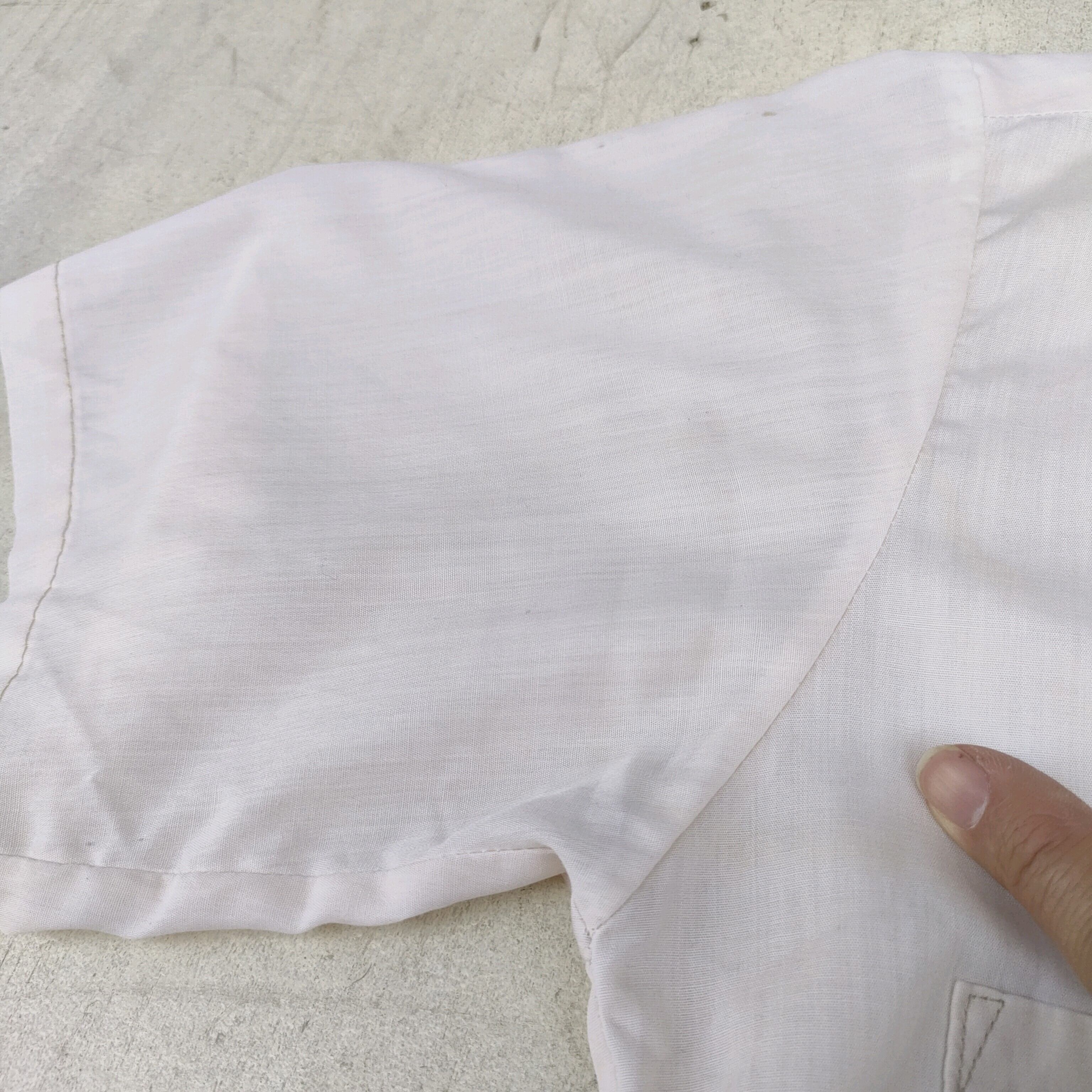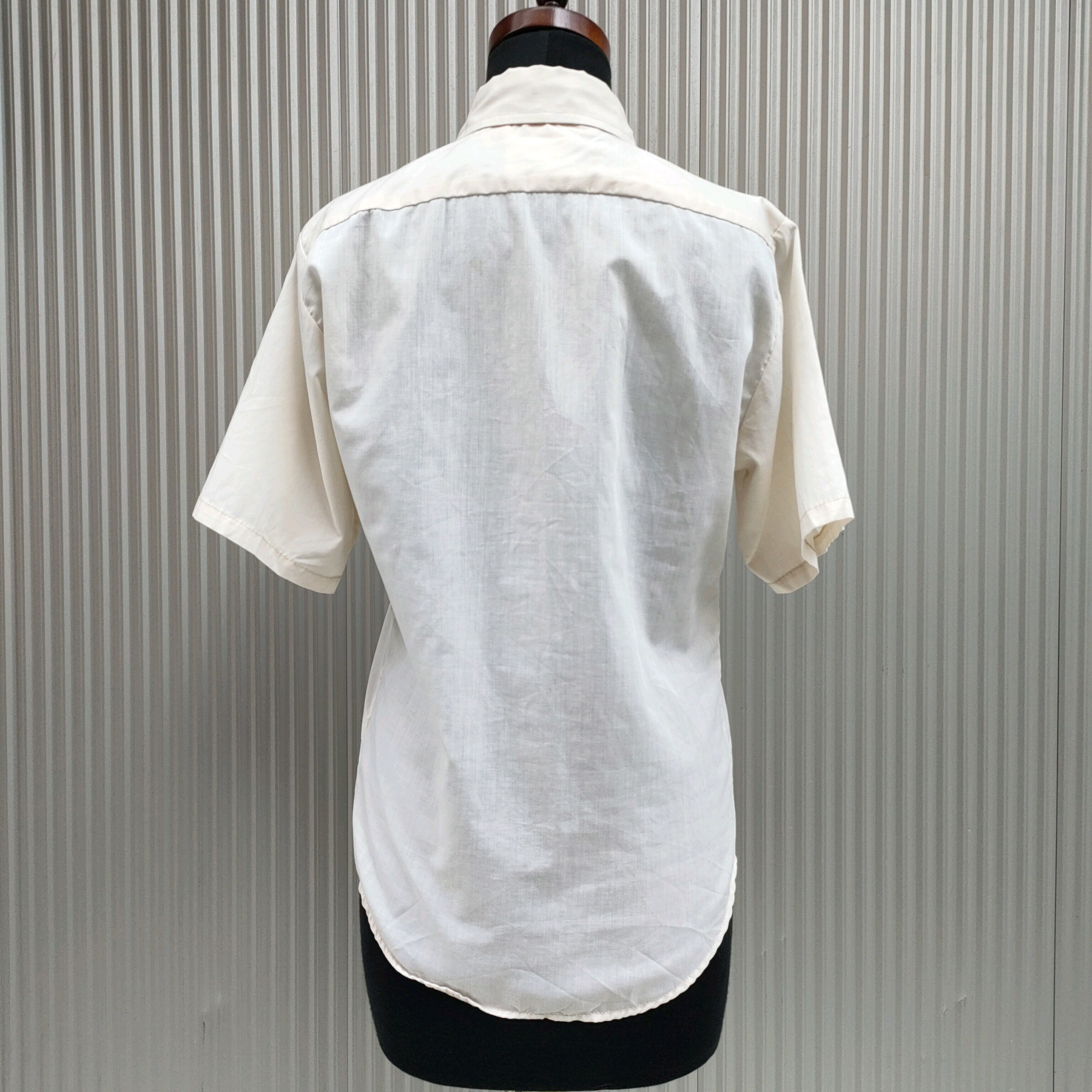 【70s/USA製】レッドキャップRED KAP/ヴィンテージ/ビンテージ/アメリカ古着/半袖/襟芯/タイト/ドレスシャツ/ワークシャツ/ポリシャツ/15ハーフ/ユニセックス/ベージュ系/P0831ADD1/011/