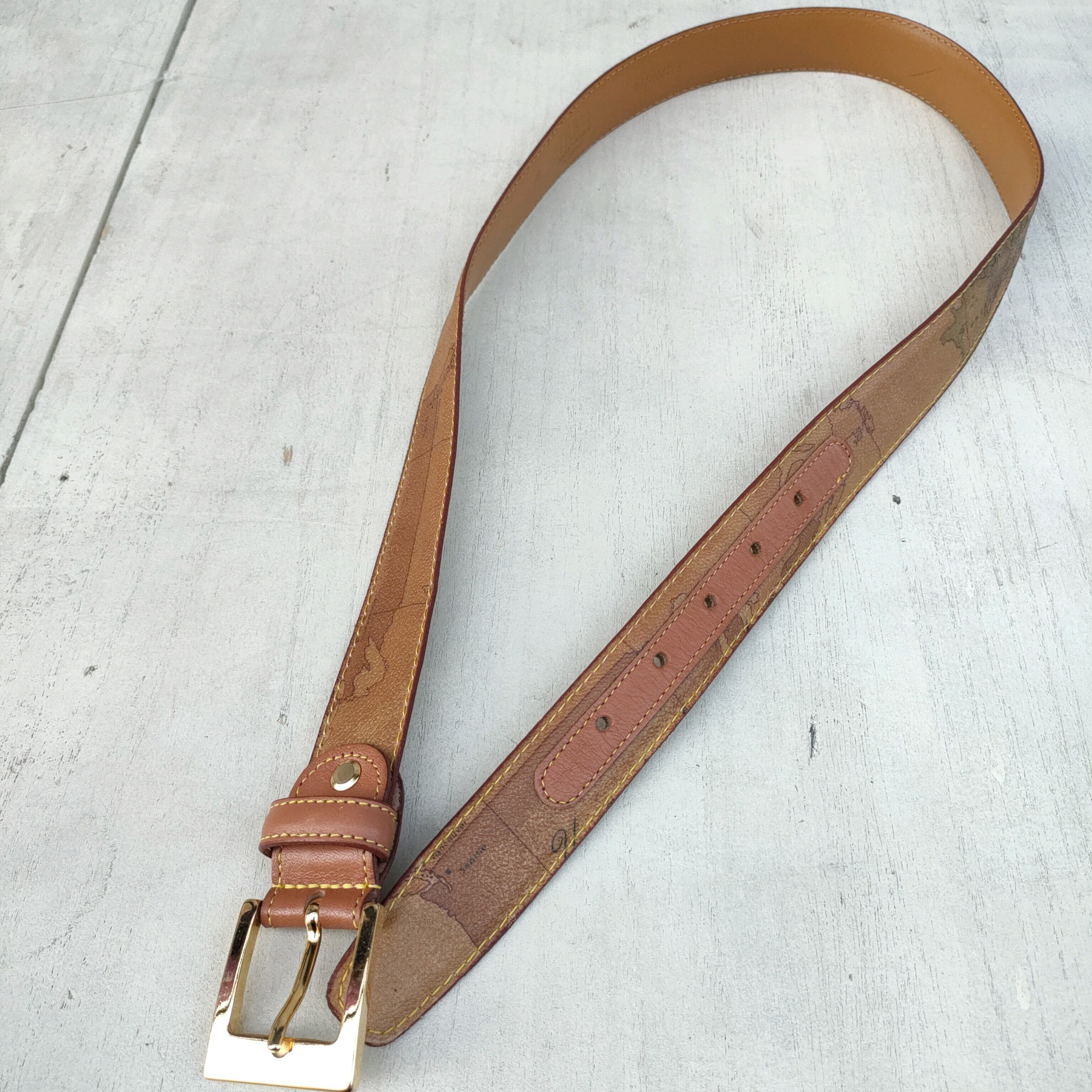 ○【イタリア製】美品/プリマクラッセP CLASSE ALVIERO MARTINI/PRIMA CLASSE/ビンテージ/ヴィンテージ/古着/地図柄/世界地図/ジオマップ/レザーベルト/茶/R0723KE17/0001/