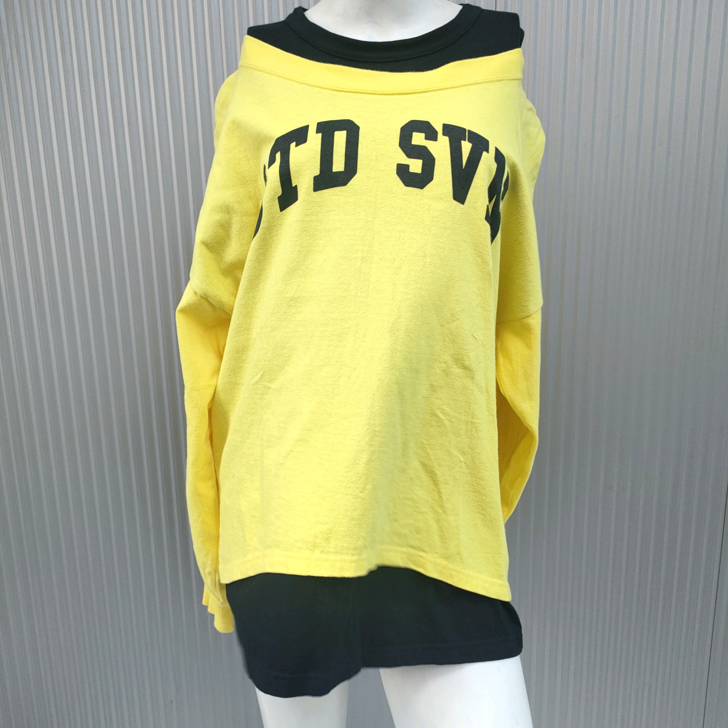 ○美品/スタジオセブンSTUDIO SEVEN/古着/70864009/ロング丈/フェイクレイヤード/ドロップショルダー/ロンT/カットソー/M/黄色/R0730MBO1/004/