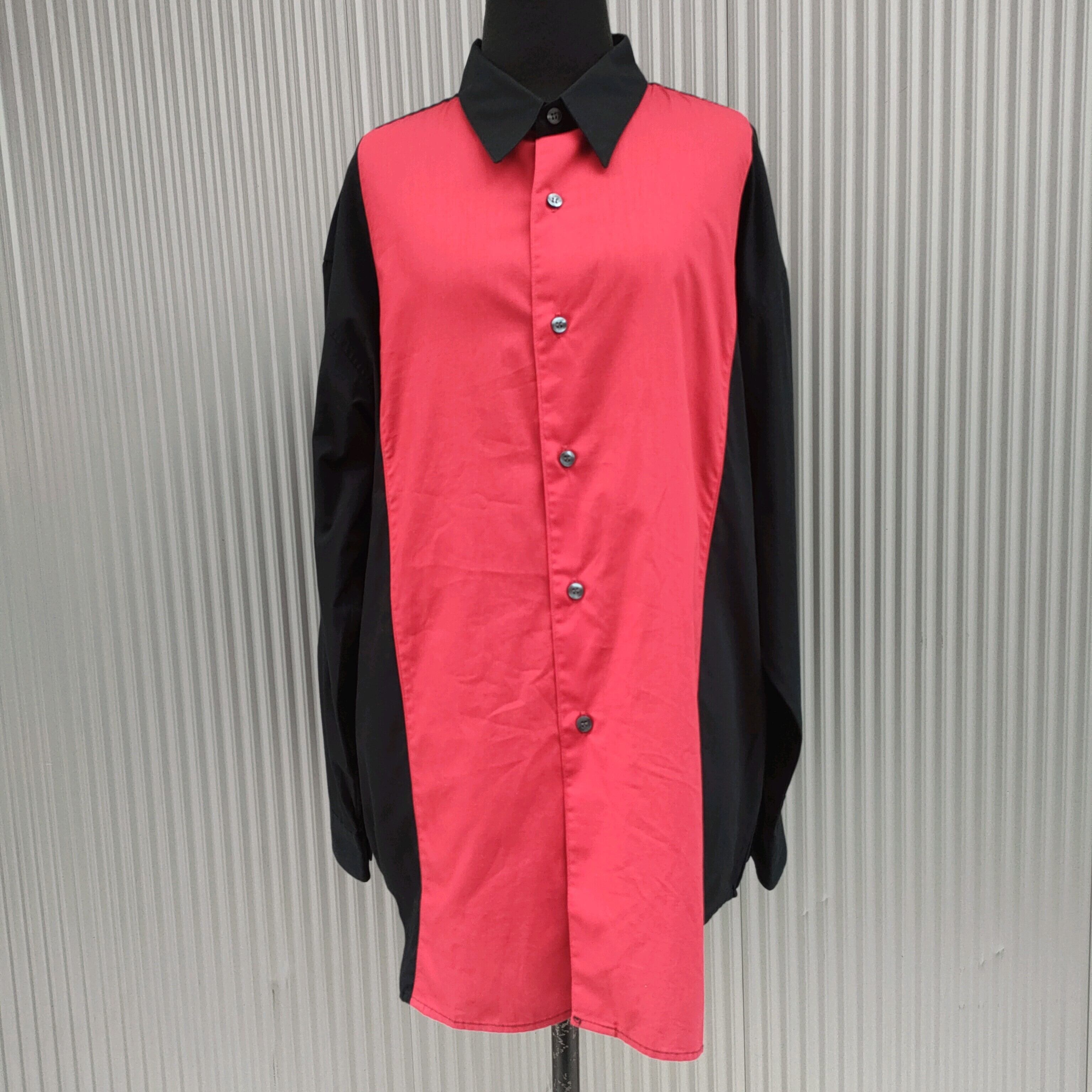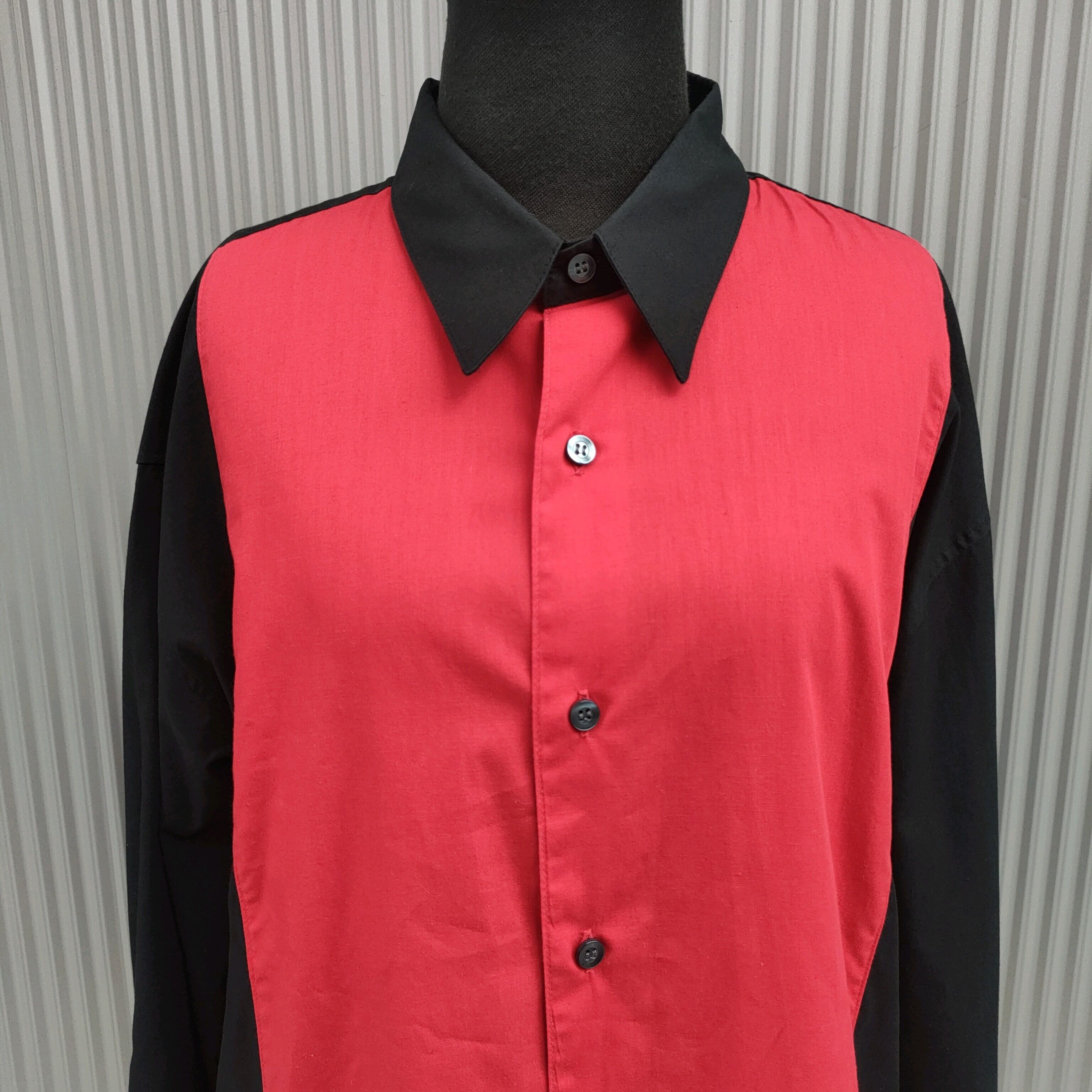 ○美品/T’s Club Division/ヴィンテージ/ビンテージ/国産古着/オーバーサイズ/ビッグシルエット/長袖/バイカラー/シャツ/F/黒赤/R0909KB1/008/