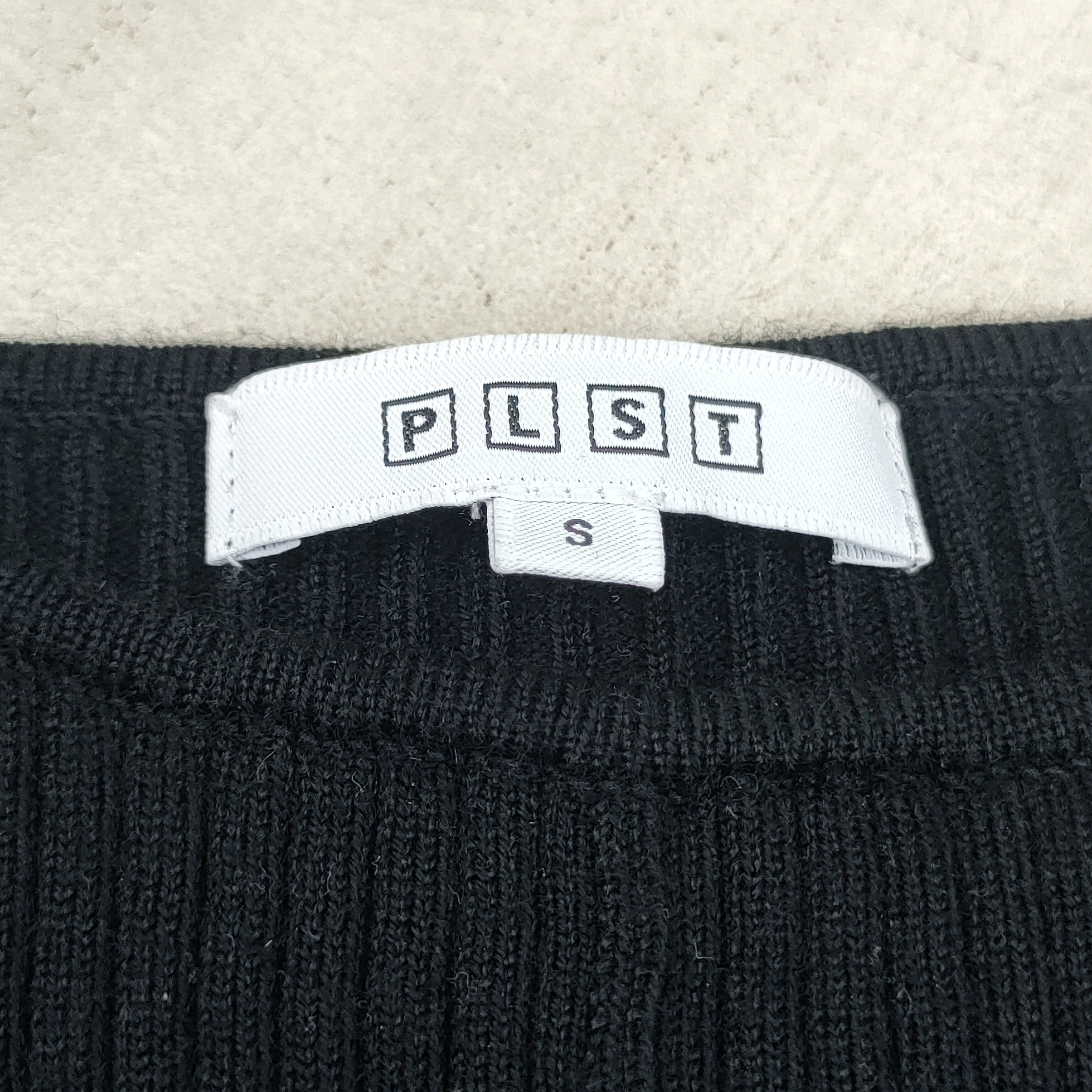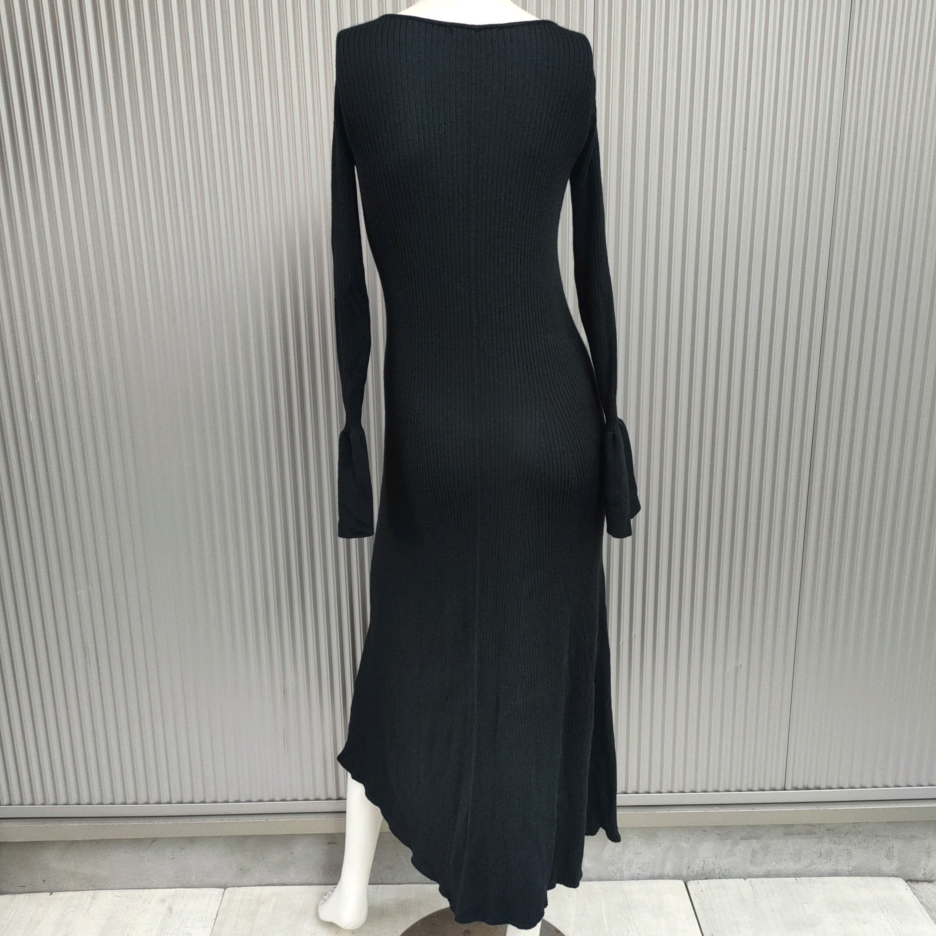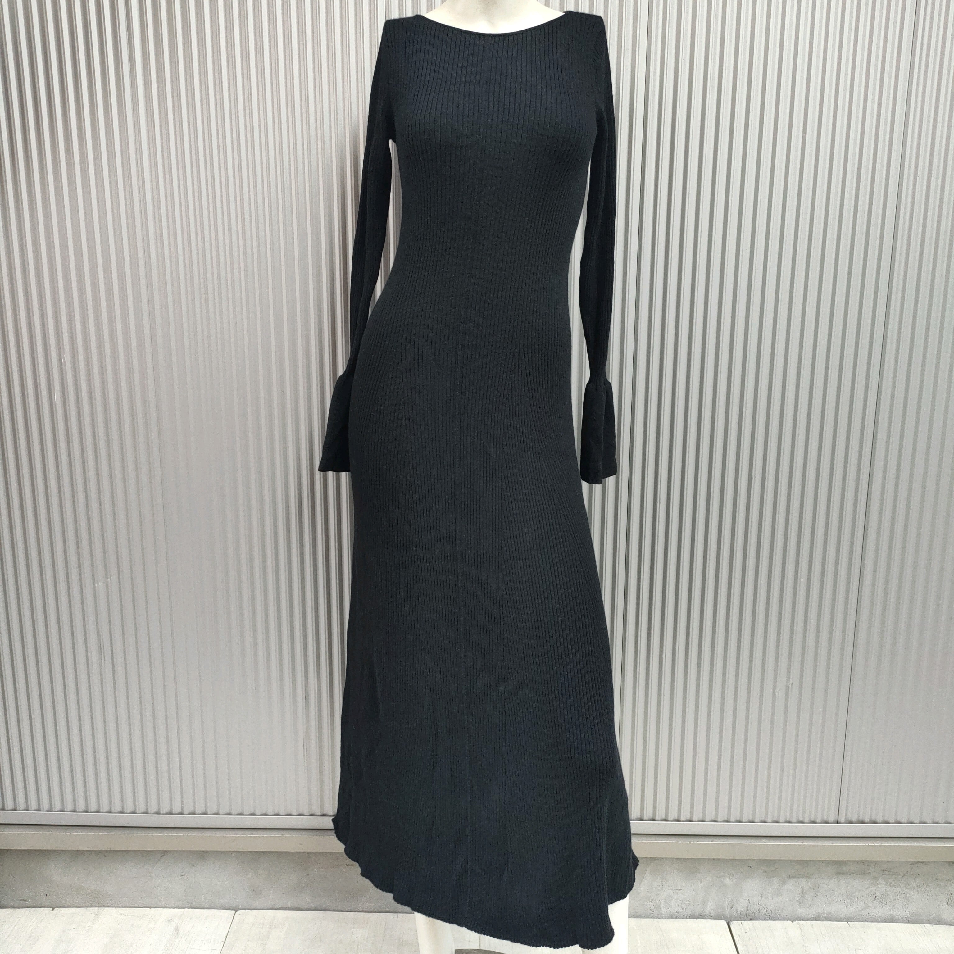 ○【2022AW/シルク混】美品/プラステPLST/122405008/マキシ丈/リブニット/ウール/フレアライン/タイト/ニットワンピース/S/黒/定価15000/