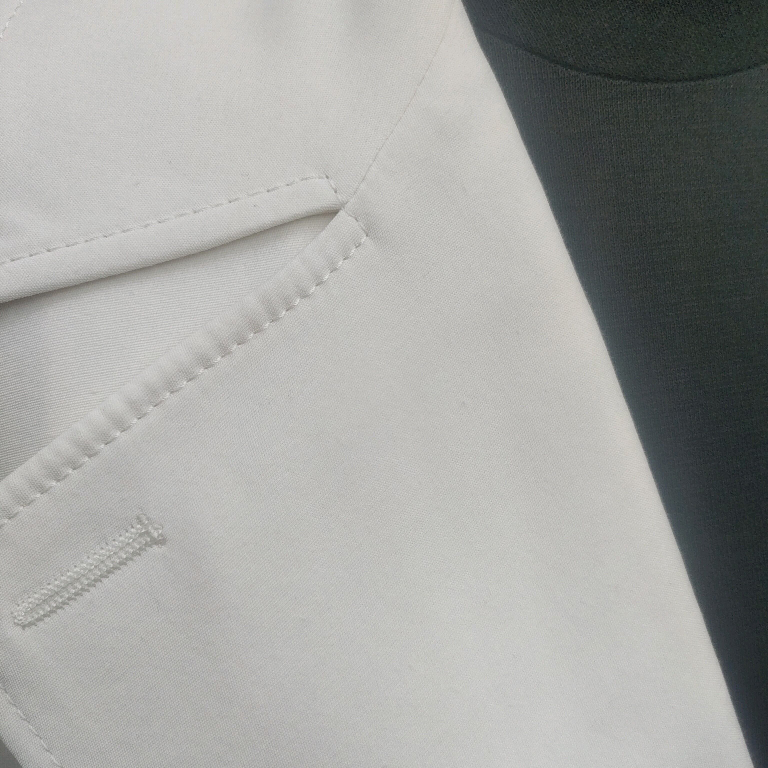 ★コットンリッチなふくらみのある顔を持ちながらも、合繊ならではの柔らかなドレープ性と反発性を兼ね備えた、ダブルクロス素材です。肉感がありながらも軽量です。