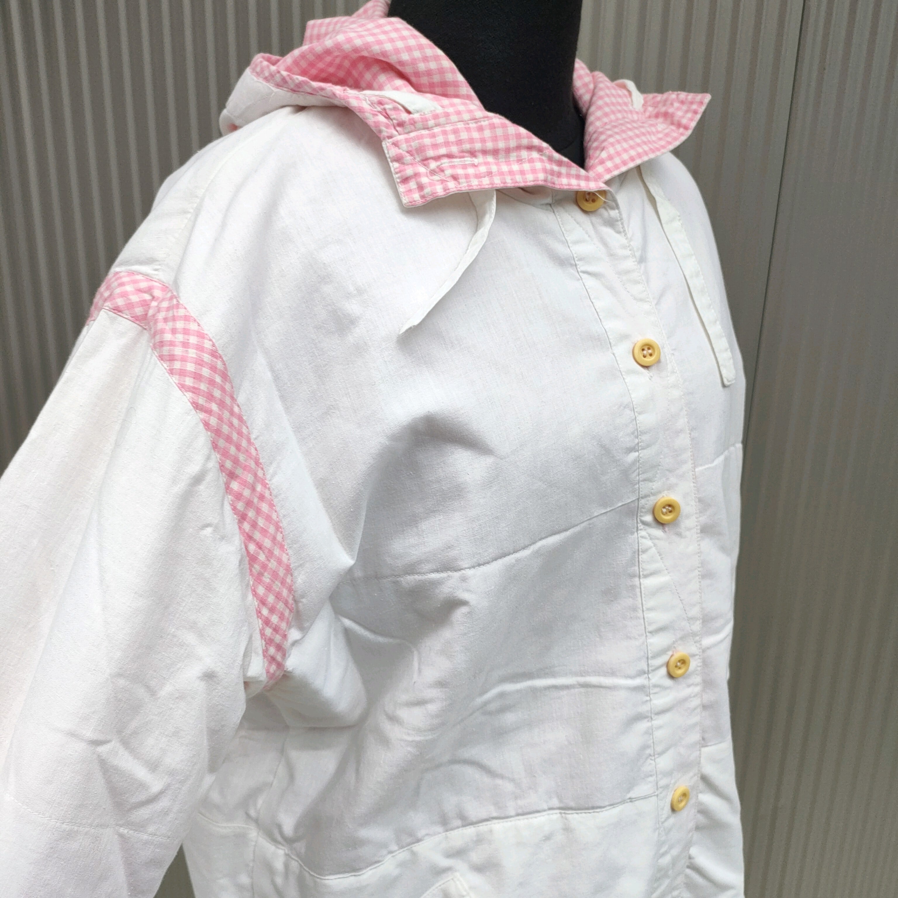 △【70s/ギリシャ製】クレージュcourreges paris/ヴィンテージ/ビンテージ/古着/エルボーパッチ/バックポケット/ギンガムチェック切替/中綿ジャケット/パーカー/白/RA08Y6/001/ | 古着屋RAINBOWFIELD Since 2006