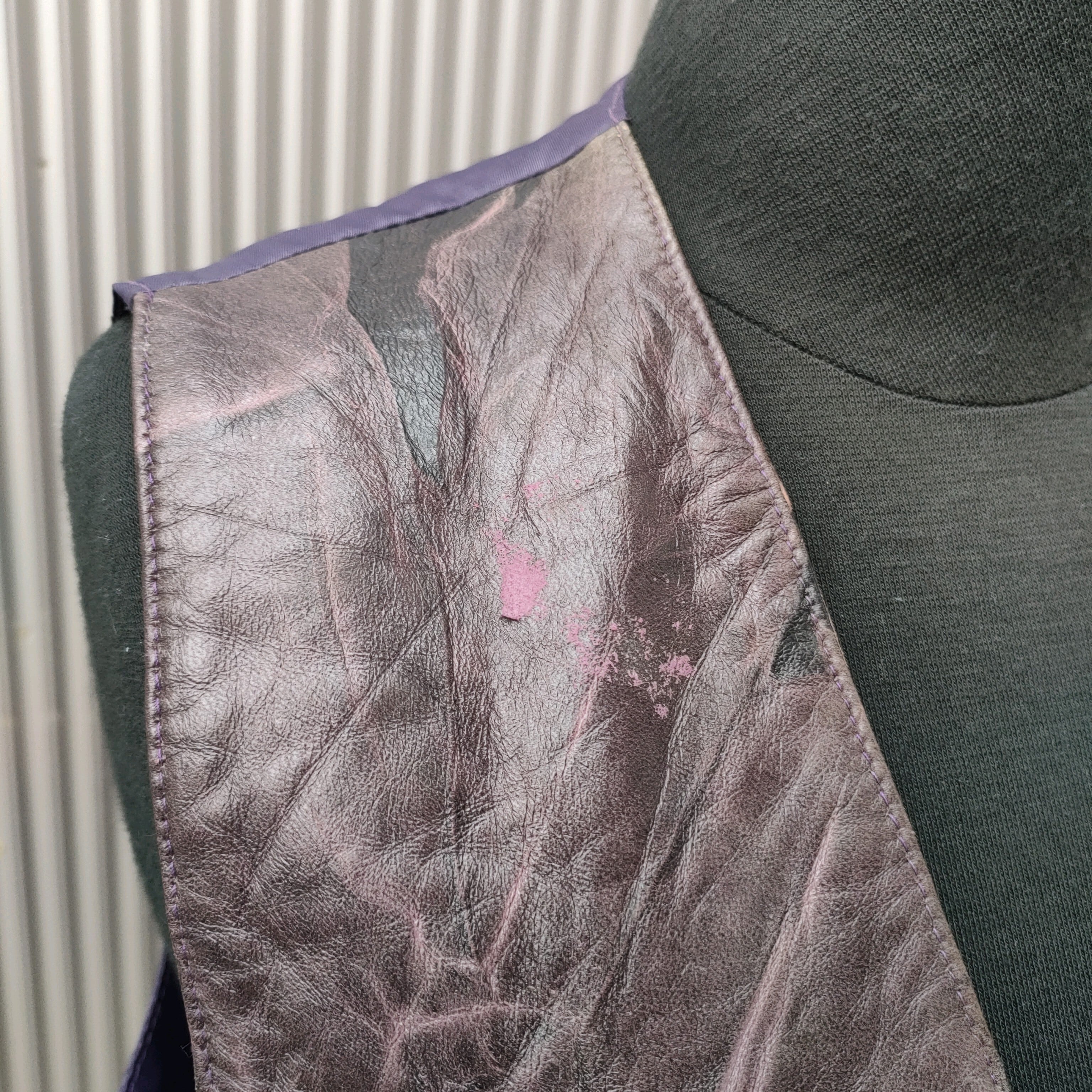 【素敵/80s/90s】Lydia Creazioni/ヴィンテージ/ビンテージ/古着/柄物/ラムスキン/レザー/パッチワーク/ベスト/ジレ/36/R0930KS1/007/