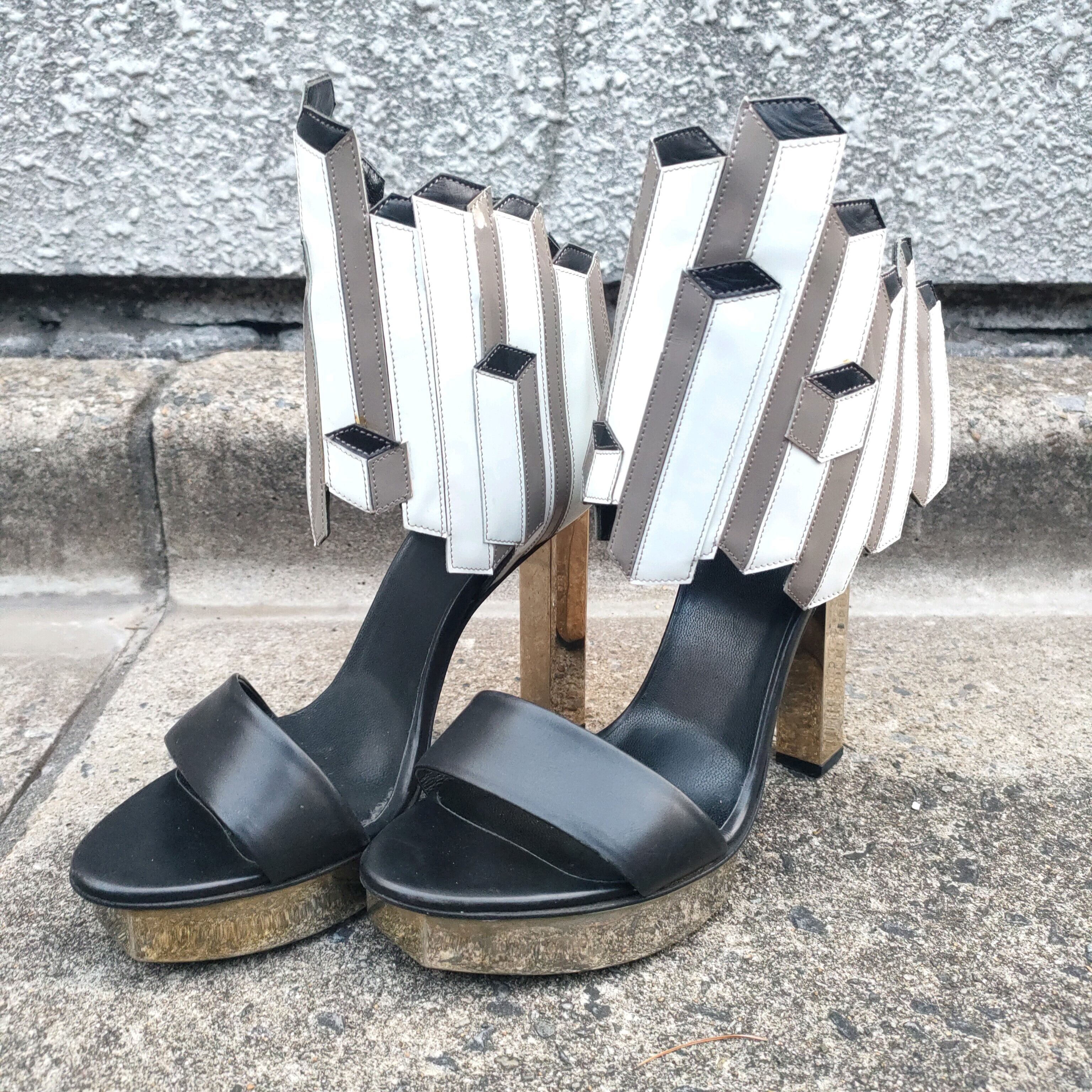 ★多少レザー擦れ、ゴールド部分に汚れや色落ち?などの使用感、傷つかないようにアウトソールにテープがございます。