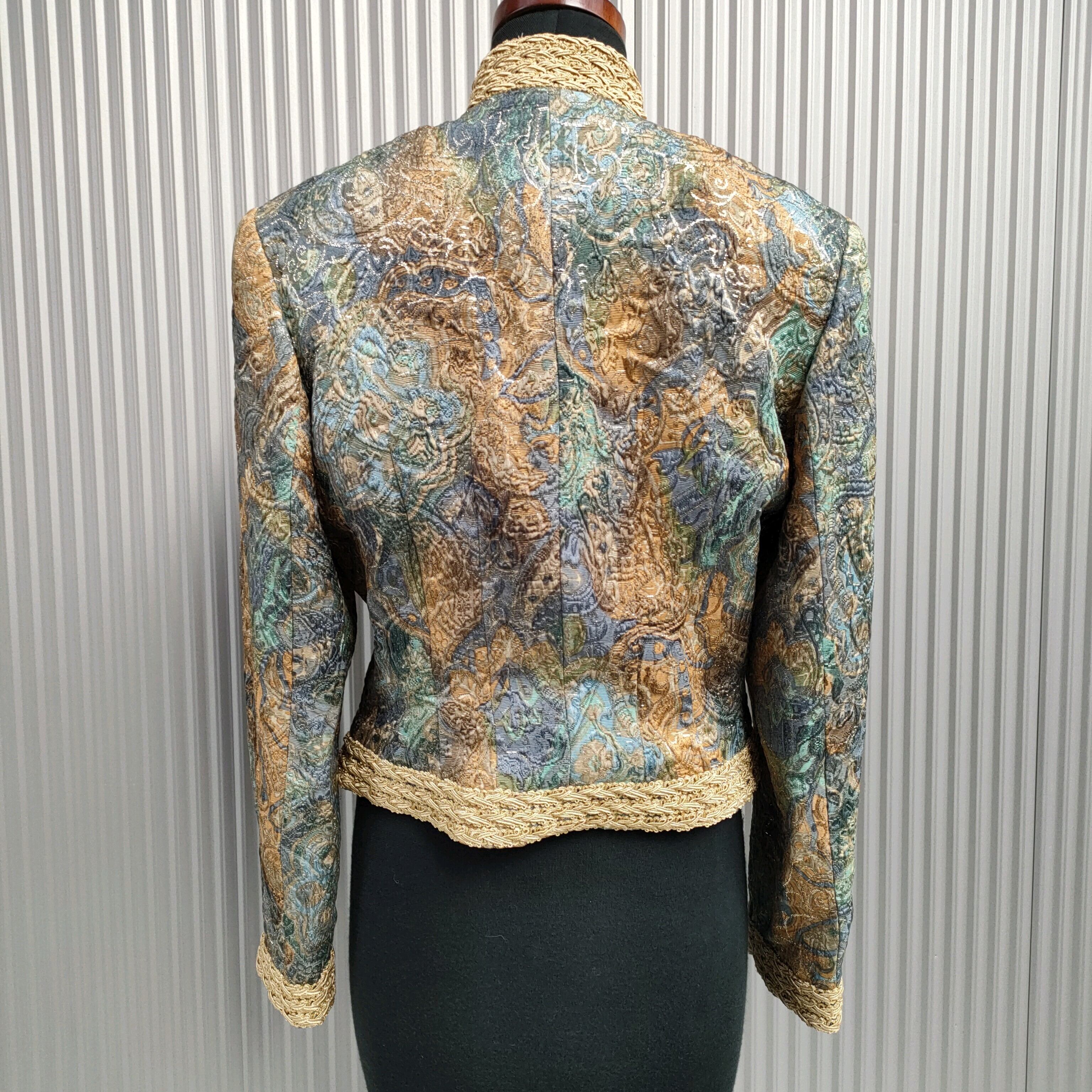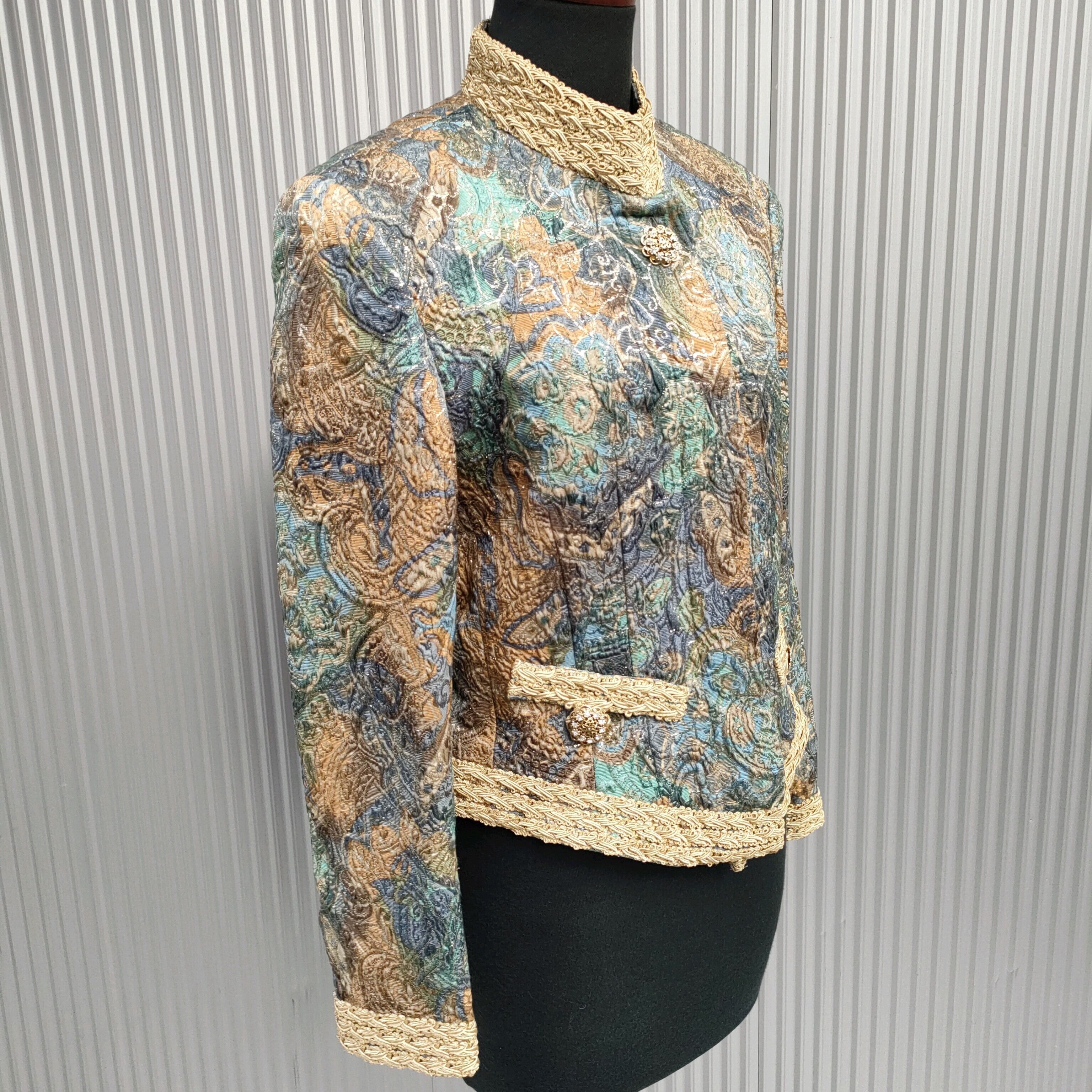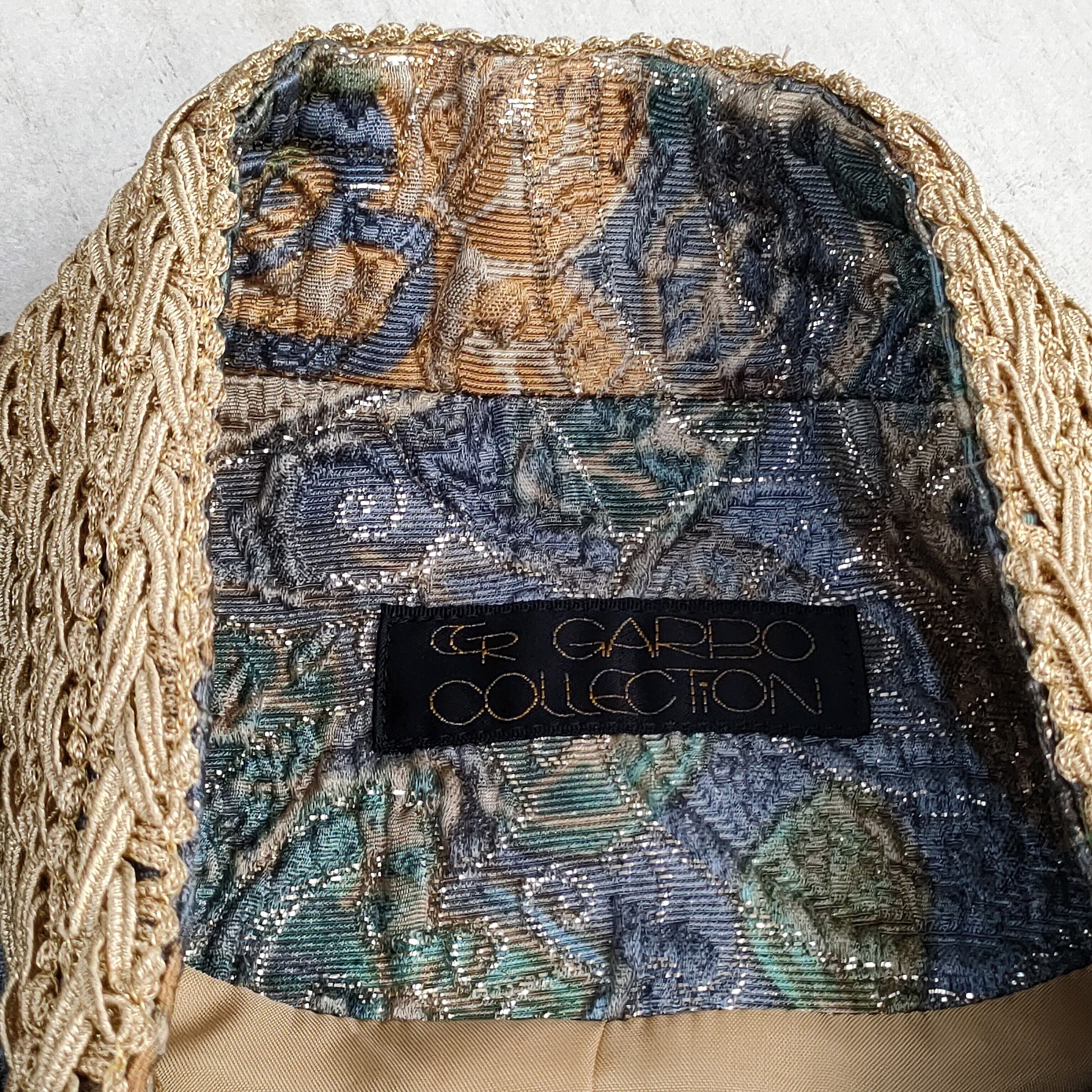 ◯【シルク44%】新品同様/ガルボGARBO COLLECTION/ヴィンテージ/ビンテージ/古着/金ボタン/ゴージャス/エレガント/総柄/ウール×絹/ジャケット/ステージ衣装/衣裳/マルチカラー/RK03KS4/001/