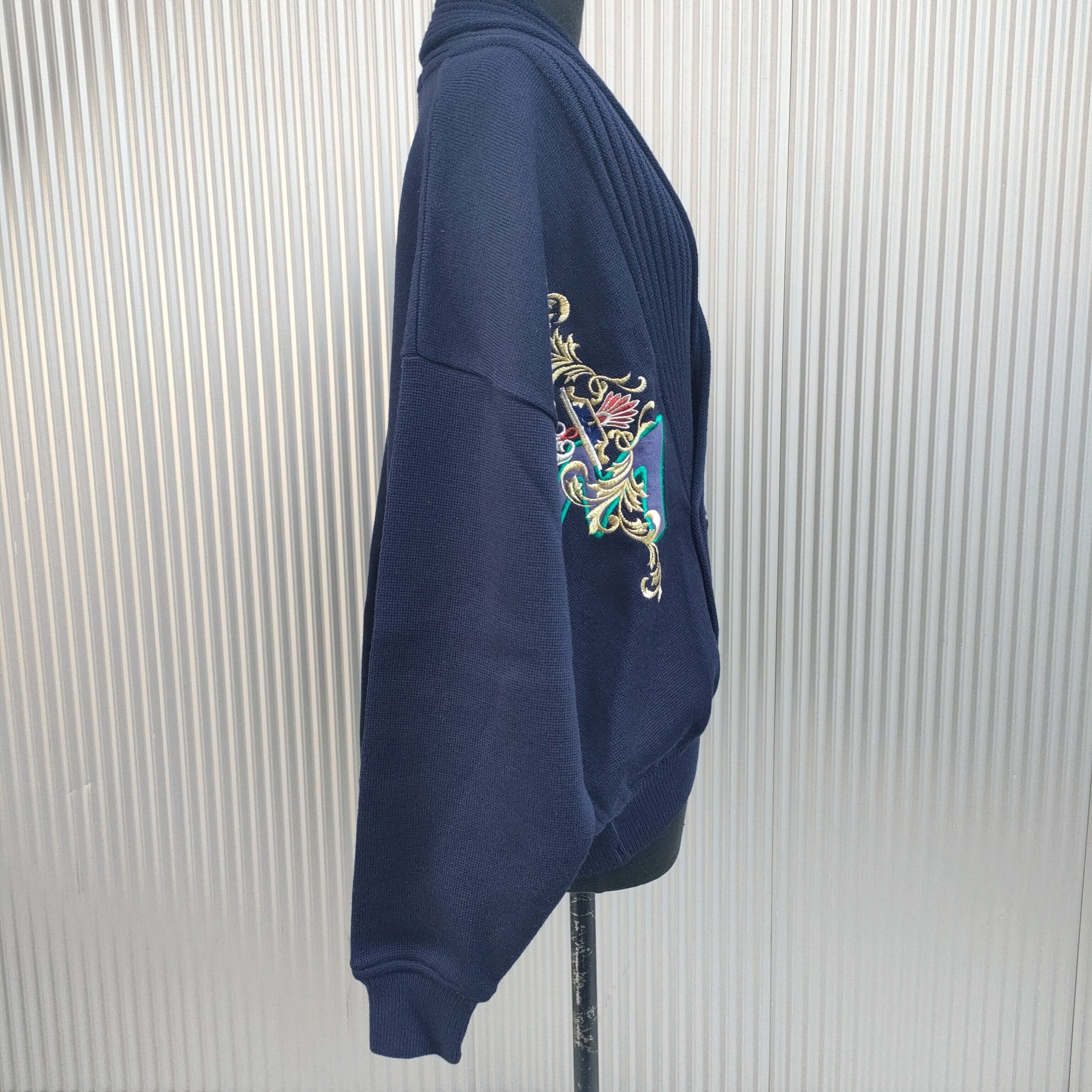 ○新品/マリアーノルビナッチMARIANO RUBINACCI SPORTS/ロンドンハウス/ヴィンテージ/ビンテージ/デッドストック/ビッグシルエット/オーバーサイズ/刺繍/ショールカラー/プルオーバー/ウール/ニット/セーター/4/ネイビー/RK12KK7/003/
