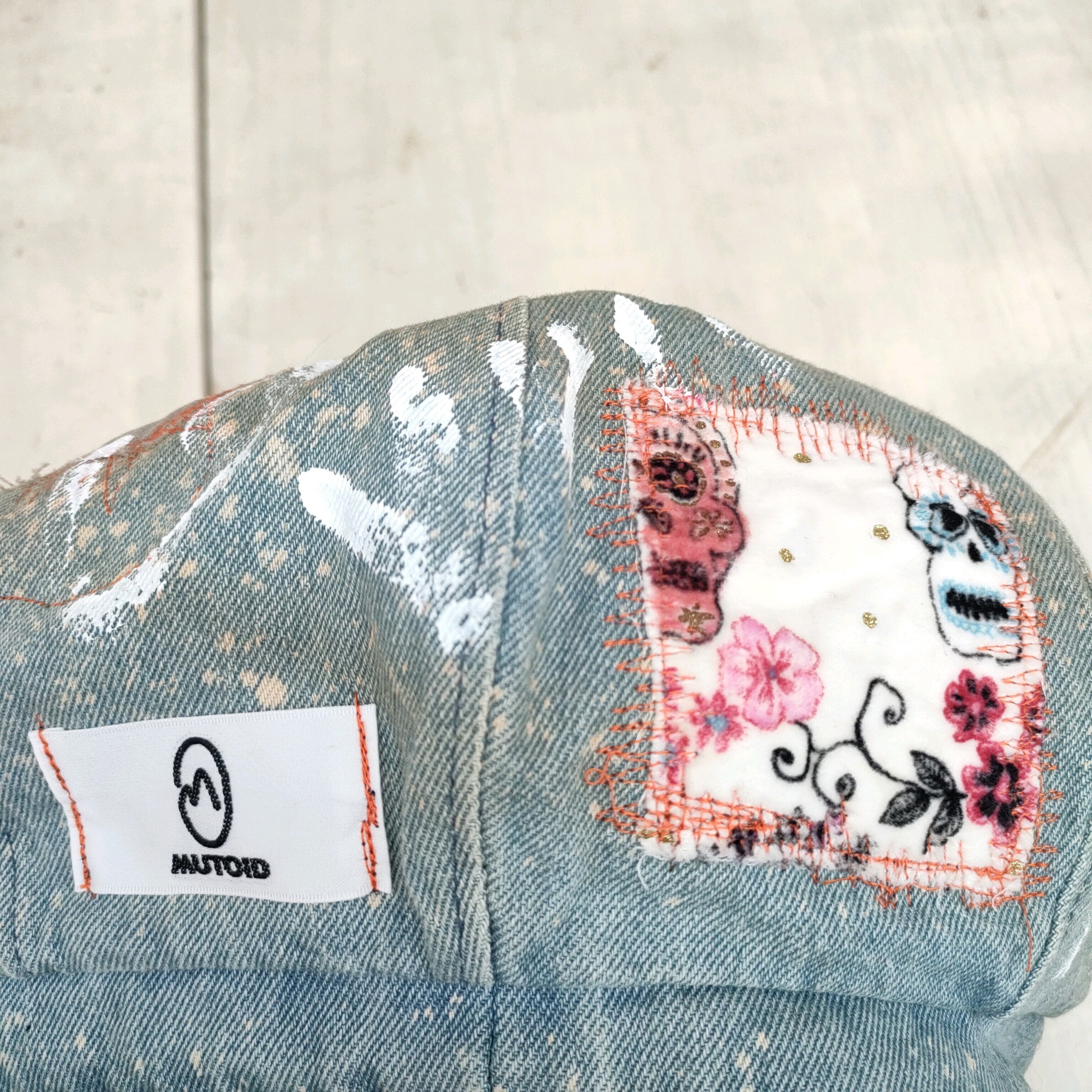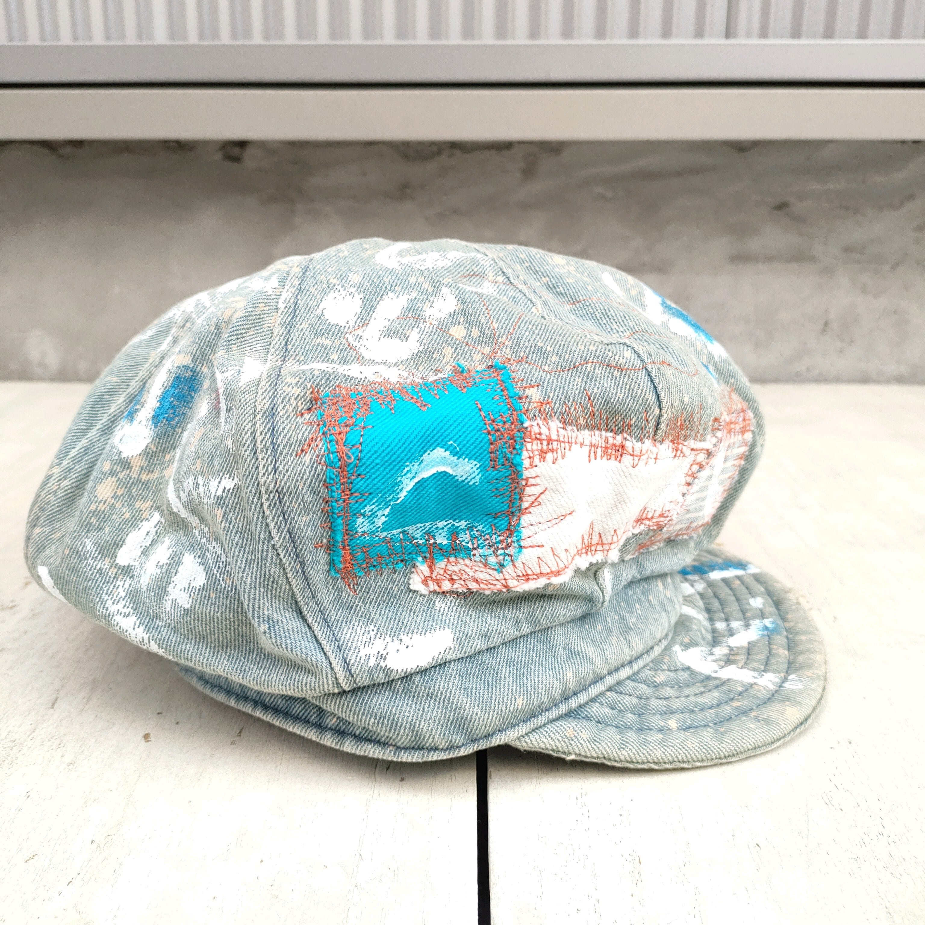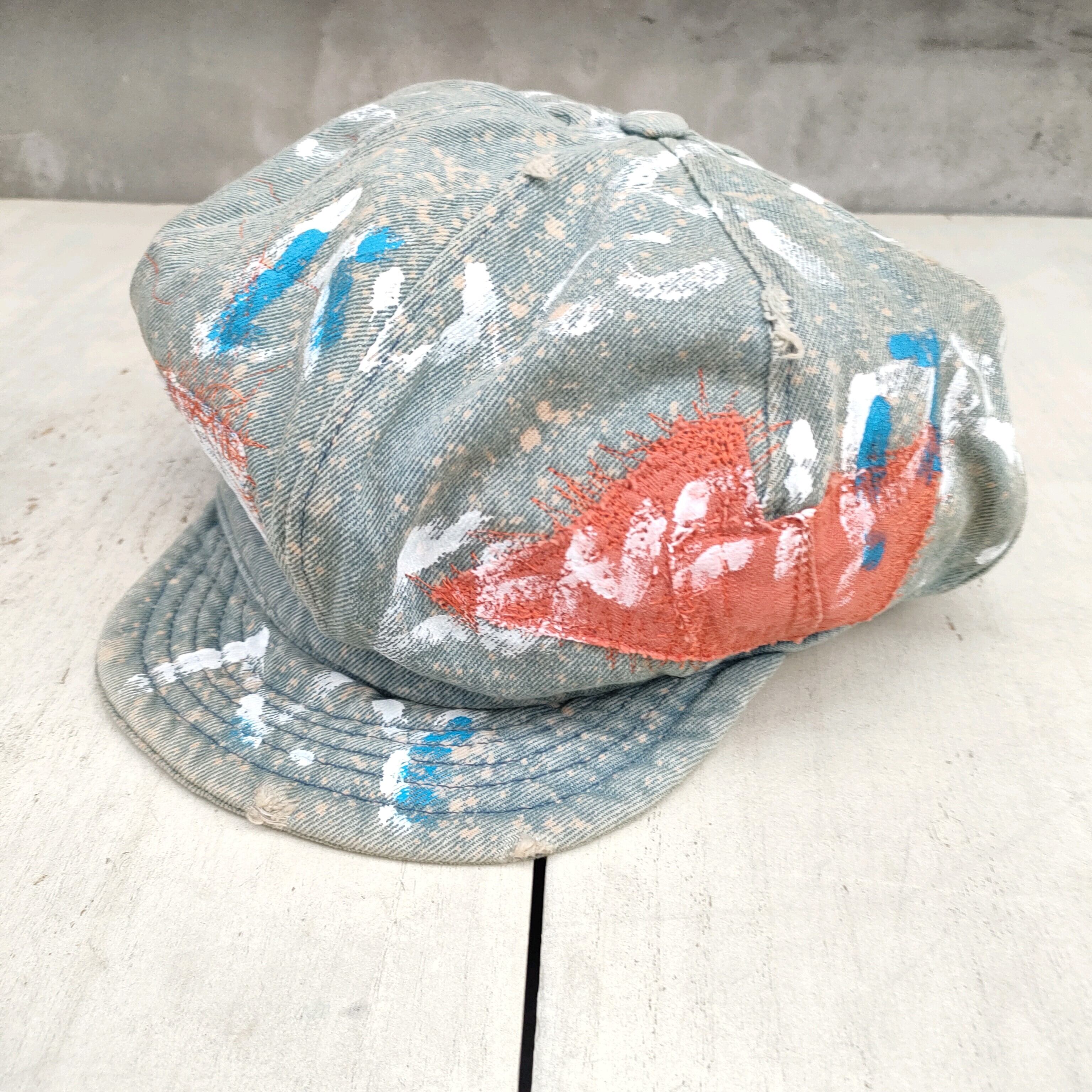 ○【1点物】MUTOID/あきもとまさあき/ペイント/カスタム/リメイク/古着/デニム/キャスケット/アイスブルー/RK19KE16/004/