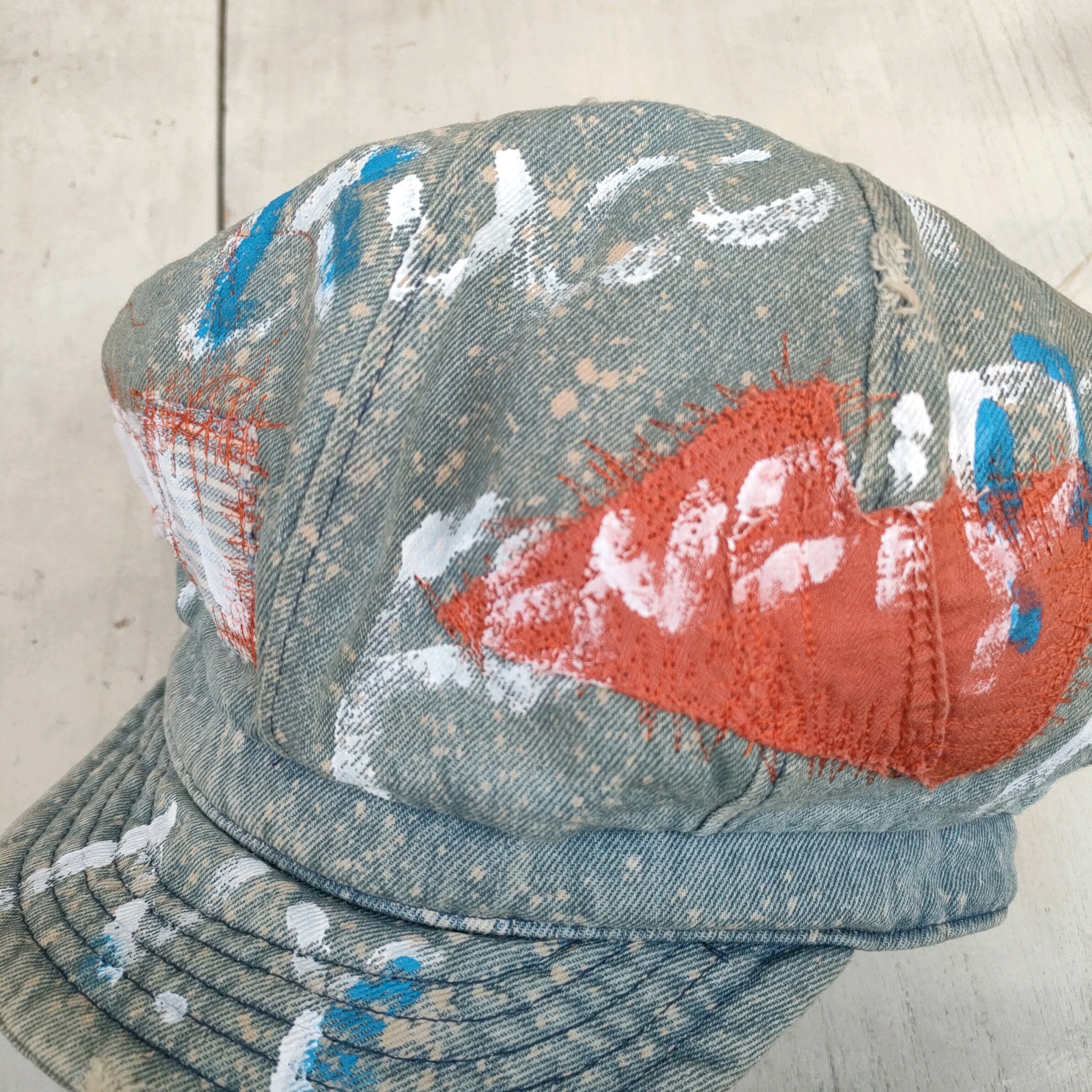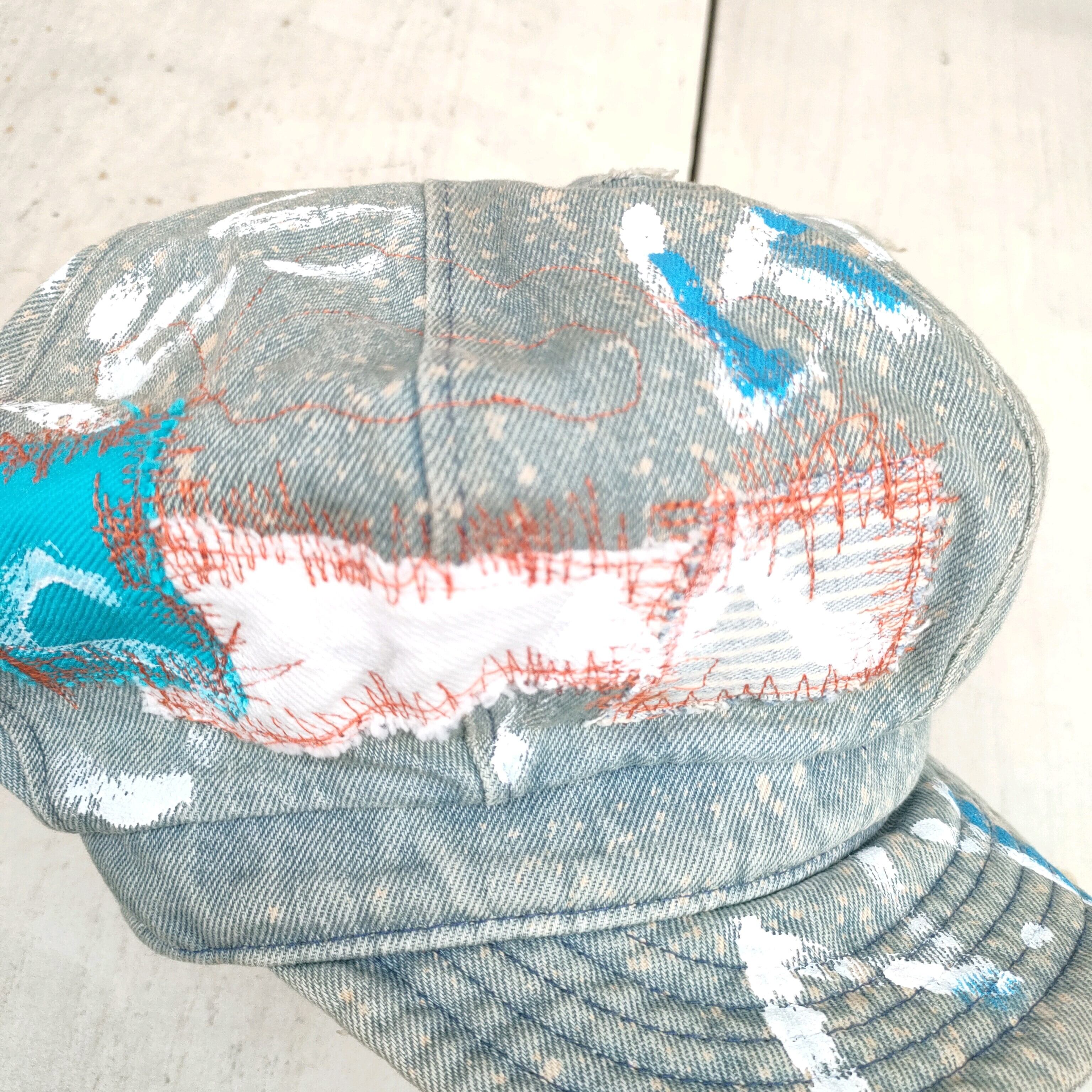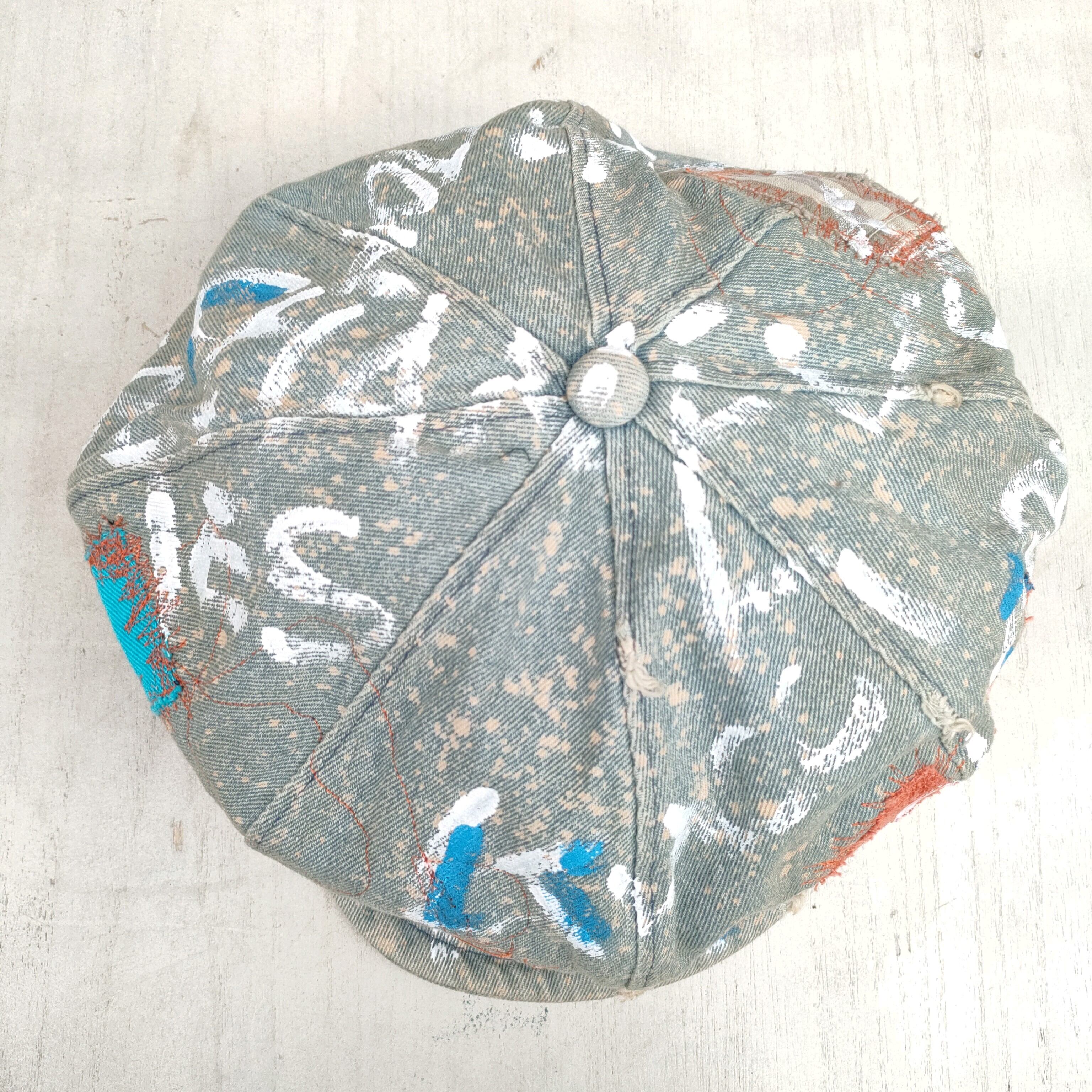○【1点物】MUTOID/あきもとまさあき/ペイント/カスタム/リメイク/古着/デニム/キャスケット/アイスブルー/RK19KE16/004/