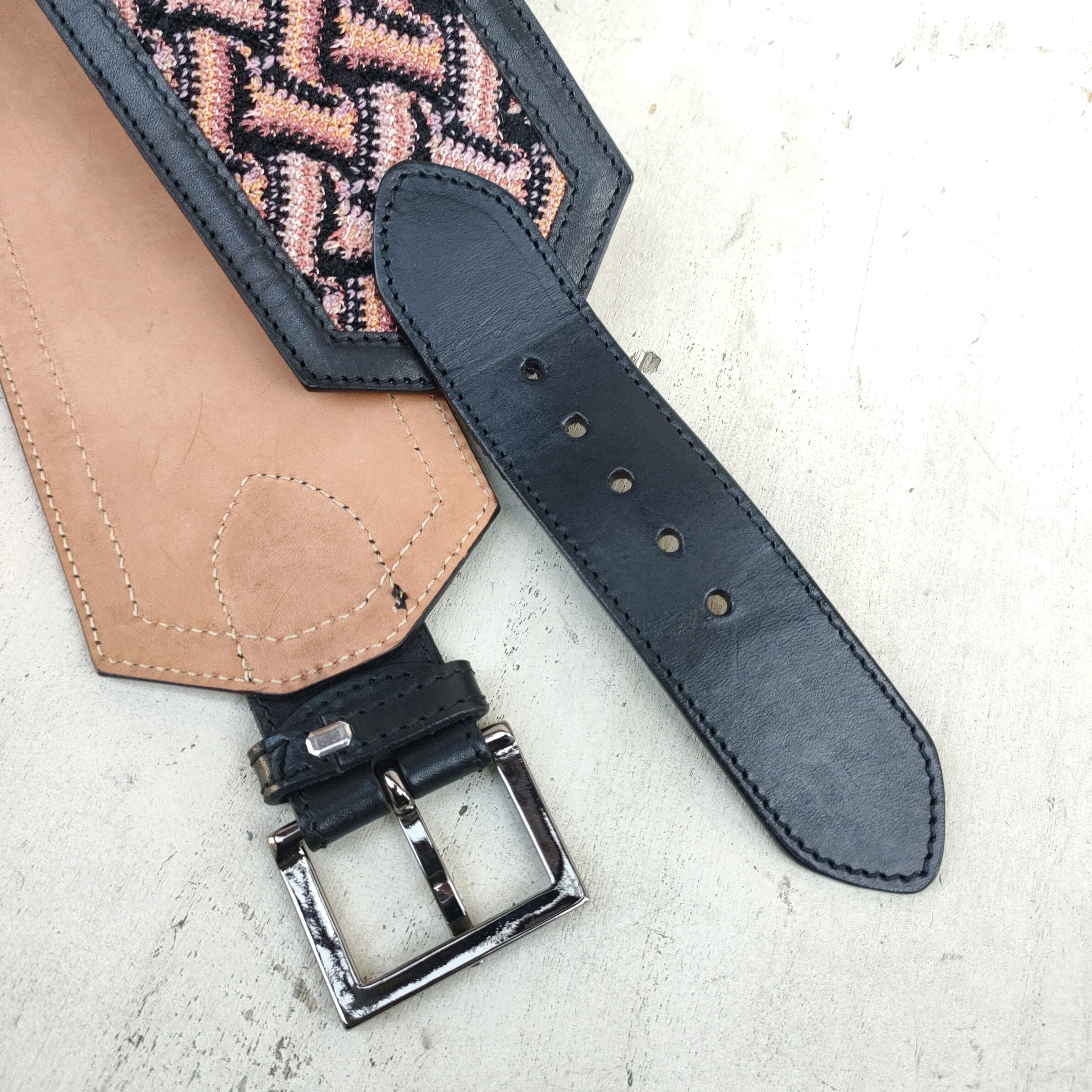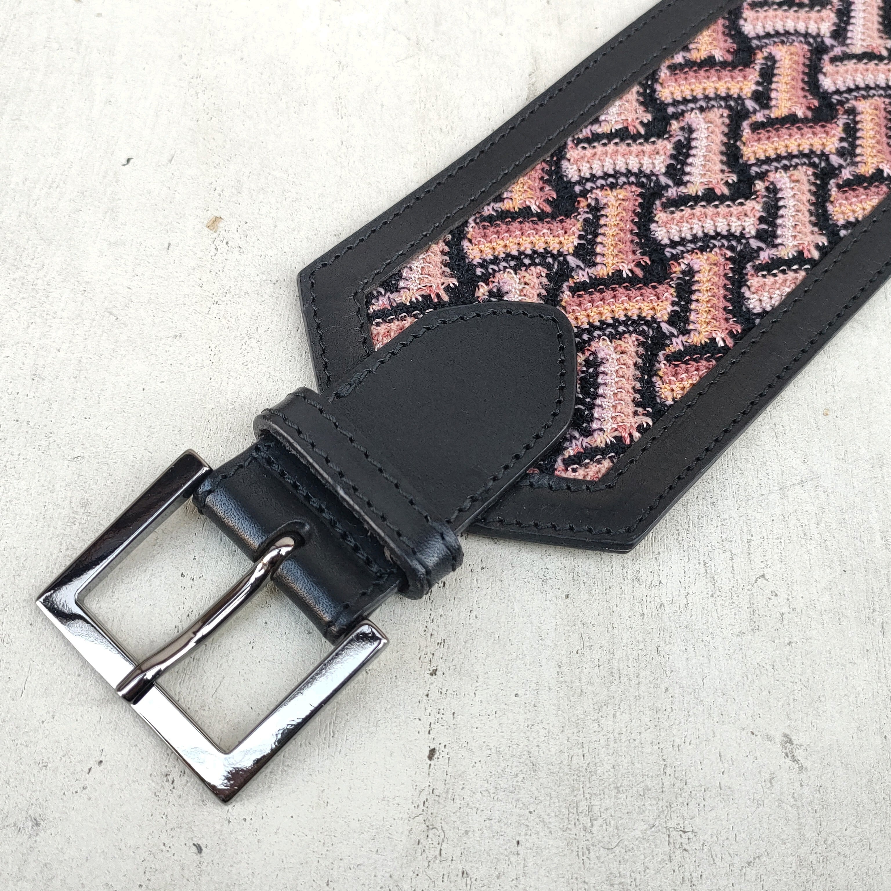 ○【極上/イタリア製】美品/ミッソーニMISSONI/ヨーロッパ古着/レザー×ニット/サッシュベルト/75/RK29MBO1/0001/