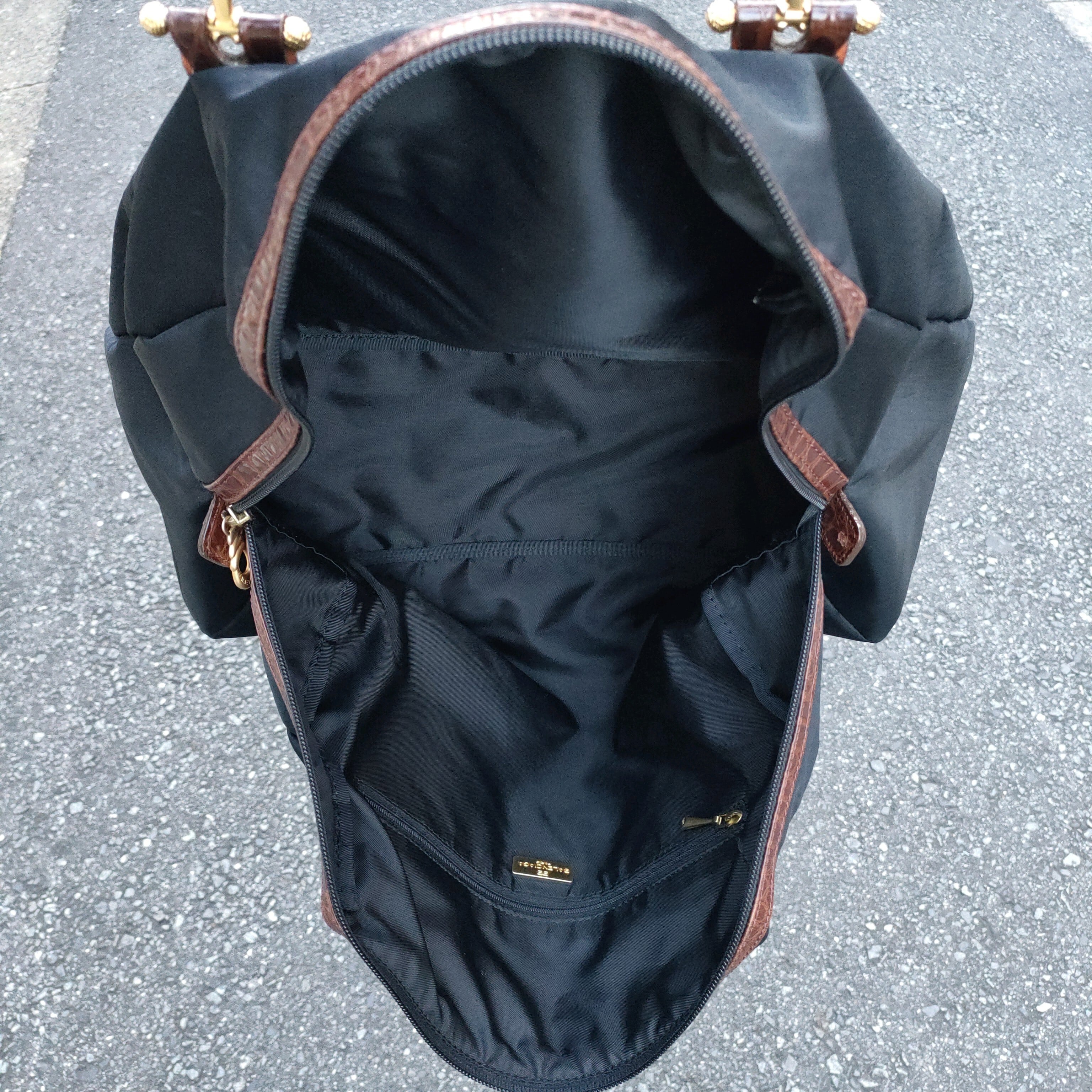 ★古い物なので外側底に接着リペア跡?、ファスナー付近に1ヶ所接着リペア跡?ハンドル付近に汚れはございますが他は比較的良好です。