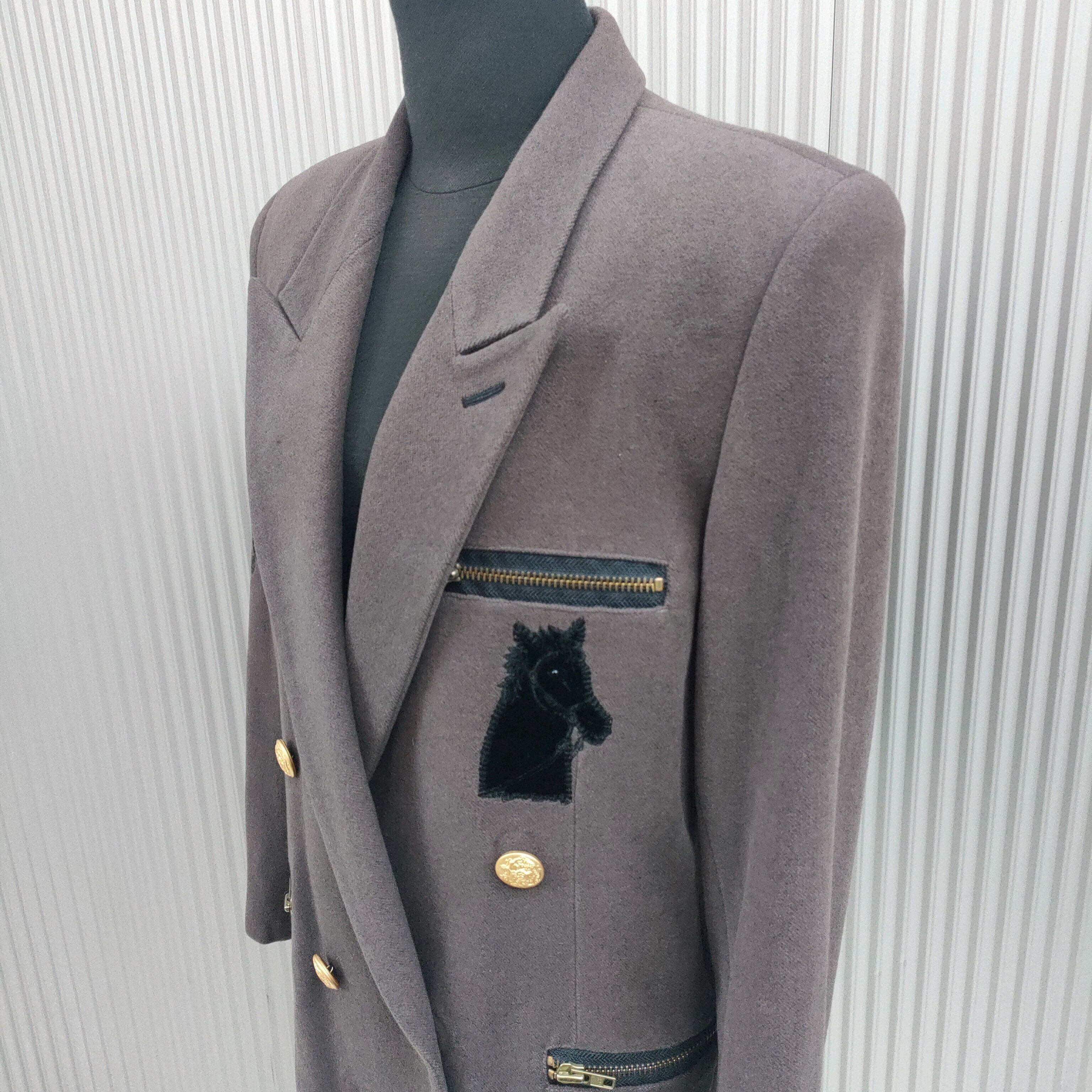 ○【上質/アンゴラ70%】GK伊太利屋/古着/ウール/バックジップ/馬ベロア/ダブルブレスト/デザイン/ジャケット/9/RJ28NK7/006/