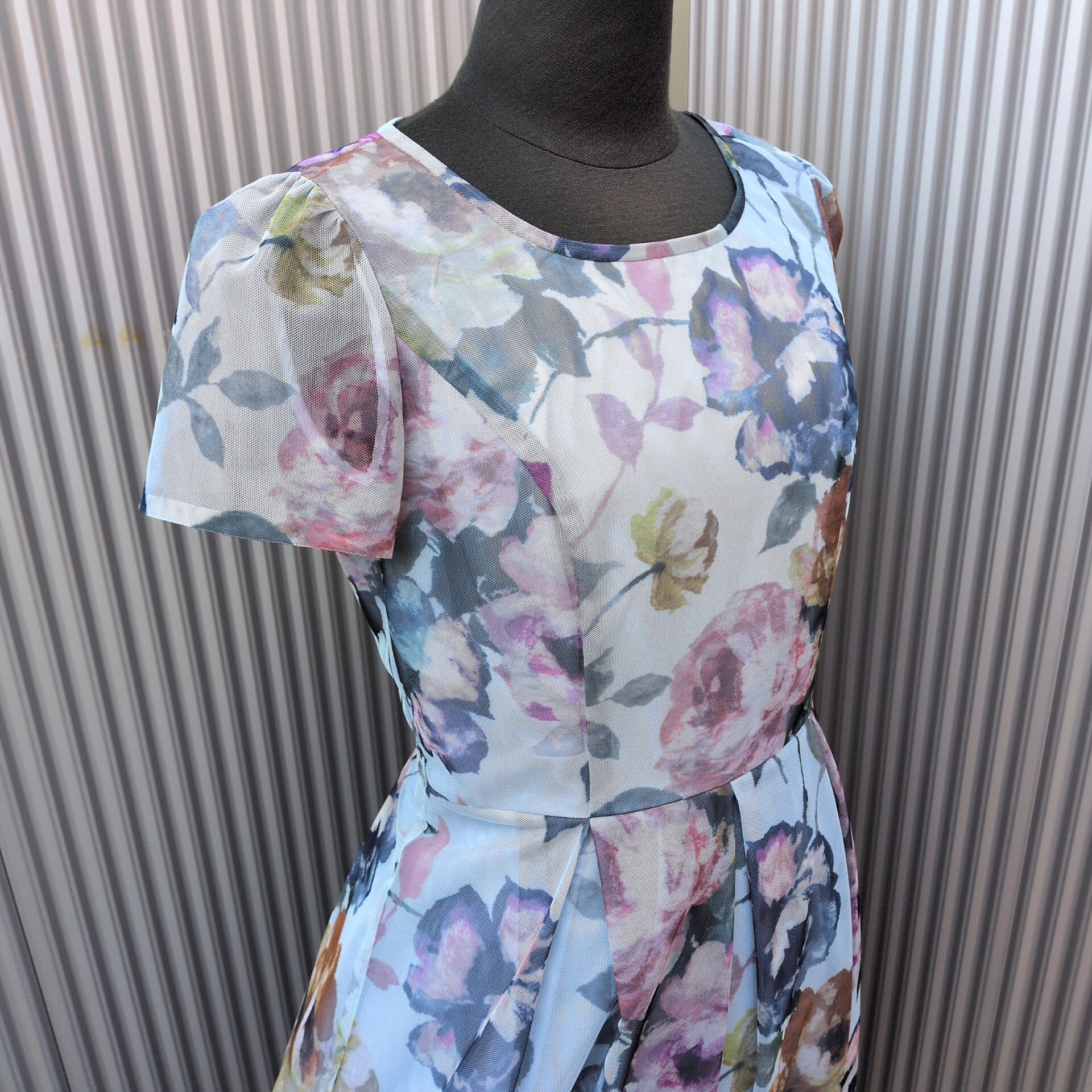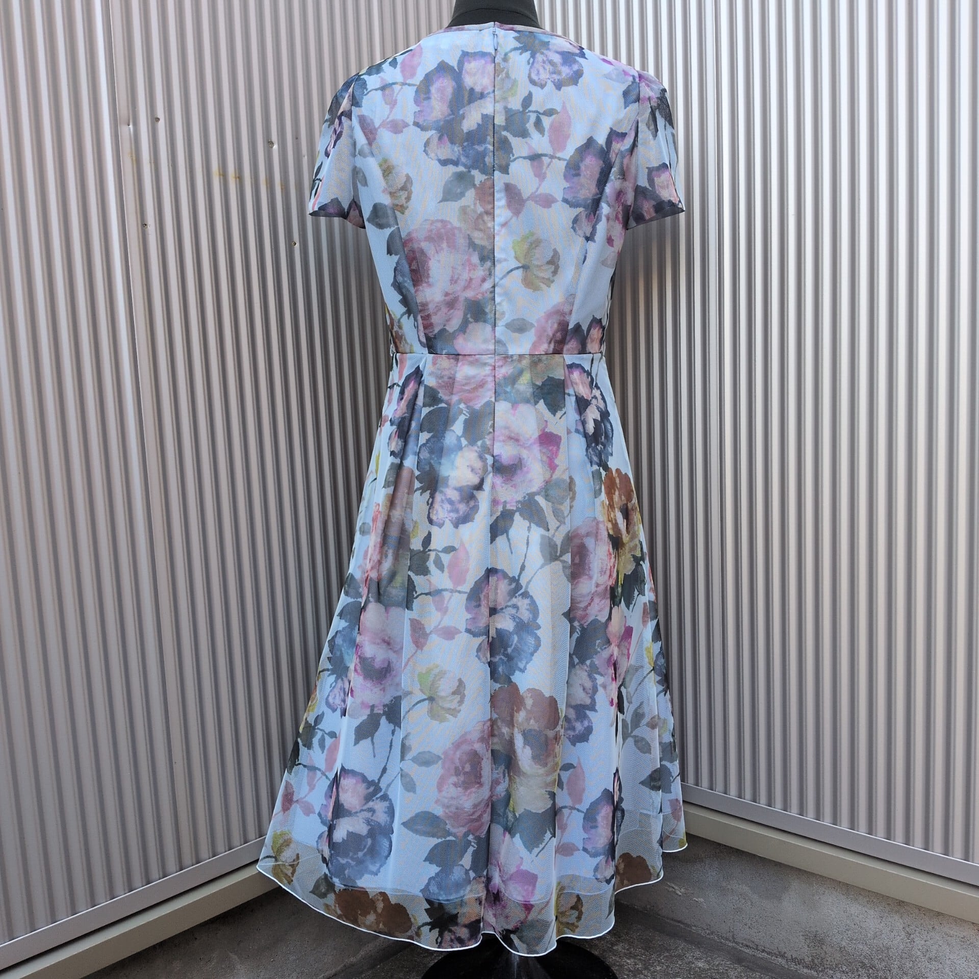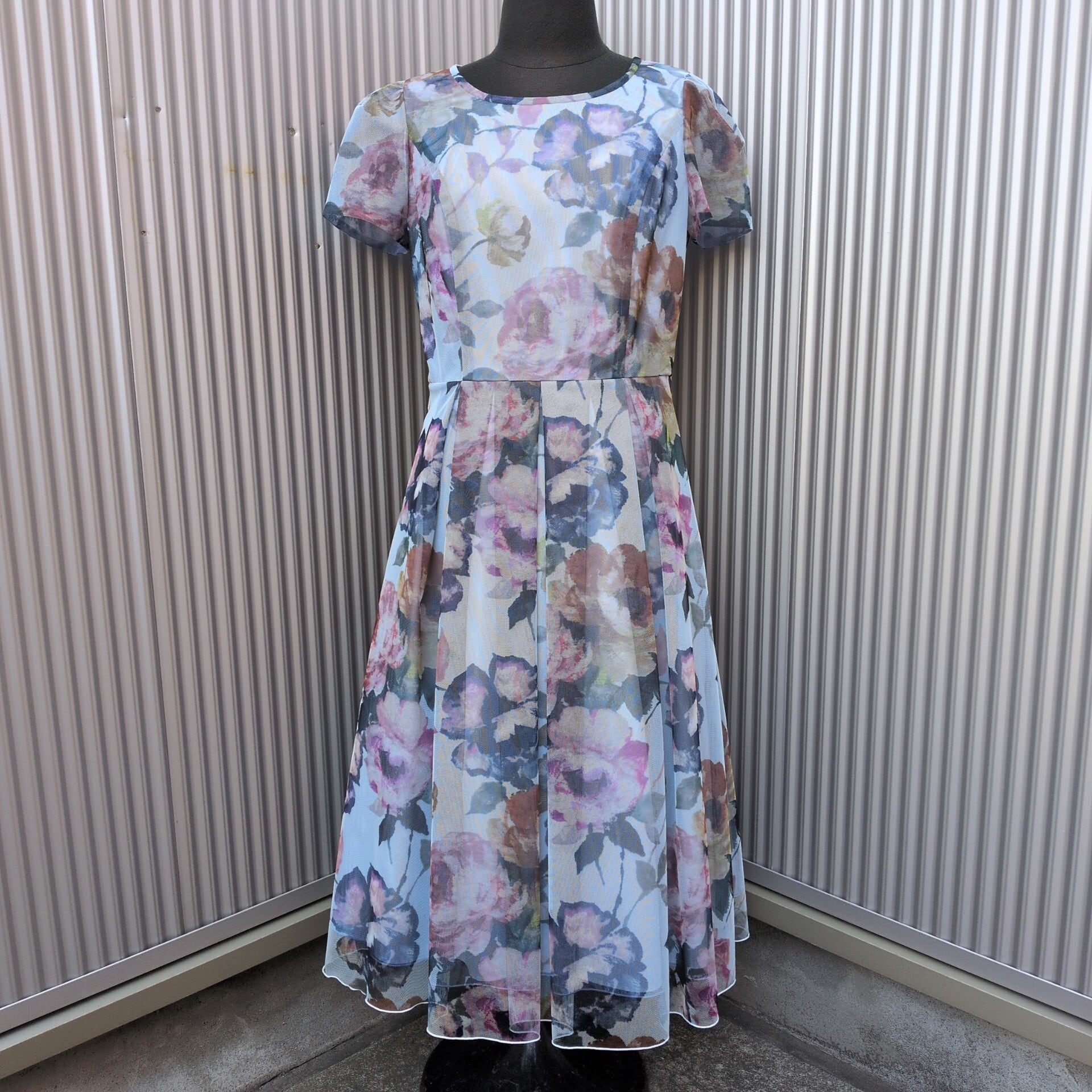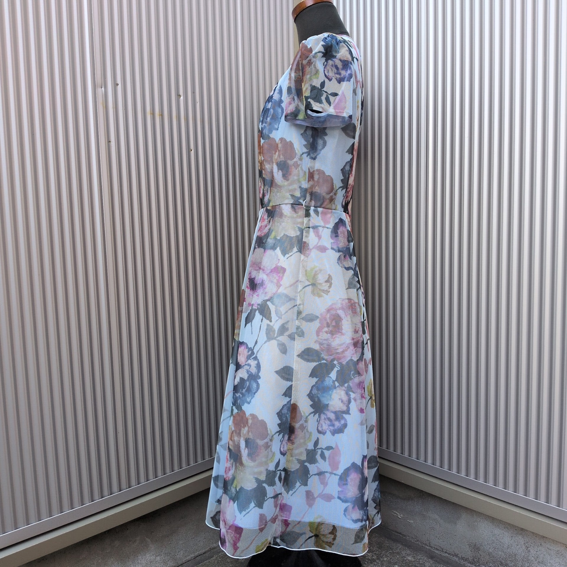 ★淡いトーンで描いたお花のプリントが美しいチュールのドレス。