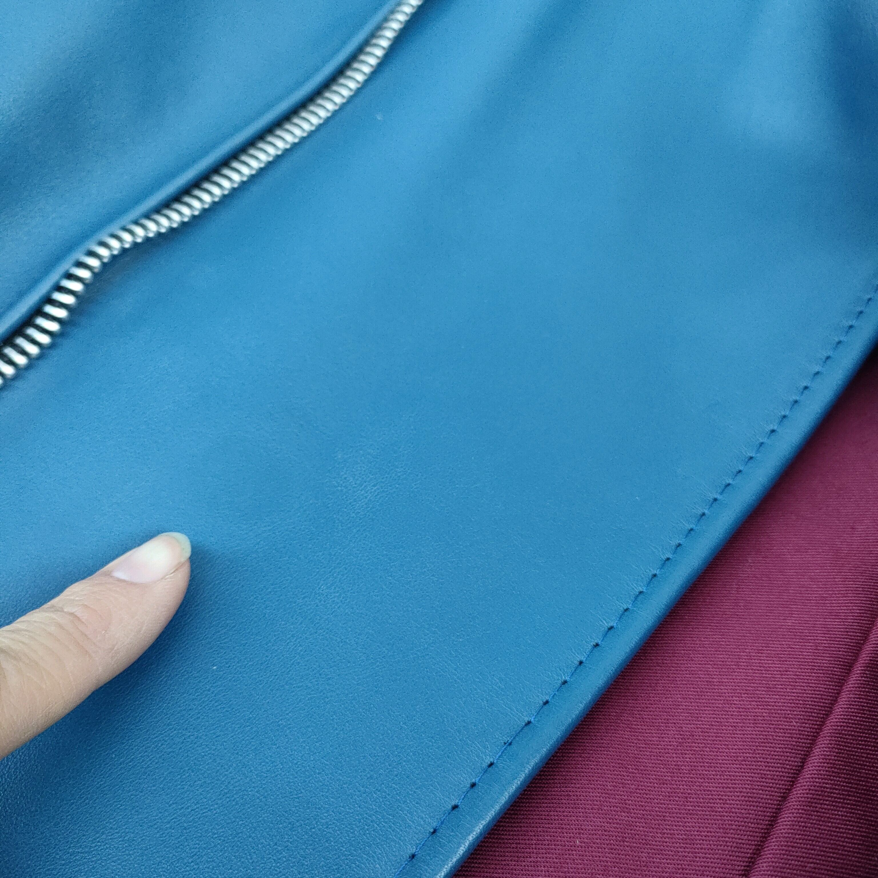 ★袖口付近と肩付近のレザーに擦れ、ジップを開けた内側のレザーにボタン跡か染み?のような跡など僅かに使用感がございます。