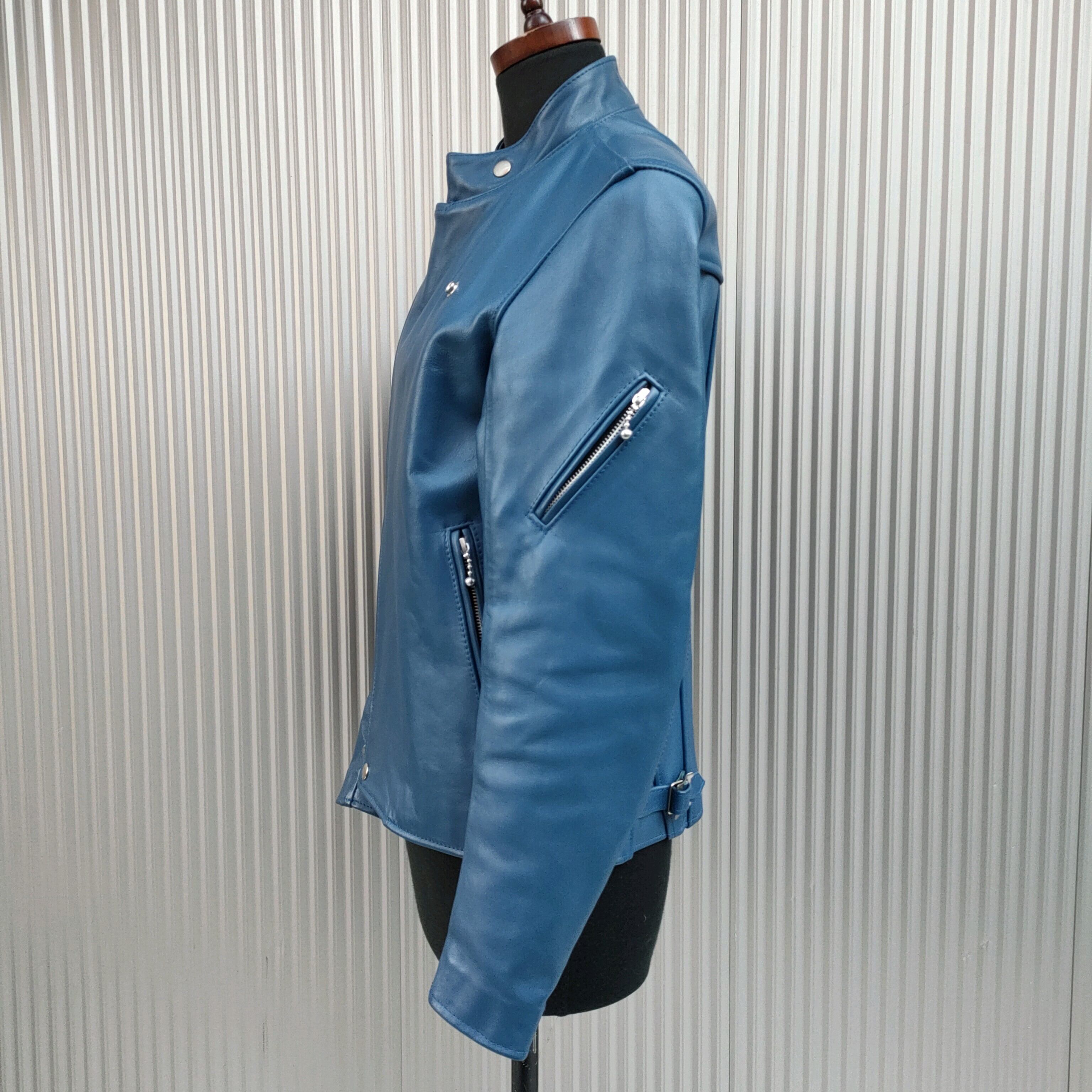 ◯【稀少/最高級/手作り/イングランド製】美品/ジェームスグロースJAMES GROSE/リカルド/RECARD/ハンドメイド/Wジップ/牛革/レザー/シングル/ライダースジャケット/バイカー/革ジャン/36/青/ブルー/定価242000/SA191/00003/