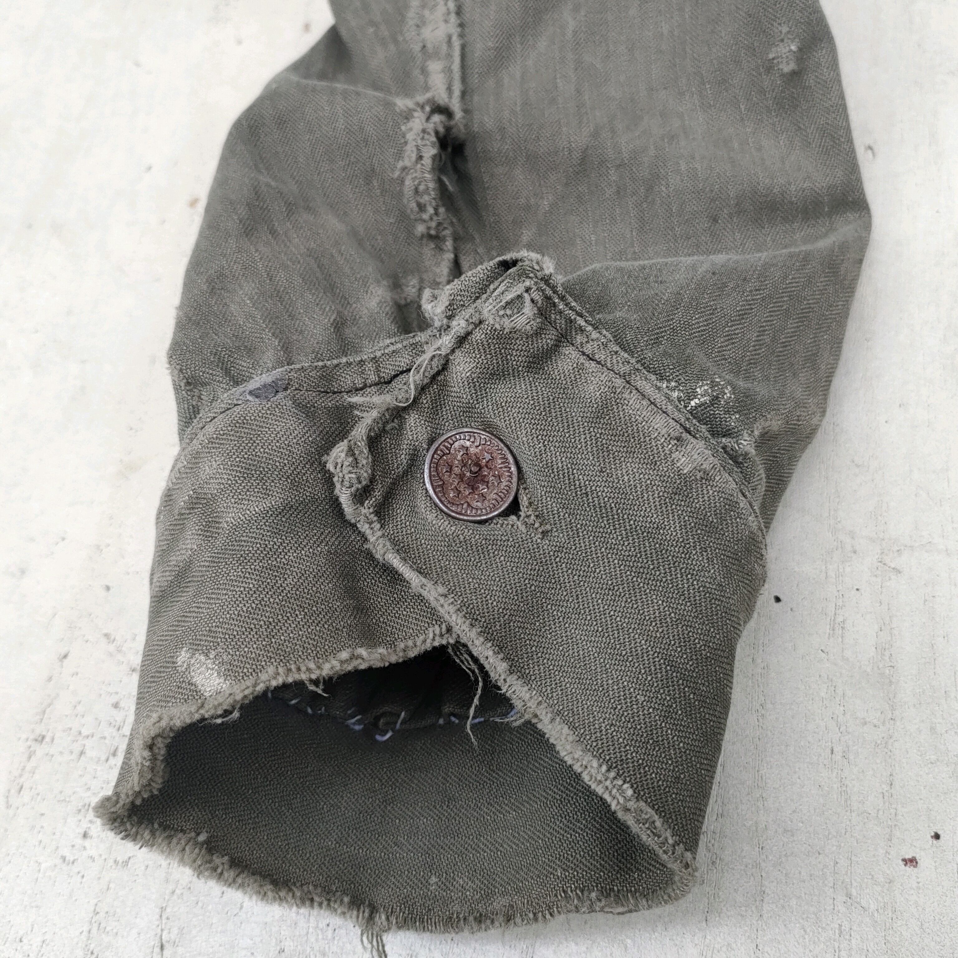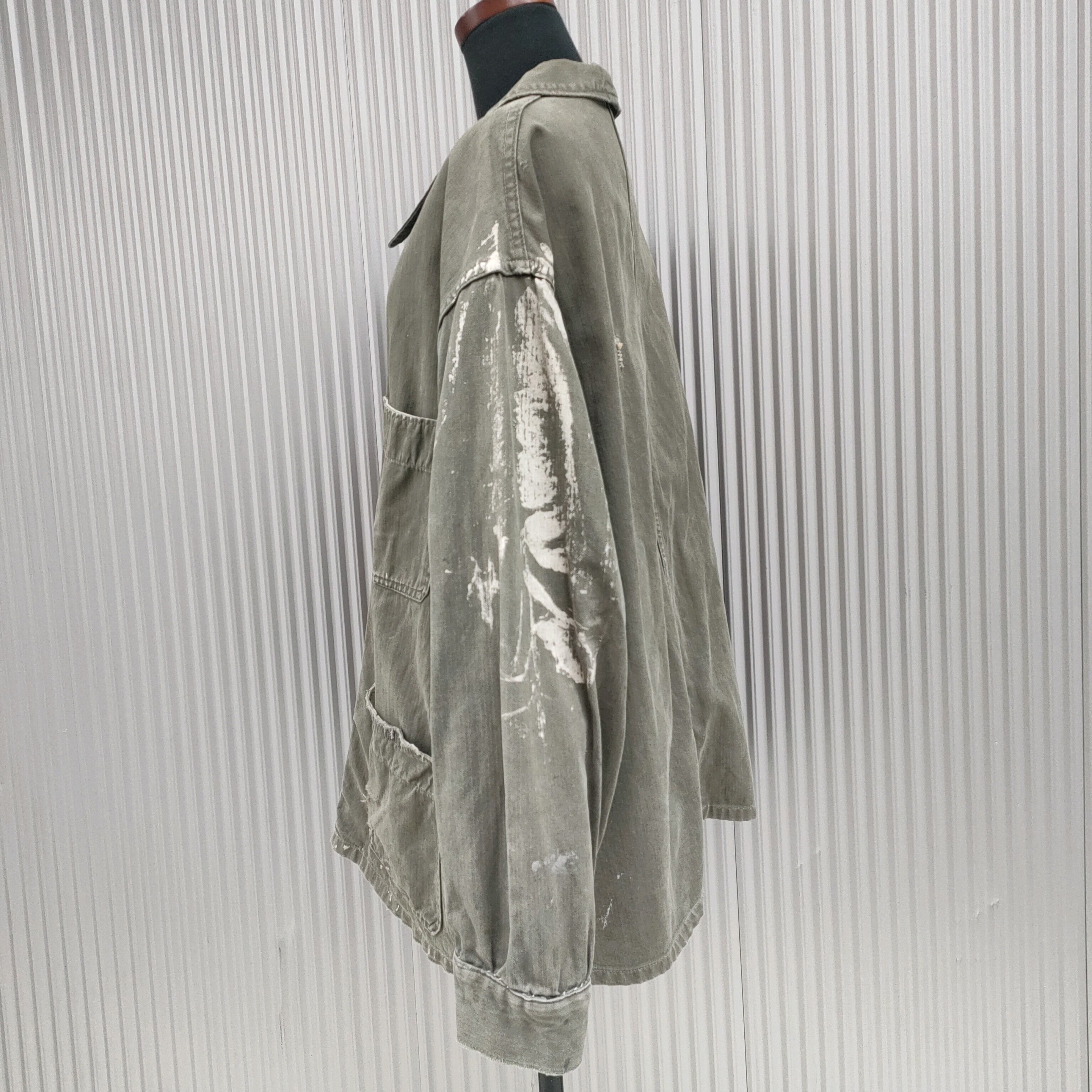 【激味/50s/60s/フレンチワーク】unknown/ユーロヴィンテージ/ビンテージ/ヨーロッパ古着/リペア/ペンキ/カバーオール/ワークジャケット/カーキ/オリーブ/SB0314/0002/