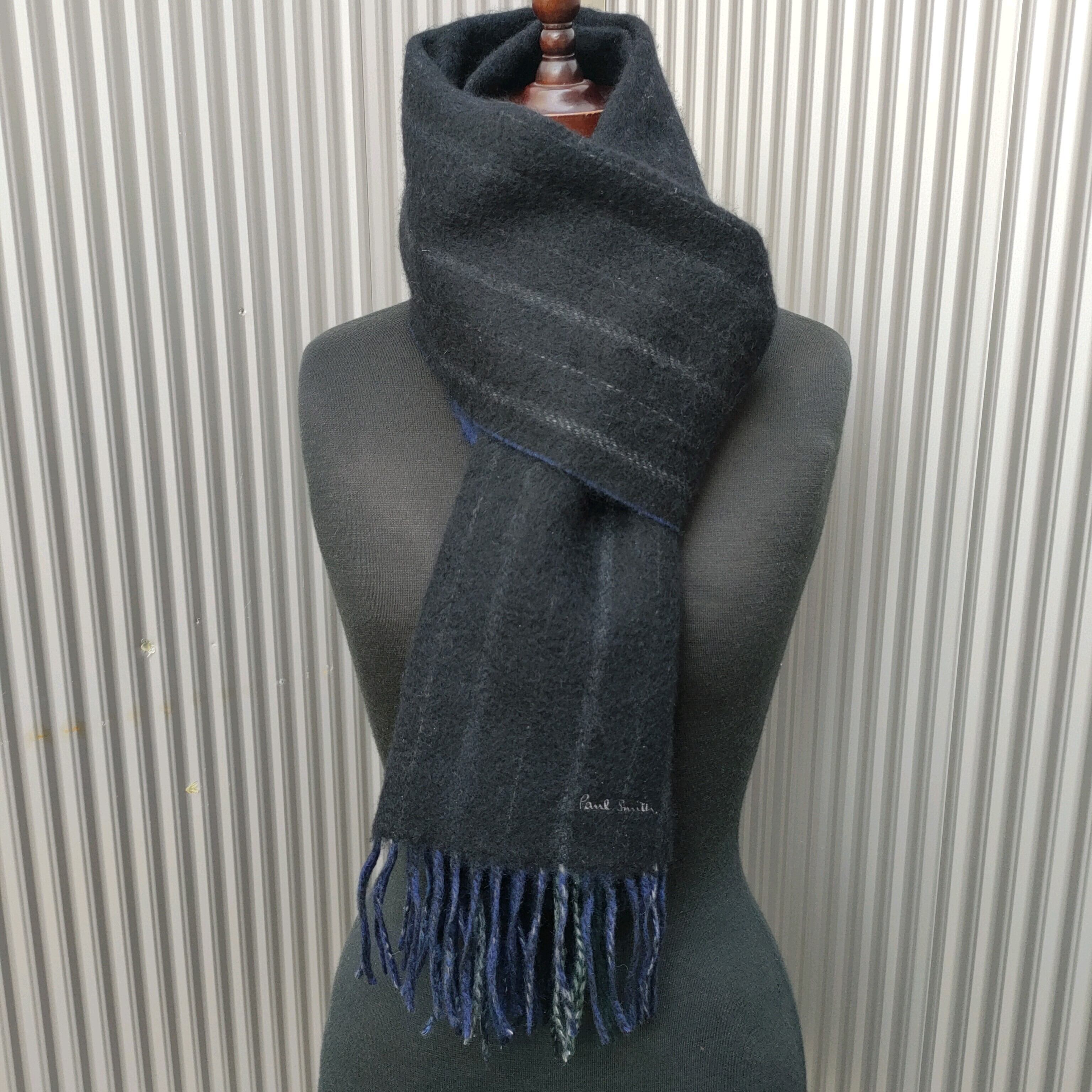 ◯【カシミヤ100%】美品/ポールスミスPaul Smith/カシミア/リバーシブル/ボーダー柄/ストライプ/フリンジ/マフラー/SC10KK2/0051/