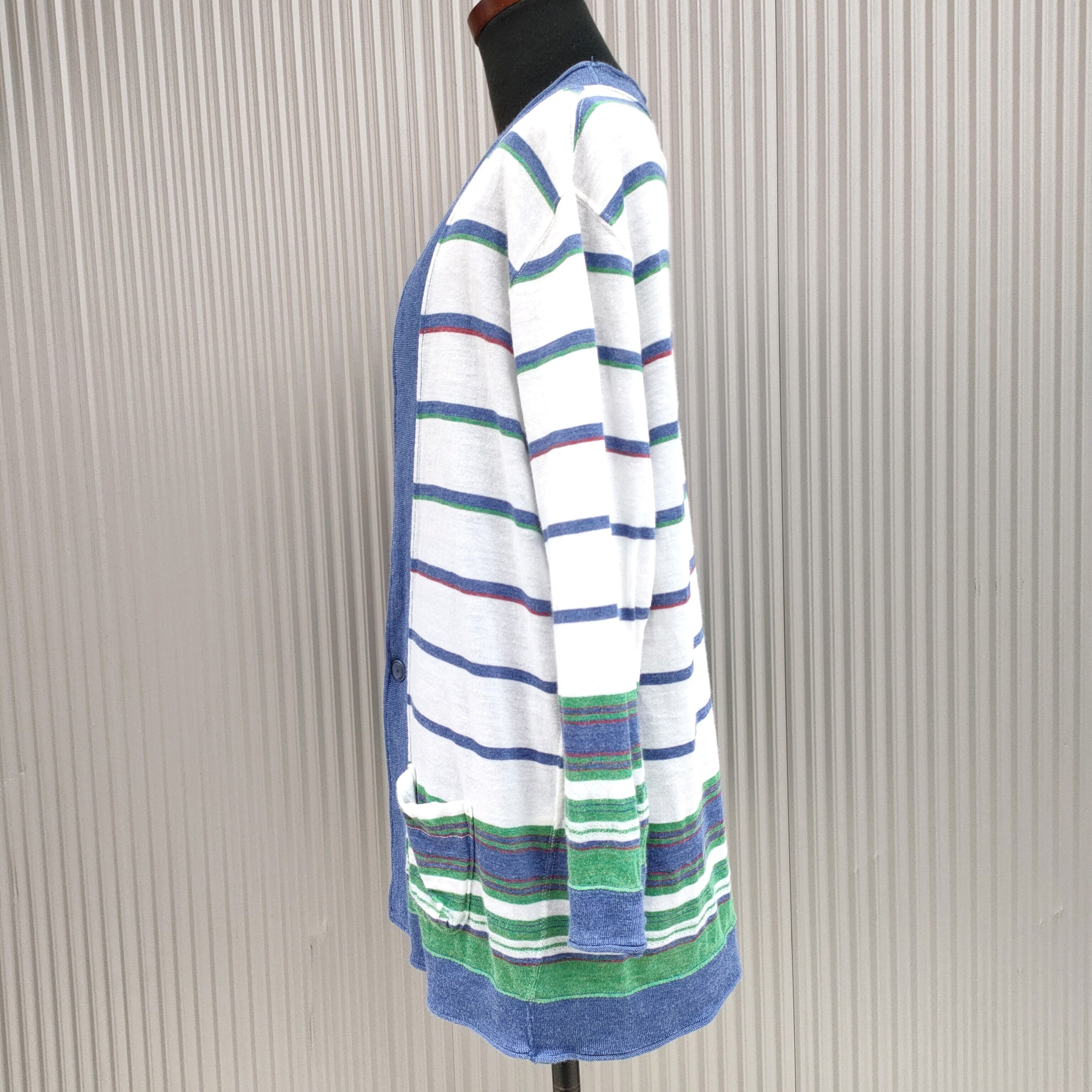 ◯新品同様/BEAMS扱/レミレリーフREMI RELIEF/古着/Vネック/マルチカラー/ボーダー/リネン/麻/9分袖/ロングカーディガン/S/白/SC24MNI8/005/