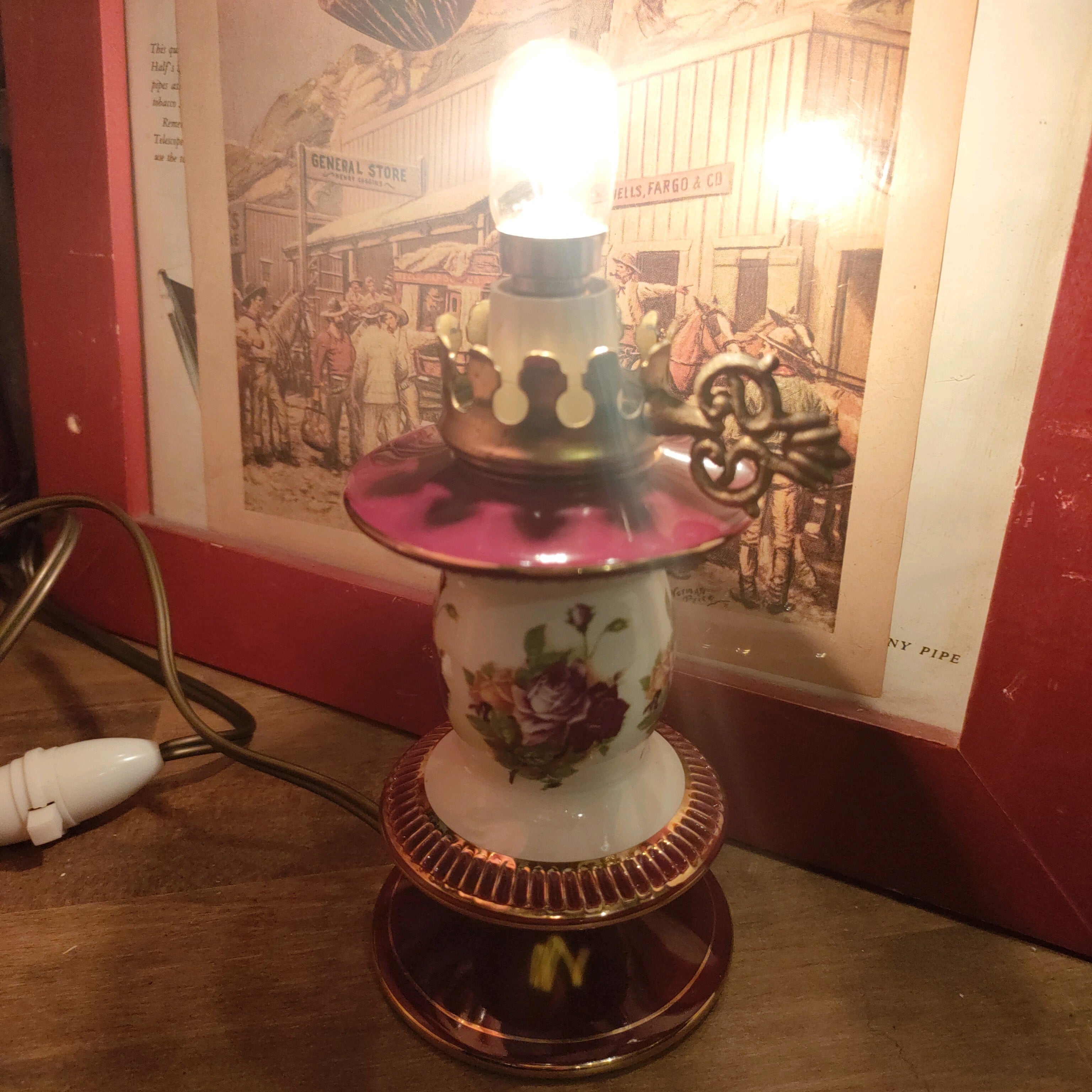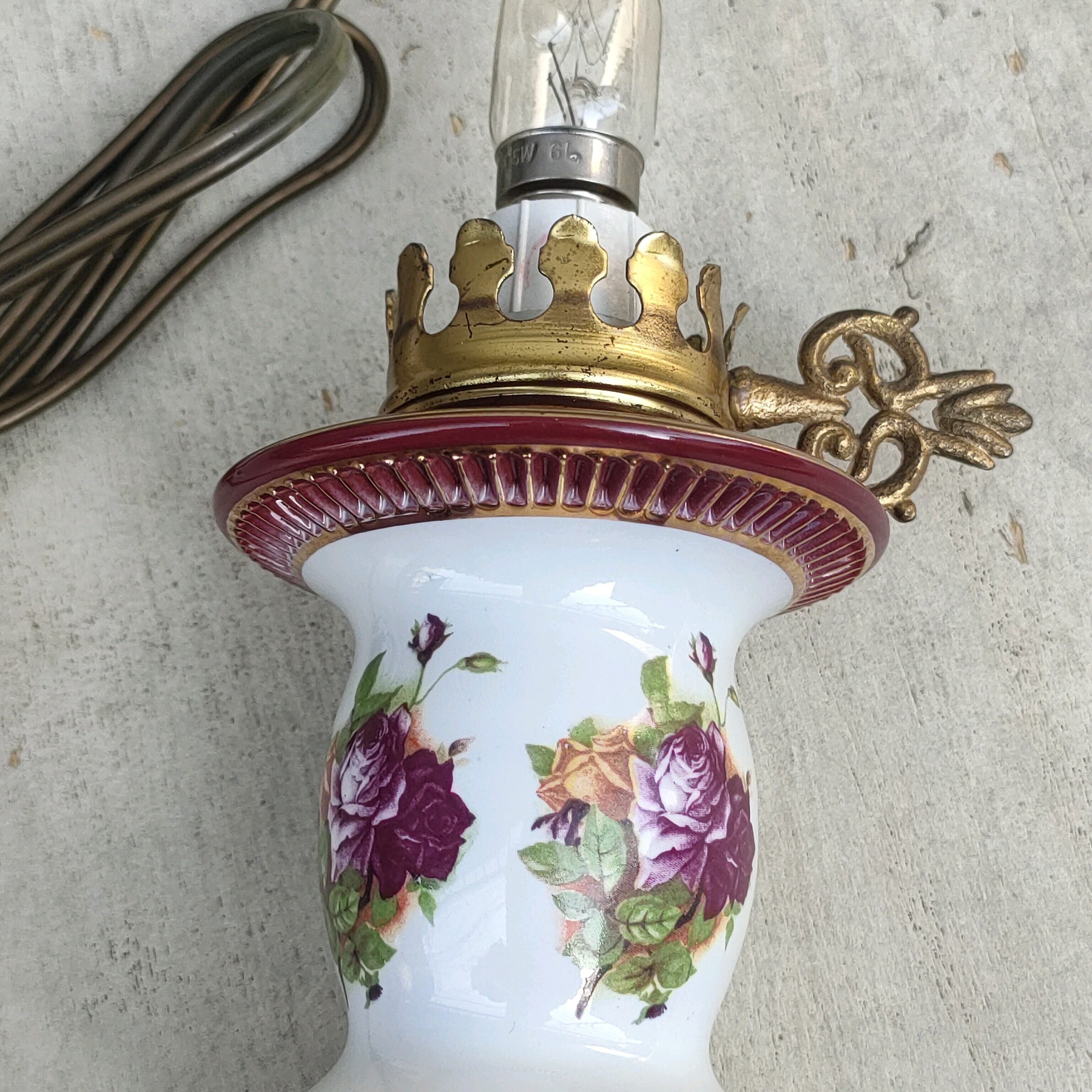△【60s/イタリア製/ハンドメイド】HANDMADE IN ITALY FLORENTINE/アンティーク/ビンテージ/ヴィンテージ/花柄/テーブルランプ/デスクランプ/ライト/照明器具/SC31KL8/0001/