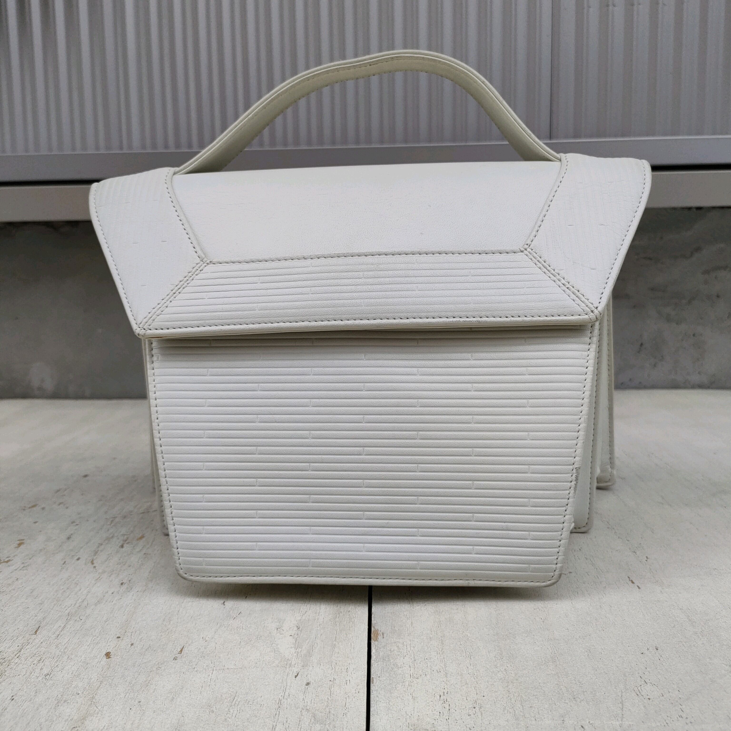 △【稀少】鳥丸軍雪GNYUKI TORIMARU LONDON/ヴィンテージ/ビンテージ/レトロ古着/デザイナーズ/レザー/ハンドバッグ/オフホワイト系/S0616MNI12/003/