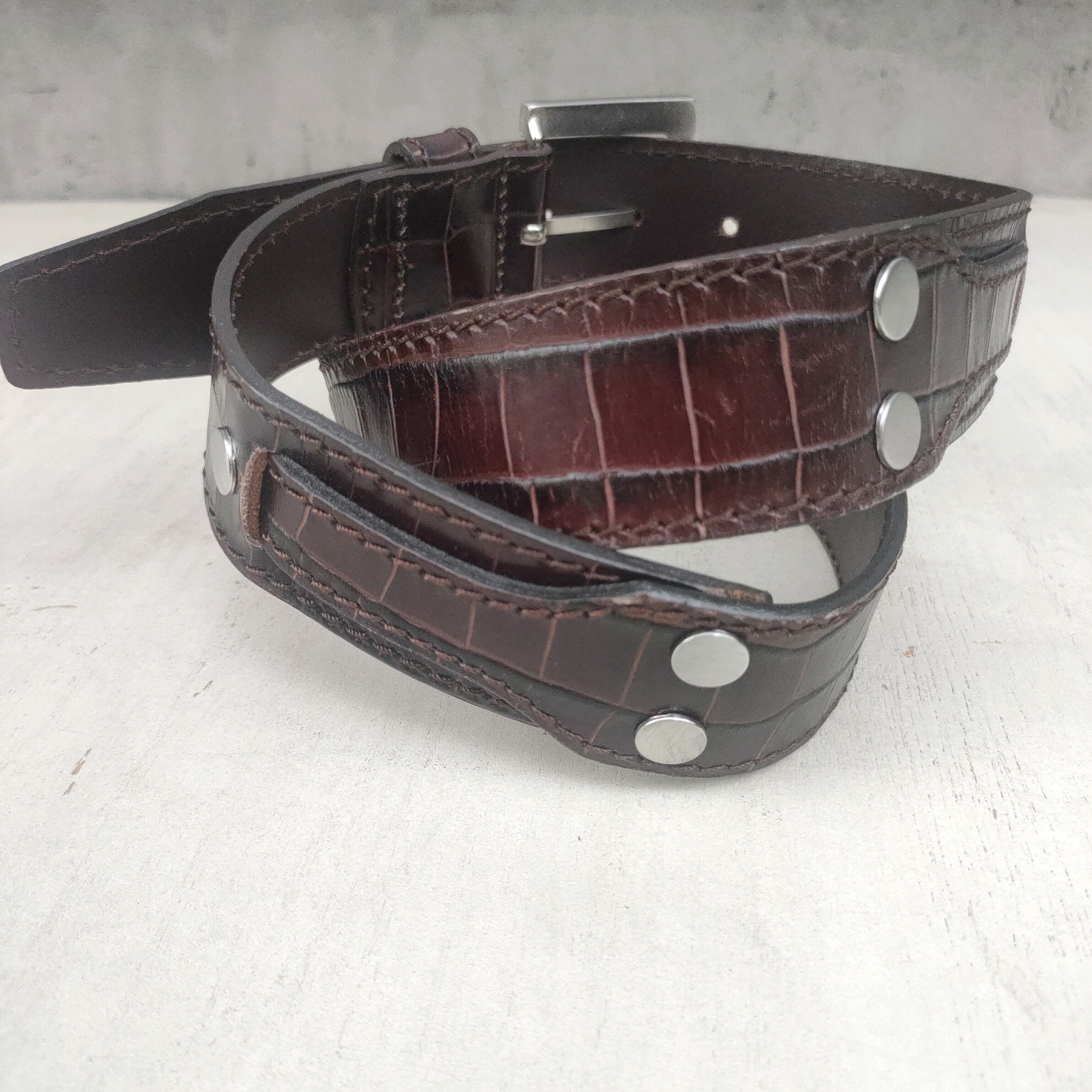 △【イタリア製】マックスマーラMAX MARA/エンボス加工/型押し/レザーベルト/S/茶/S0616KK10/005/