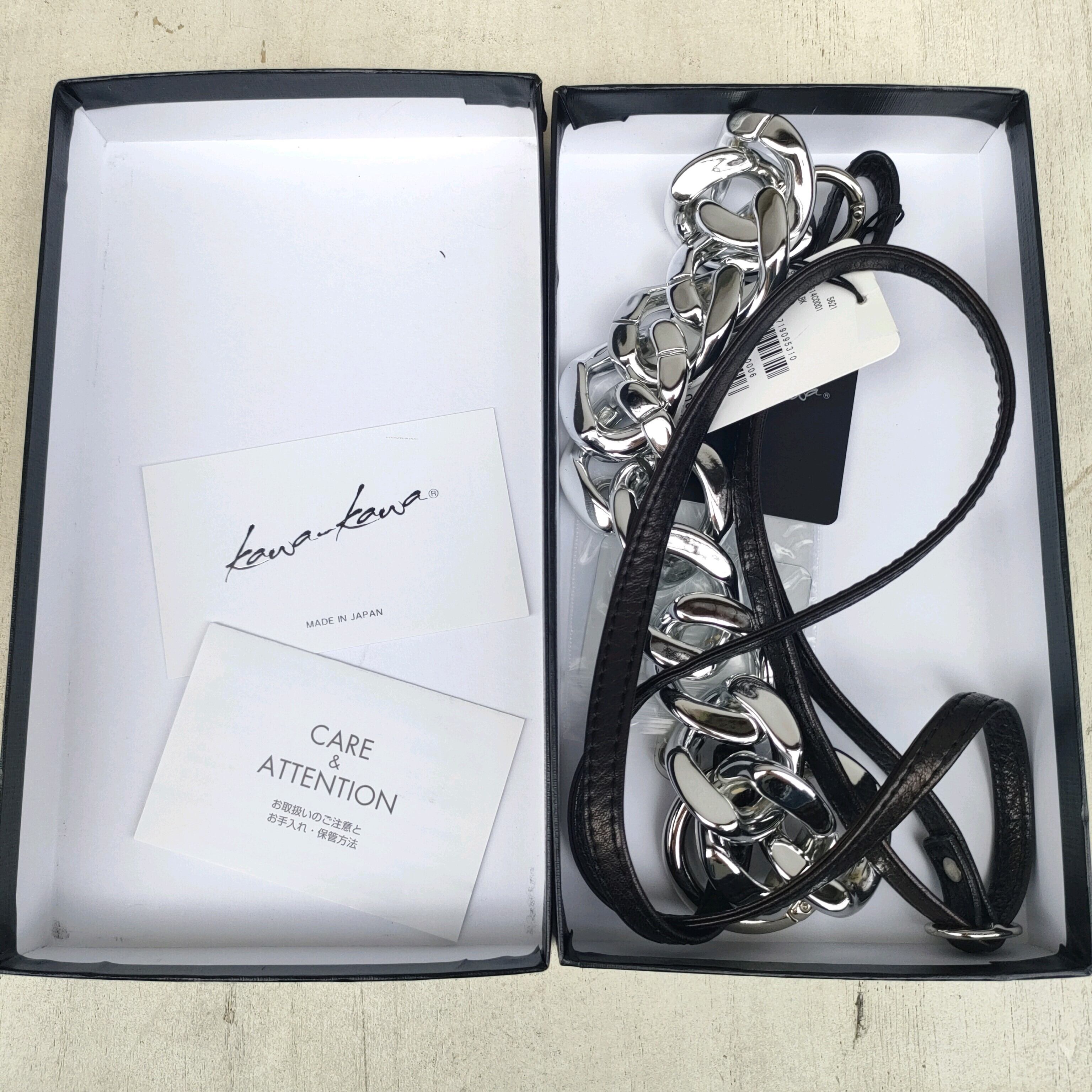 △【付属有】美品/イアパピヨネ扱/カワカワkawa kawa/kawa-kawa/古着/1375/ハンドメイド/chainスマホストラップ/牛革/レザー × 軽量チェーン/スマホショルダー/黒/定価11000/S06043/0051/