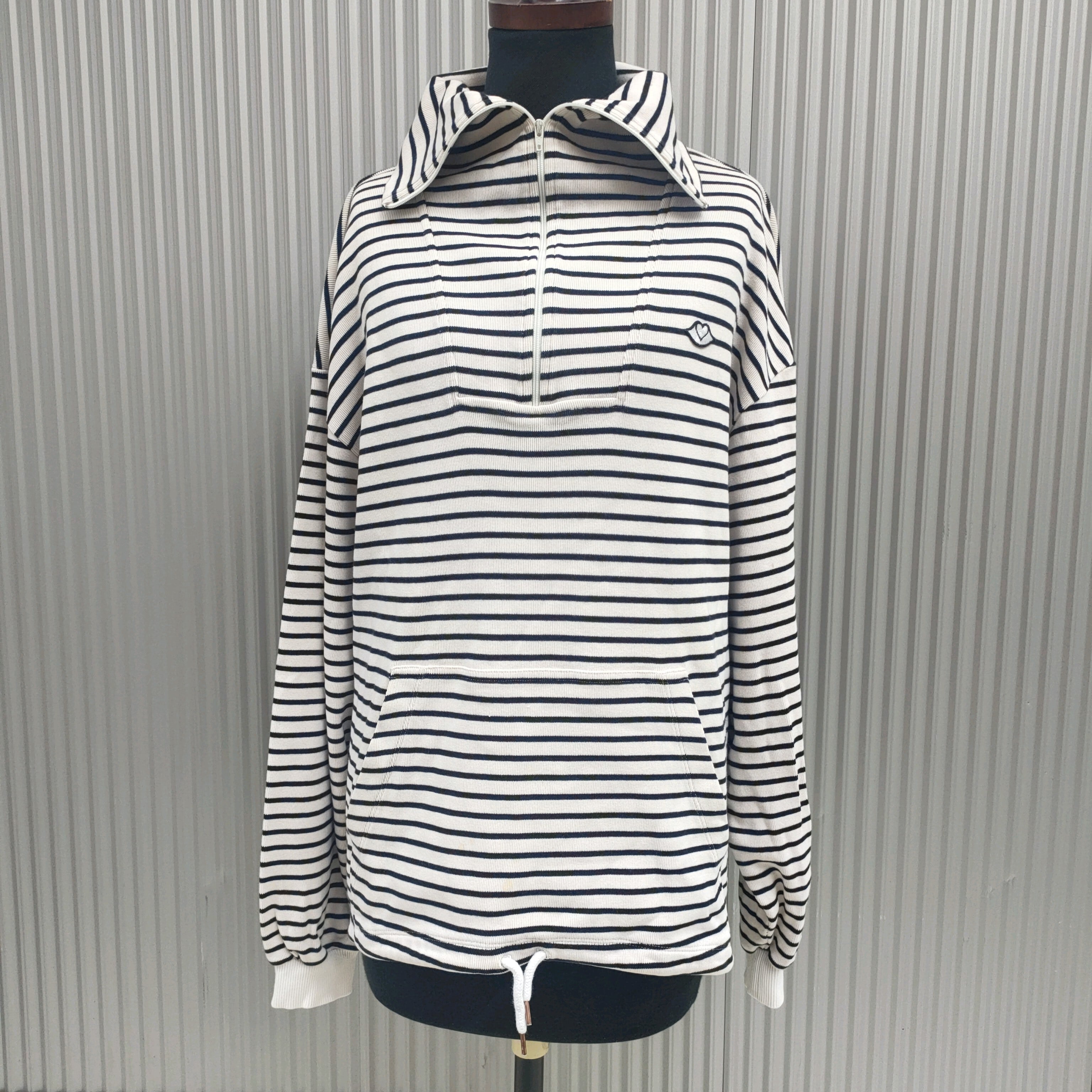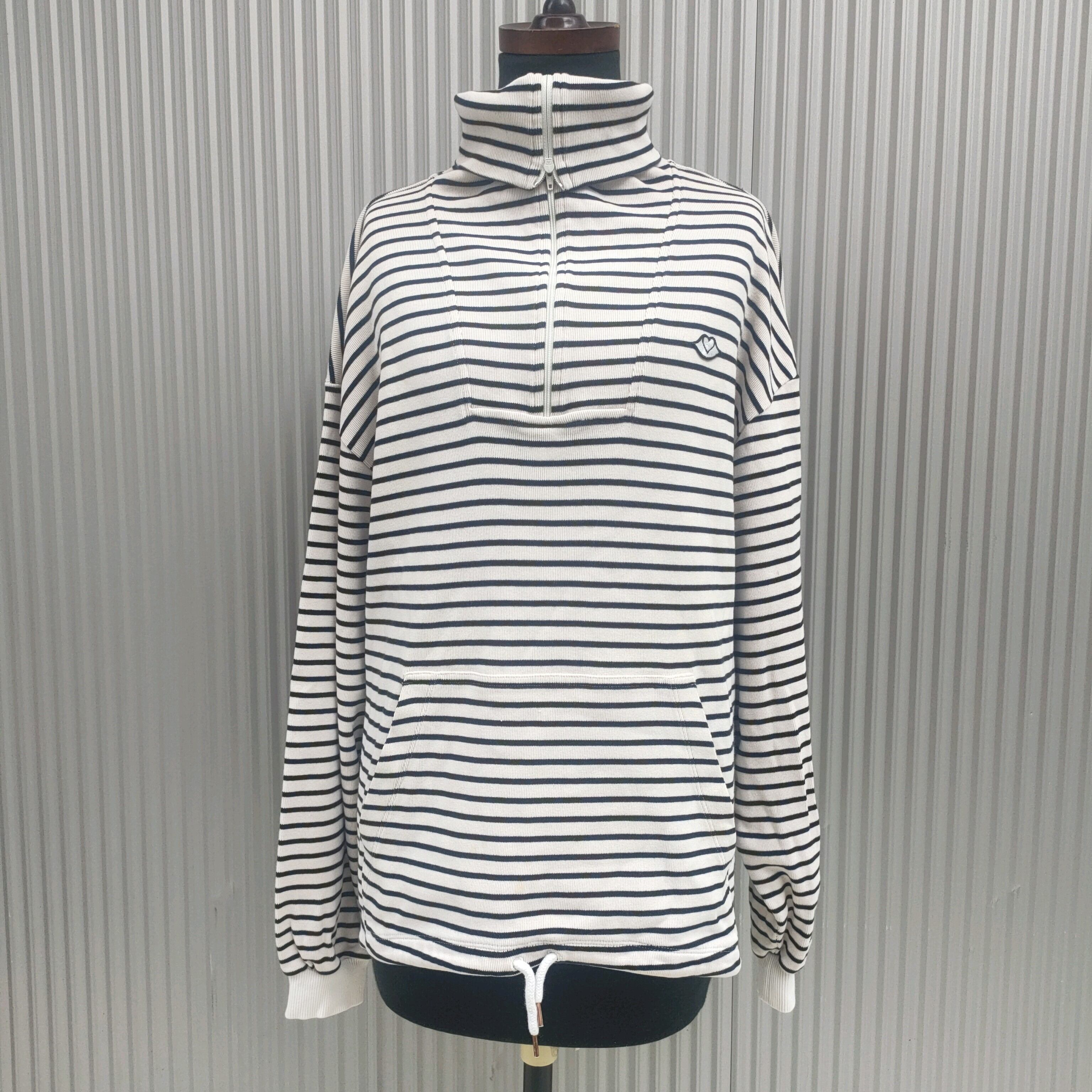 △【2way/ポルトガル製】SBC/シーバイクロエSee By Chloe/オーバーサイズ/ビッグシルエット/コットン/ボーダー柄/マリン/ハーフジップ/タートルネック/スウェット/トレーナー/S/白/S07151/007/