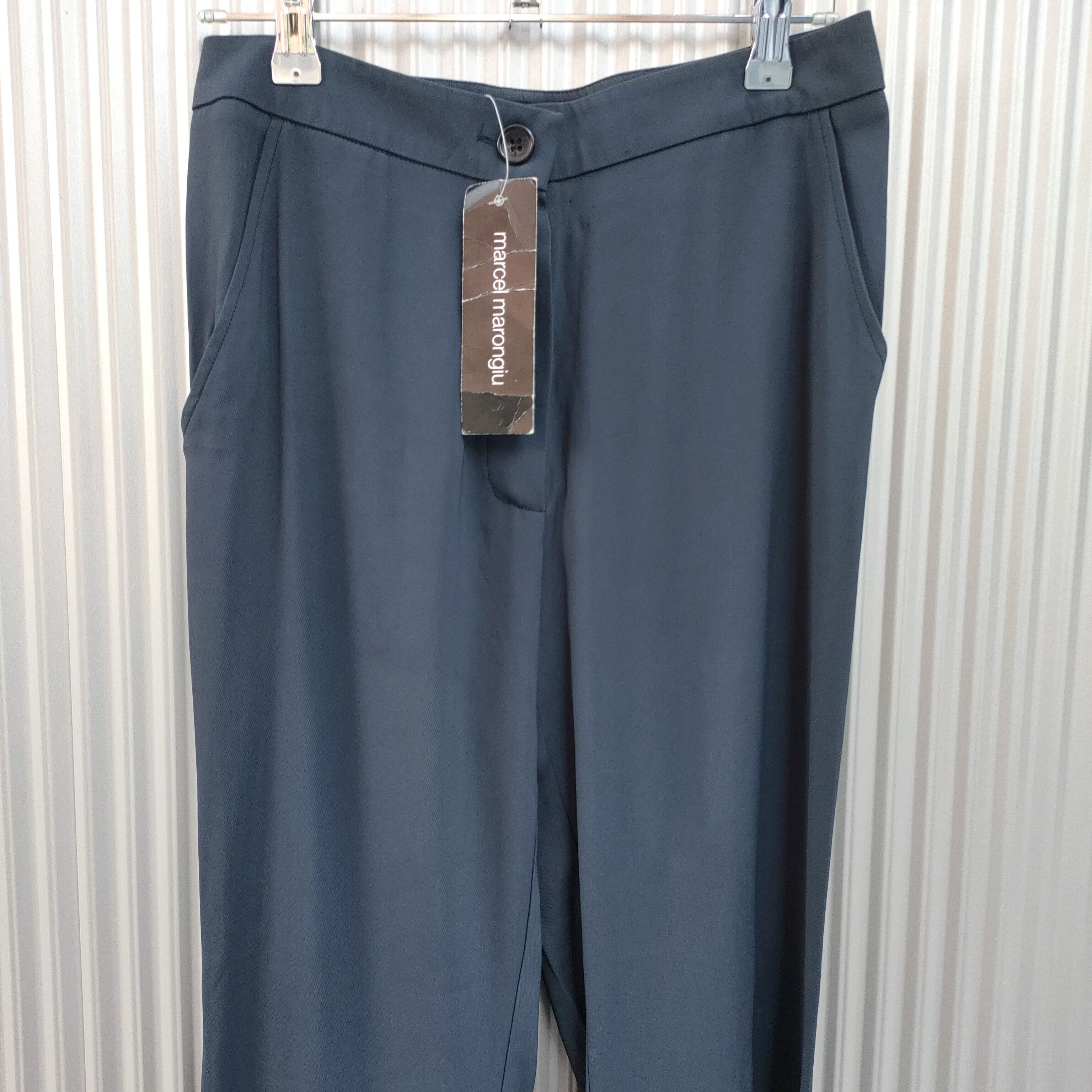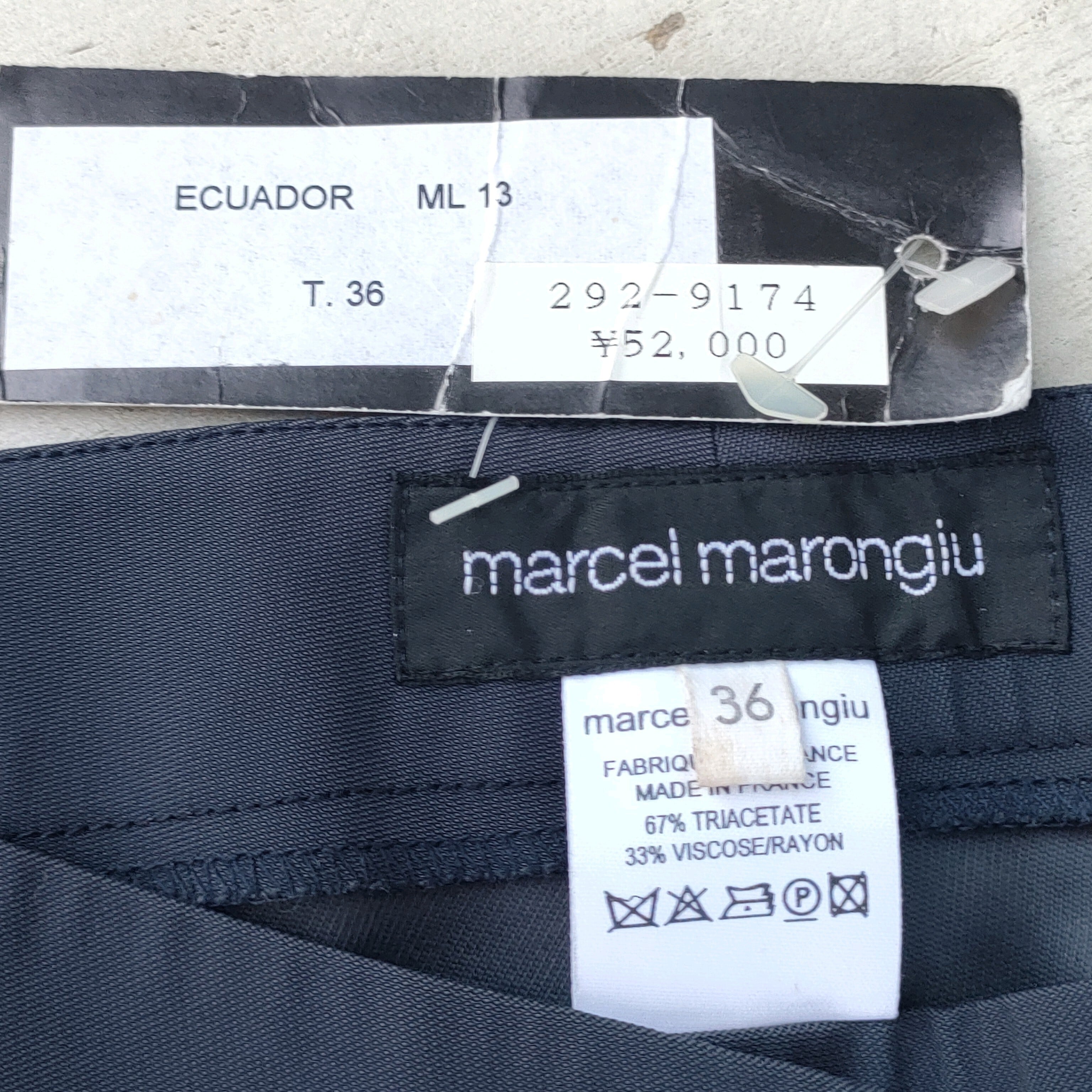 △【稀少/00s/フランス製】新品/マルセルマロンジュmarcel marongiu/デッドストック/y2k/デザイナーズ/アーカイブ/トリアセテート×レーヨン/ブーツカット/フレアパンツ/スラックス/36/ネイビー/定価52000/