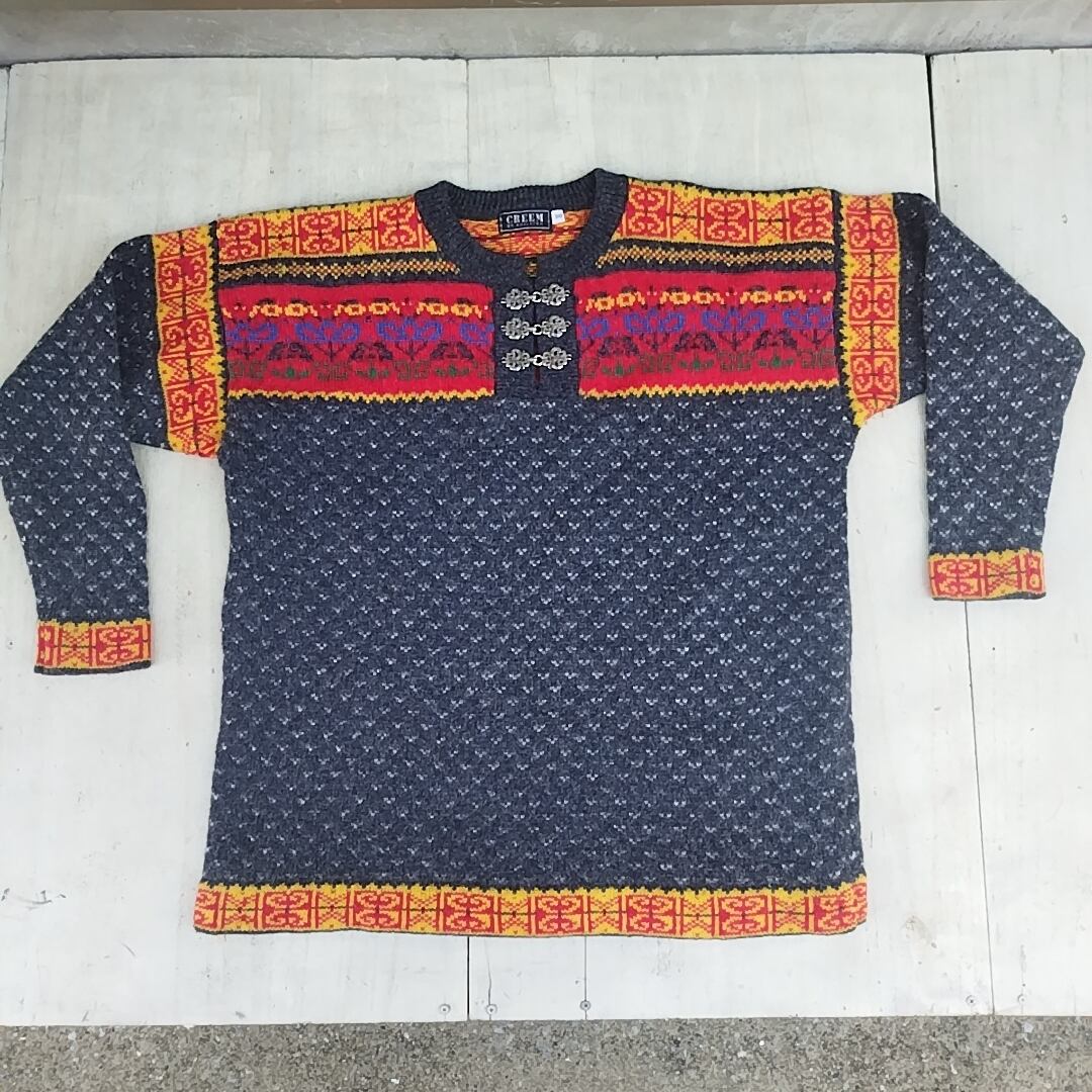 △【稀少/80s】新品同様/CREEM BY ADELSTEN/ヴィンテージ/ビンテージ/古着/ビッグシルエット/オーバーサイズ/メタルフック/バーズアイ/シェットランドウール/プルオーバー/チロリアン/チロルニット/セーター/38/S0906KFF2/0002/