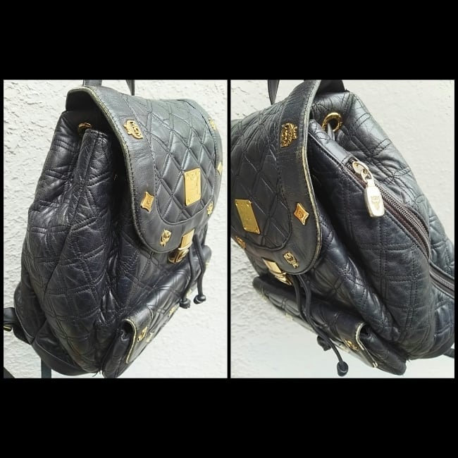 【80s】エムシーエムMCM/ビンテージ/ヴィンテージ/本革/マトラッセ/レザー/キルティング/リュック/黒/