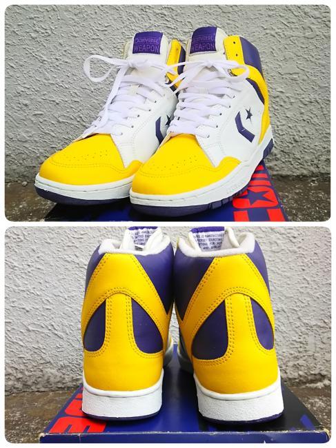 【90s】コンバースCONVERSE/新品/デッドストック/箱付/初期復刻/ウエポン/WEAPON HI LEATHER BASKETBALL SHOES/レイカーズカラー/スニーカー/バスケ/バッシュ/