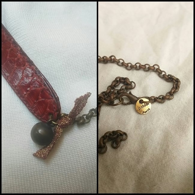 【元エルメス】B2nd扱ポルダー/ポルダーパリpolder paris/新品/エキゾチックレザー/パイソン/ヘビ革/蛇革/ネックレス/定価21000/