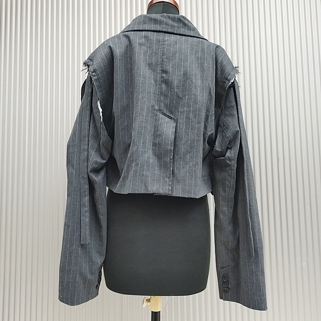 【別注/2way/2023AW】メゾンスペシャルMAISON SPECIAL × ザラZARA/ショート丈/ストライプ/ブレザー/デザイン/ダブルブレスト/ジャケット/ノースリーブ/ベスト/M/L/グレー/定価19990/S0920KSF1/0003/