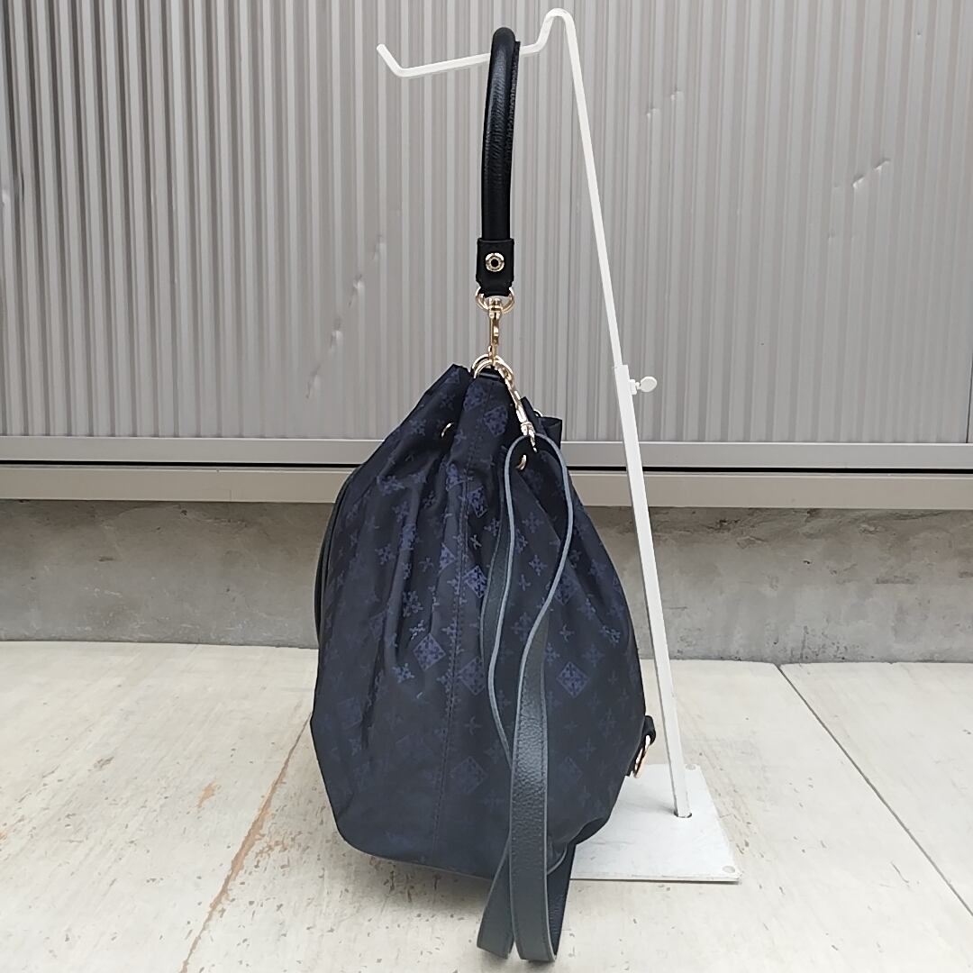 △【2way】新品/ラシットrusset/デッドストック/モノグラム柄/ナイロン×レザー/ショルダーバッグ/ハンドバッグ/ネイビー/S0914KSB4/003/
