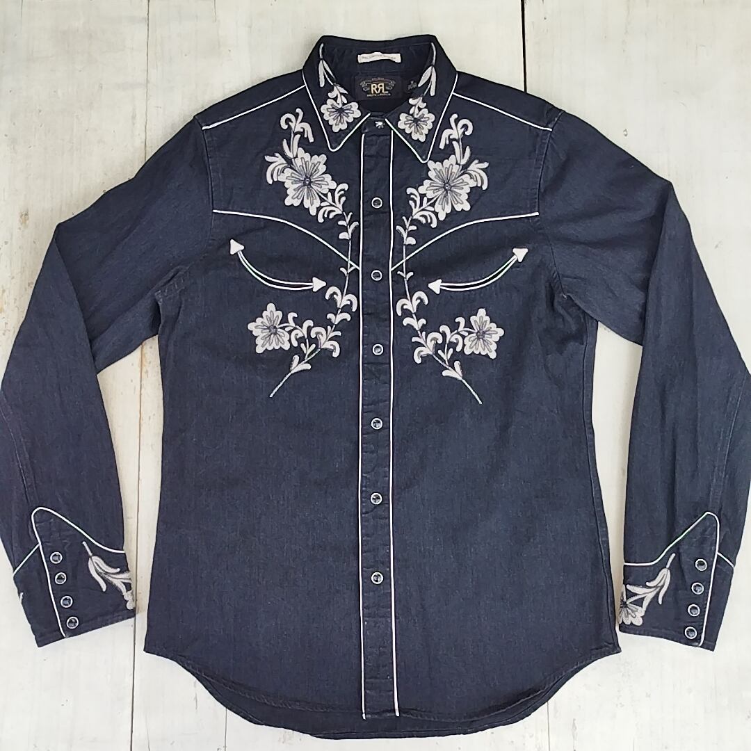 △【稀少/極上】美品/ダブルアールエル ラルフローレンRRL RALPH LAUREN/リミテッドエディションLIMITED EDITION/古着/EMBROIDERED WESTERN SHIRTS/コットン/ウエスタンシャツ/M/黒/SJ021/00002/