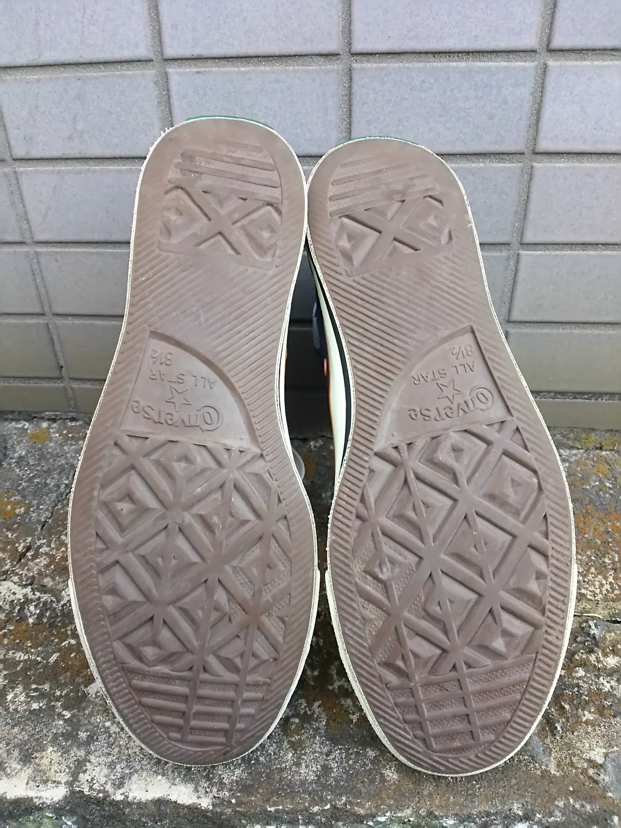 ★アッパーは暗めのネイビーですが、第1はと目・ベンチレーションホールに明るいイエローを配色しています。さらにヒールラベル・シューレースの先にはグリーンを使用。シンプルでポップなオールスターです。